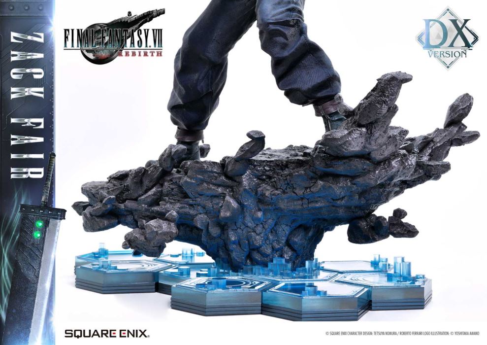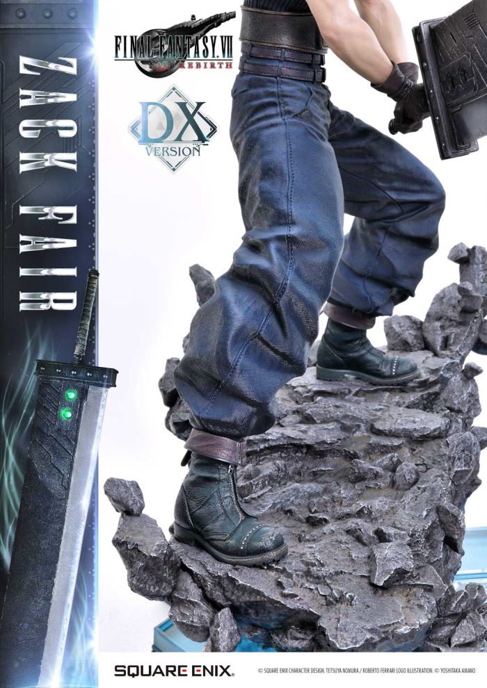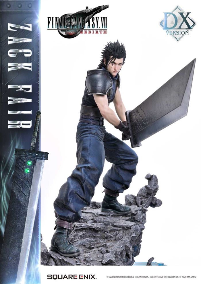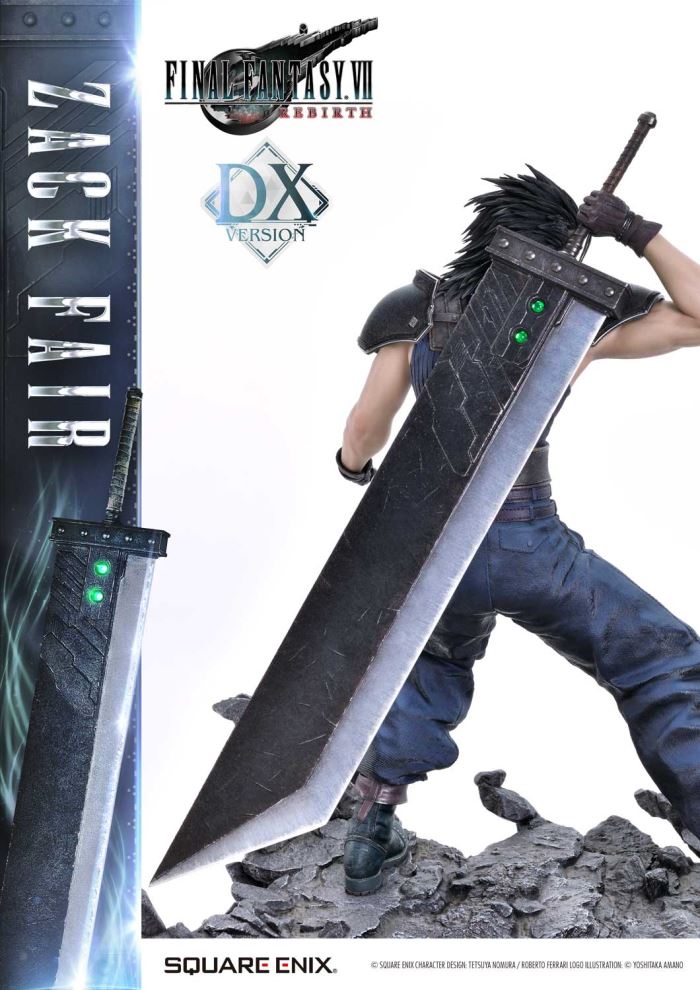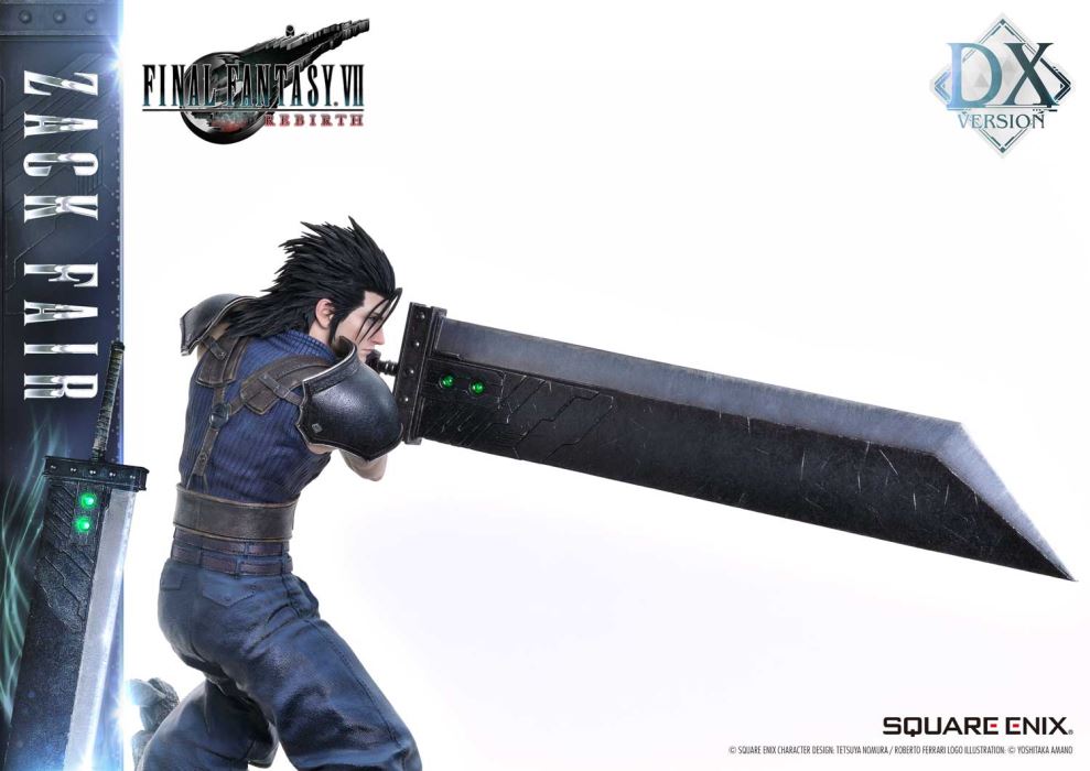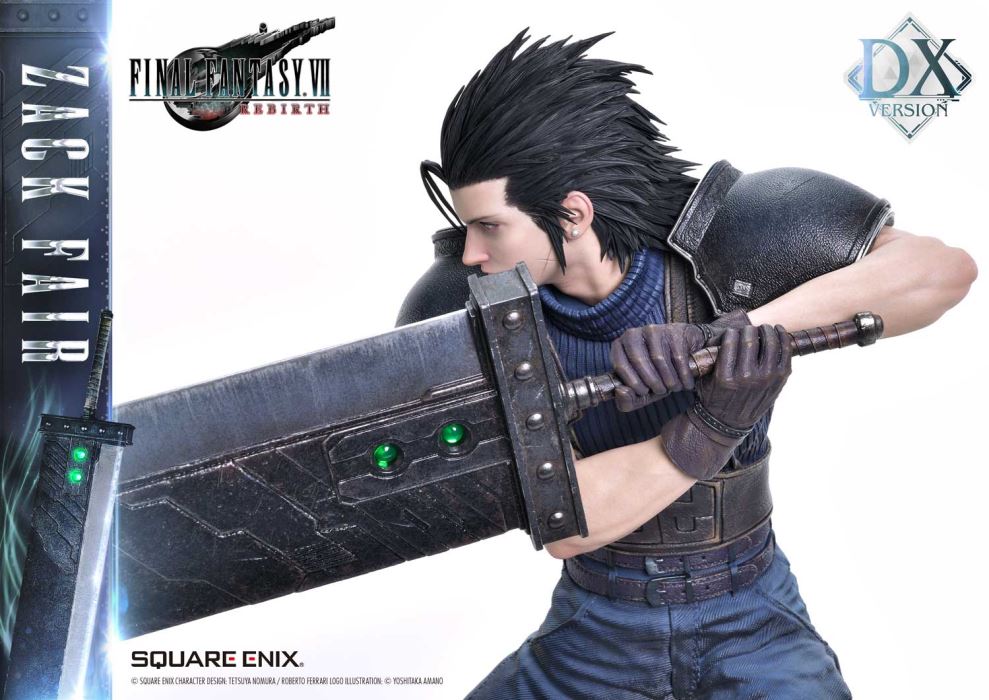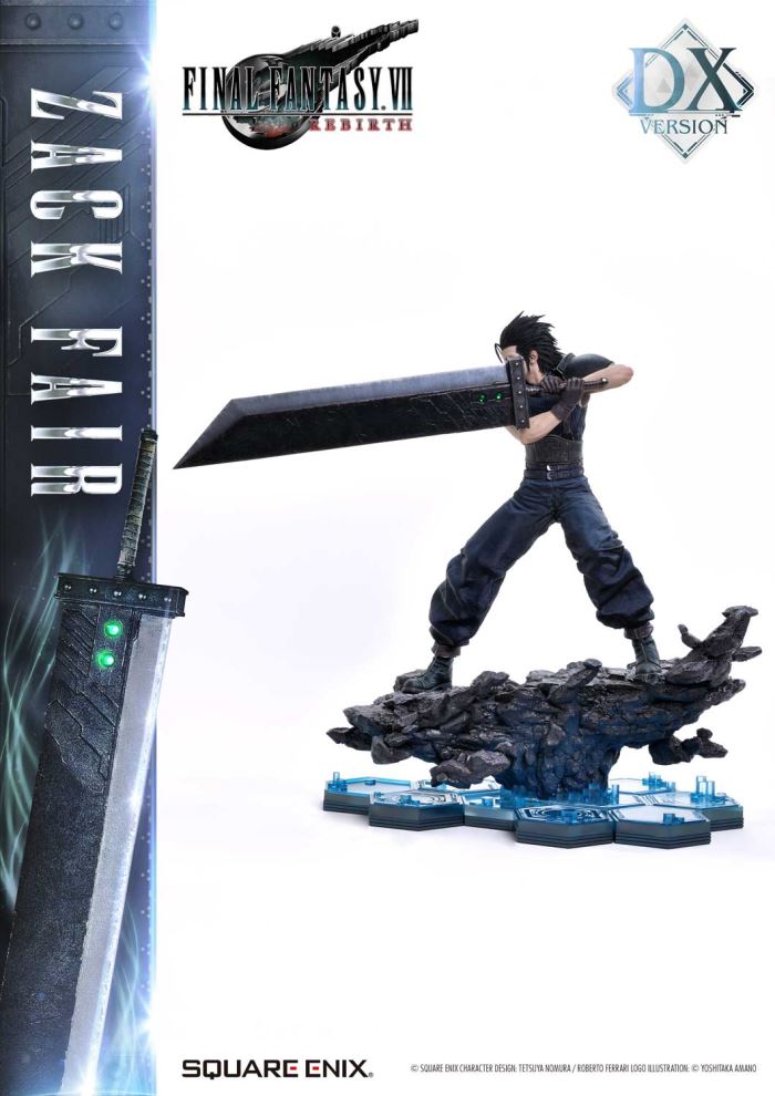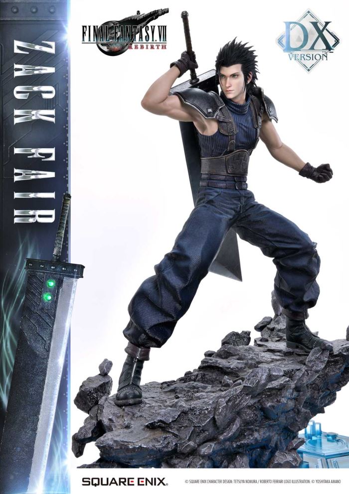 Clear Blue Eyes, a Buster Sword of Pride and Friendship.Masterful Sculpting, Painting, and Storytelling, Bringing Zack Fair from FINAL FANTASY VII REBIRTH in 1/4 ScaleSquare Enix Masterline, a premium collectible series brought to you by the collaboration between Square Enix and Prime 1 Studio. From this globally acclaimed polystone statue lineup comes Zack Fair, the man who never gives up on dreams and hope, from FINAL FANTASY VII REBIRTH!With a balanced mid-stance that excels in both offense and defense, Zack’s powerful gaze forward perfectly captures his in-game presence. His realistic pose at 1/4 scale captures the essence of his tall frame and masterful sword techniques. Faithfully recreated details include the scar on his left cheek, his clear eyes imbued with Mako energy, and the meticulously crafted textures of steel and leather in his costume. Additionally, the Buster Sword, a symbol of his pride and friendship, can be equipped with five different Materia, allowing for customizable displays. Alongside top-tier sculpting and painting techniques, these playful features add another layer of enjoyment.The bottom layer of the specially designed base is adorned with a blue hexagonal pattern, which is also used in the same series’ Cloud Strife and Sephiroth statues. Displaying them together creates a cohesive and unified presentation.The DX version includes interchangeable left and right arms to change Zack’s pose with the Buster Sword. Pose Zack as he reaches for the sword on his back or readies himself for a powerful strike from a high stance. A title logo stand is also included, allowing you to create various storytelling moments.With unmatched sculpting, coloring, and storytelling, Zack Fair shines as an art piece that brings light and pride to your collection!Specifications:Two (2) Swappable Dual-handed Arms (High Stance, Low Stance)One (1) Swappable Right Arm (Shoulder Carry Pose)One (1) Swappable Left Arm (Fist)Five (5) MateriaFINAL FANTASY VII REBIRTH Themed BaseOne (1) FINAL FANTASY VII REBIRTH Logo StandNotice:Prototype samples shown.Product details could be subject to change without further notice.Please note the final product specifications may differ because each product is Handmade.Since the product is still in the development stage, the Size (up to 10%) & Weight (up to 10kg) may be changed during the production stage.© SQUARE ENIX CHARACTER DESIGN: TETSUYA NOMURA / ROBERTO FERRARI LOGO ILLUSTRATION: © YOSHITAKA AMANODETAILSBrandsPRIME 1 STATUECollectionSQUARE ENIX MASTERLINESeriesFinal FantasyScale1/4 ScaleProduct CodeSEM-09DXProduct Size Approx.H:63cm W:37cm D:67cmH:59cm W:34cm D:52cm(Shoulder Carry Pose)H:58cm W:32cm D:68cm(Buster Sword High Stance)Carton(Est):1 boxProduct Weight Approx.11 kgMaterialsPolystone and other materialsJAN4988601387934
