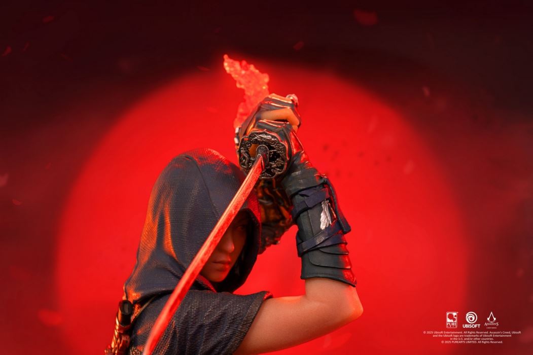 Assassin's Creed Shadows Animus Naoe 1/8 Scale StatueFierce shinobi Assassin and protagonist of Assassin's Creed Shadows Naoe stands in a Ko Gasumi stance ready to defend her people atop an intricate tenshu rooftop. The quintessential PureArts animus-LED effect representing the bridge between past and present materializes from Naoe's right side. Standing at 11 inches tall, the Animus Naoe 1/8 Scale Statue is the perfect size to light up any Assassin's Creed fans' set up!The Animus Naoe PVC Statue connects to the Animus Yasuke 1/8 Scale Statue to create an epic diorama!PRODUCT HIGHLIGHTSDetailed PVC Statue of Naoe from Assassin's Creed ShadowsHighly detailed tenshu rooftop baseLED-lit Animus effectPRODUCT DETAILSLicensed by UbisoftScale: 1/8Material: PVCAvailability: WorldwideUSB-C poweredShipping: Q4 2025