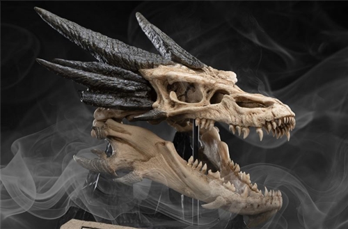 SKU 87-13-04760UPC 9420024747605License The Hobbit TrilogyItem Name Skull of SmaugProduct Category Skull - MiniatureMSRP USD(excl. tax) USD 149.00MSRP AUD(incl. 10% GST) AUD 249.99MSRP NZD(incl. 15% GST) NZD 249.99Street Date Q2 2026Edition size OpenIndividual CartonQty 1Individual CartonWidth (mm) 240Individual CartonDepth (mm) 260Individual CartonHeight (mm) 300Individual CartonWeight (kg) 1.3Individual CartonWidth (in) 9.45Individual CartonDepth (in) 10.24Individual CartonHeight (in) 11.81Individual CartonWeight (lbs) 2.87Master CartonQty 6Master CartonWidth (mm) 550Master CartonDepth (mm) 740Master CartonHeight (mm) 320Master CartonWeight (kg) 9Master CartonWidth (in) 21.65Master CartonDepth (in) 29.13Master CartonHeight (in) 12.60Master CartonWeight (lbs) 19.85Product Dimensions(without packaging) 6.69 x 8.85 x 8.66 (W x H x D) 17 cm x 22.5 cm x 22 cmProduct Weight(without packaging) 1.87 lbs (0.85 kg)Age Recommendation 14-99Contains Small Parts?(yes or no) YesCE Certification(yes or no) NoCountry of Origin ChinaVideo Link N/AWeta Workshop Studio/Brand intro Wētā Workshop was thrilled to work on the epic trilogy that was The HobbitTM, contributing design, specialty props and specialty costumes.Product Intro Recovered from the depths of the Long LakeTM, this fossilized cranium belonged to Smaug, last and greatest of the fire-drakes of the North.Product Description (flavour text) The horn cores are long, tapering bones sheathed in black keratin, a material of exceptional durability even after millennia. The teeth, serrated and recurved, retain traces of gold fused into the enamel, a result of prolonged contact between the treasure-hoard on which he slept and the heat that resided within his breath. The immense jaw structure and resonating cavities of the skull once amplified a voice described as both enthralling and terrible.This specimen can be displayed with jaw open, to evoke the roar that shook the Lonely MountainTM, or closed, to capture the brooding menace of its repose. An unparalleled centrepiece, it would enhance any collector's treasure horde.Product features - Made primarily from polystone;- Small palatial bone made from polyurethane;- Based on the dragon Smaug, as seen in The Hobbit;- Obsidian-like stand makes this skull feel like an artifact straight out of the study of SarumanTM;- Stand adjustment allows for display with jaw open or closed;- Physically sculpted by Wētā Workshop Senior Sculptor and Middle-earth veteran Jamie Beswarick.Product Disclaimer Please note: Images are of a pre-production prototype. Each piece is hand painted and some variations may occur.About this product Each Miniature Skull, a compact yet detailed artifact, offers a profound glimpse into the anatomy of Middle-earth. Enhance your collection with this unique curation and examine these creatures like never before.It takes hundreds of hours to design, sculpt, model make, mold, and paint the prototype for each new Middle-earth piece. Whether it be a prop replica, beautiful environment, or iconic character, we treat our collectibles with the same level of care and attention to detail that we bring to our film work.Product Quote “Our authentic prop replicas and collectibles are designed by the very same artists who have worked on the three films, so effectively the come straight from Middle-earth.”Quote author Richard Taylor – CEO & Co-founder, Wētā Workshop