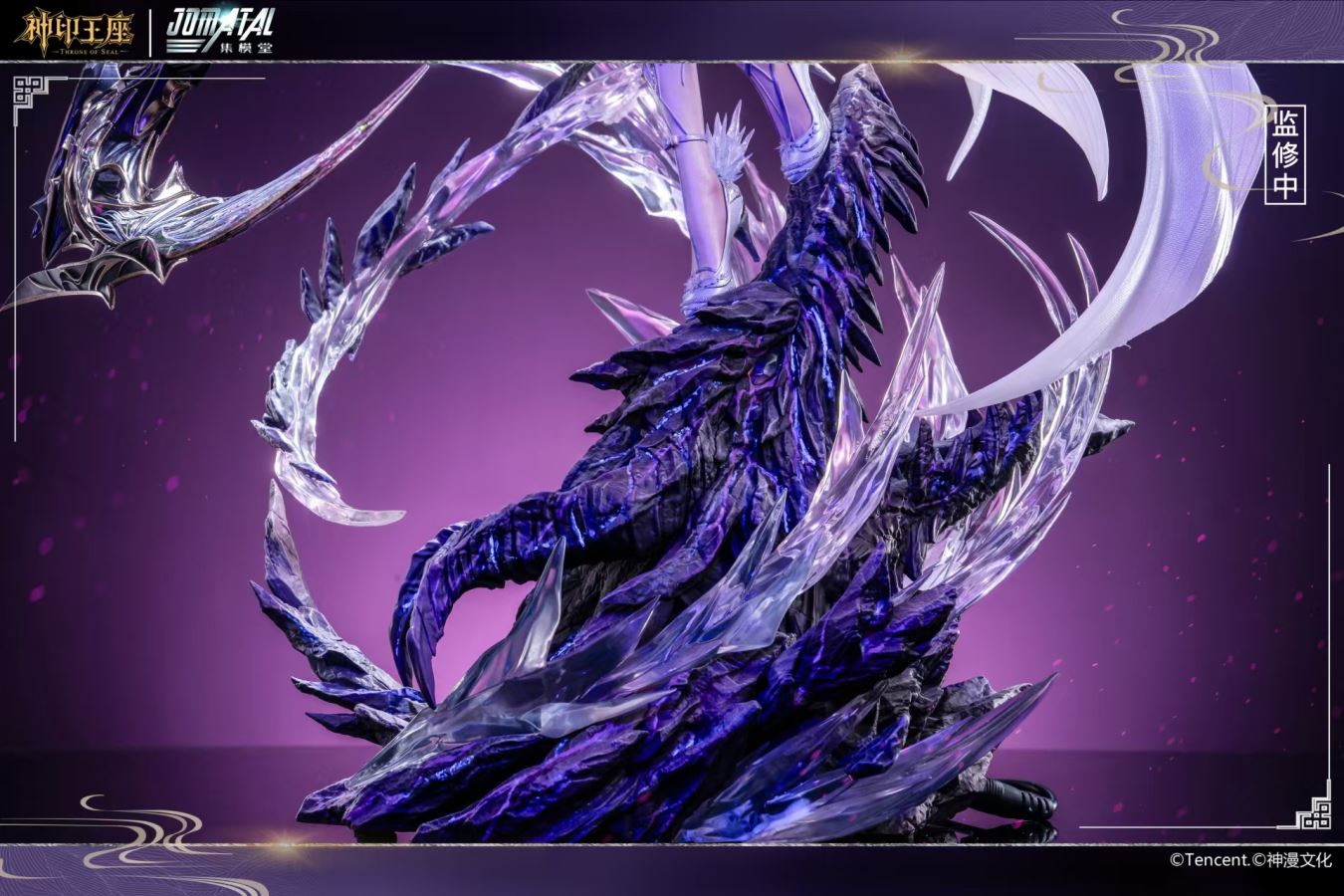 JOMATAL X Tencent - Throne of Seal Sheng Cai Er 1/6 Statue (Licensed)Tencent Throne of Seal Sheng Cai Er 1/6 StatueDimensions: Height: 50cm * Width: 39.7cm * Depth: 20.4cmScale: 1/6Quantity Limited: -Material: Polystone, PUFeatures:1. Upgraded 1/6 scale realistic tracking glass eyes2. Iridescent transparent paint, changes color under light3. Base painted with a special material that glows under UV light. A UV light will be included with bulk orders4. Artificial gemstones are used in some materials5. 1/6 scale figure uses the same full-grained fabrication technique, elevating the product to a higher level[Notes]: 1. Sheng Caier's panties will be shortened to match the set2. Colors are not final; please refer to the final version for accuracy3. A black version will be released later