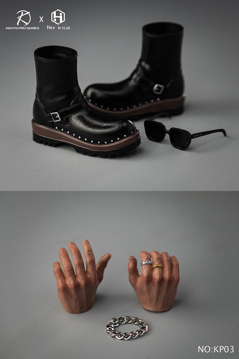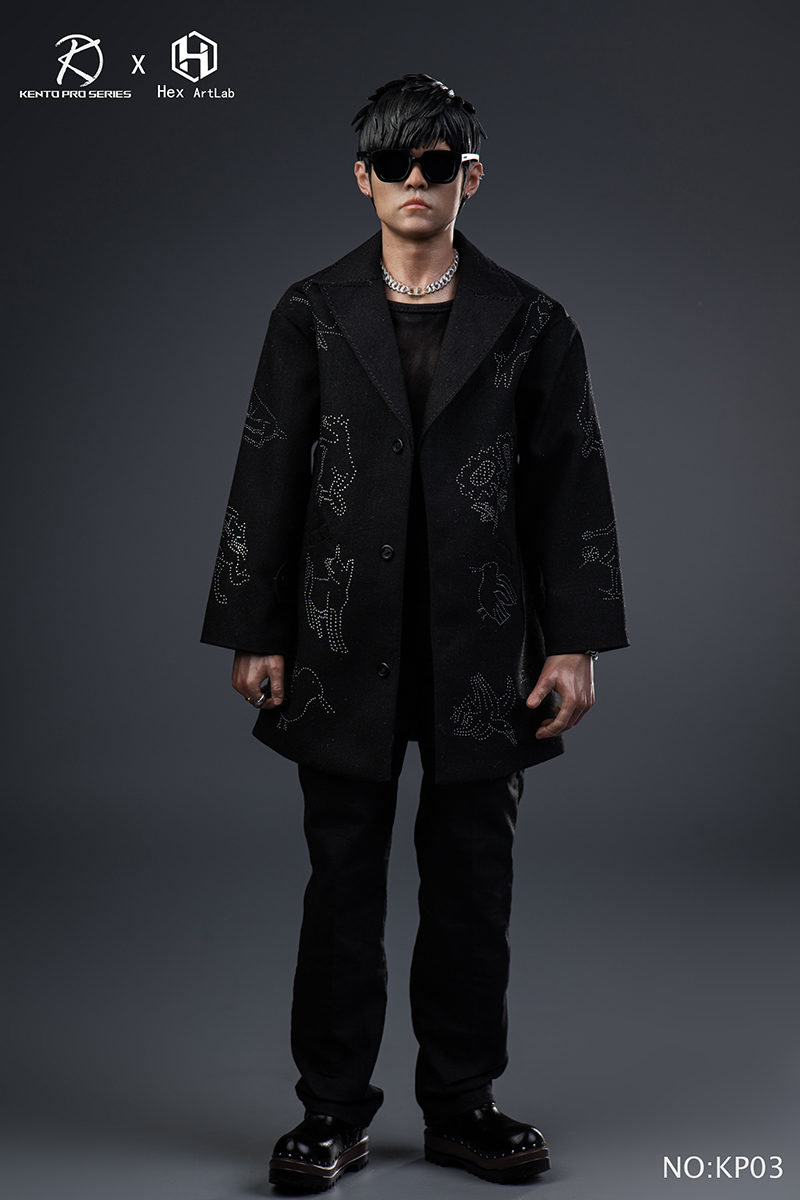 Kento KP03 1/6 Scale Asian fashion superstarLIST:1. 1 body2. 1 head sculpture3. 1 set of suit4. 1 pair of shoes5. 1 pair of hands6. 1 pair of sunglasses7.1 bracelet8.1 platform