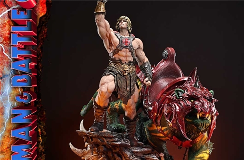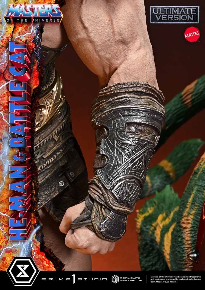 “By the Power of Grayskull! I HAVE THE POWER!”The Most Powerful Man in the Universe and his ally—realistic 1/4 scale.Set on the planet Eternia, Masters of the Universe tells an endless tale of battles between good and evil. From this grand saga that has continued since 1982, He-Man & Battle Cat now join the Real Elite Masterline.Over its long history, He-Man’s physique and gear have taken many different forms. For this statue, we have chosen the traditional look that everyone imagines when they think of the hero. On top of that iconic style, we have layered in essences from each era, capturing a “tradition in evolution” in 1/4 scale, alongside his ally, Battle Cat.His wild hair and striking portrait, along with the finely honed body that embodies “the Most Powerful Man in the Universe,” blend realistic detail with subtle stylization. The massive Power Sword, his battle harness, and the shoulder armor and loincloth accented with fur are all crafted with rich, tactile surfaces.Battle Cat’s luxuriant fur is shaded with carefully calculated light and shadow, bringing a sense of life to his imposing frame. Intricately engraved armor, eyes and fangs filled with fighting spirit—all come together to suggest a story within his powerful presence.The heavy, specially designed base is inspired by Castle Grayskull. Inside, an LED unit lights up the eyes of the front gate and the seething magma below, evoking the hidden, overwhelming power that lies within.He-Man’s upper body with the Power Sword raised high toward the heavens. Battle Cat’s closed mouth, creating a powerful, eloquent silence. Enjoy combining these display-changing parts with the bust stand to suit your display.In addition, the UT Bonus Version includes an extra right hand holding a Battle Axe. The dull gleam on its twin blades brings the early artwork of He-Man back to life.He-Man and Battle Cat, brought to life with realistic color and form—add the Most Powerful Appeal in the Universe to your collection. Specifications:He-ManTwo (2) Swappable Upper Bodies (A: Facing Forward, B: Looking Upward)One (1) Swappable Right Hand for Upper Body A (Power Sword)One (1) Swappable Right Hand for Upper Body A (Axe) [BONUS PART]Battle CatTwo (2) Swappable Mouths (Open, Closed)One (1) Bust StandMasters of the Universe-Themed Base with LED IlluminationLED Power Supply Method: TBD* Please prepare batteries, USB cables, or other necessary items depending on the final power supply method.Region ExclusiveNotice:Prototype samples shown.Product details could be subject to change without further notice.Please note the final product specifications may differ because each product is Handmade.Since the product is still in the development stage, the Size (up to 10%) & Weight (up to 10kg) may be changed during the production stage.Masters of the Universe™ and associated trademarks and trade dress are owned by, and used under license from, Mattel. ©2025 Mattel.DETAILSBrandsPRIME 1 STATUECollectionReal Elite MasterlineSeriesMasters of the UniverseScale1/4 ScaleProduct CodeREMMOU-01UTSProduct Size Approx.H:86cm W:75cm D:63cmH:124cm W:65cm D:63cm(Upper Body B: Looking Upward)Carton(Est):3 boxProduct Weight Approx.52.8 kgCarton Size Approx.Carton A [ H 67cm × W 53cm × D 50.5cm ]Carton B [ H 66cm × W 64cm × D 50.5cm ]Carton C [ H 72cm × W 57cm × D 49cm ]MaterialsPolystone and other materialsJAN4582647123442