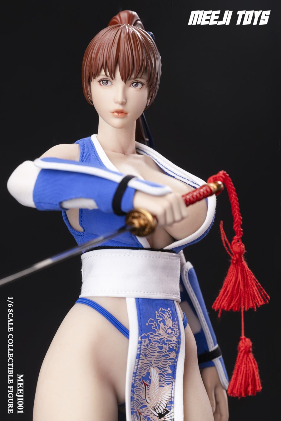 **MEEJI001 Accessories List:**1. Articulated head sculpted eyes2. Silicone body3. Blue female ninja outfit *1 set4. Replacement hands* 6 pieces5. Metal Ninja Short Sword *1
