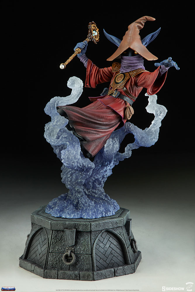 Orko Statue by Sideshow CollectiblesABOUT THIS STATUE“Magic, don’t fail me now!”Developed and manufactured in partnership with Tweeterhead, we are proud to present the newest magical addition to the Masters of the Universe collection, the Orko Statue!Measuring 14.5” tall, the resin Orko Statue captures the Trollan hero in a moment of successful spellcasting. With an ornate wand in hand, Orko levitates as a plume of magic billows from his base inspired by the halls of Castle Grayskull. Known as Orko the Great on his homeworld, the Trollan has been given a stylish aesthetic update featuring intricately detailed armor bearing his iconic “O” symbol. Orko is wearing his iconic red robes, sculpted to show fluttering movement as he hovers. A pointed hat and purple scarf conceal his face as is customary of the secretive Trollans, and decorative rings and magic pouches complete the spellcaster’s signature look.The Orko Statue stands in scale with the other statues in the Masters of the Universe collection. Pair Orko with the He-Man Statue and give Prince Adam a powerful ally in your MOTU display.The Exclusive edition of the Orko Statue features an exclusive swap-out hand holding an open spellbook, the pages of which include some Masters of the Universe Easter eggs for the most eagle-eyed spellcasters.Add a little magic to your Masters of the Universe collection. Pre-Order the Orko Statue today!LicenseMasters of the UniverseTypeStatueMaterialsResinManufacturerSideshow CollectiblesArtistsNate Baertsch (Design)Matt Black (Sculpt)Mike Allen (Mold & Cast)Mireya Romo-Bowen (Paint)ADDITIONAL DETAILS & DIMENSIONSExpected to ShipJun 2018 - Aug 2018Item shown is a prototype. When shipped, the final production piece may differ in appearance.Product Size14.5 H (368.3mm) x 11 W (279.4mm) x 9 L (228.6mm)*Dimensional WeightTBDInt'l Dim. WeightTBD* Size and weight are approximate values.SKU2005221UPC747720235410MASTERS OF THE UNIVERSE and associated trademarks are owned by and used under license from Mattel, Inc. © 2018 Mattel, Inc. All Rights Reserved. Under license to Classic Media.