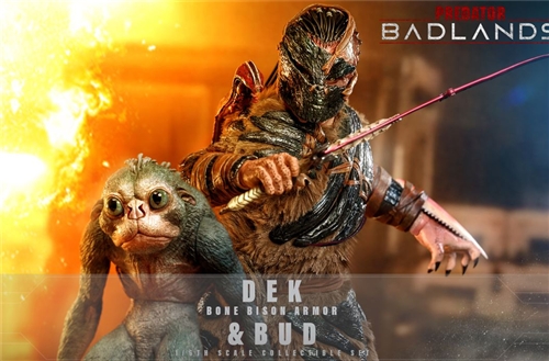 Sideshow และ Hot Toys รู้สึกตื่นเต้นที่จะขยายคอลเลกชัน Predator: Badlands ของเราด้วยการเปิดตัวชุดฟิกเกอร์สะสมขนาด 1/6 ของเด็ค (เกราะกระทิงกระดูก) และบัด! ฟิกเกอร์เด็ค (เกราะกระทิงกระดูก) ขนาด 1/6 โดดเด่นด้วยหัวที่แกะสลักอย่างประณีตพร้อมลูกตาที่กลอกได้แยกชิ้น ผมทรงเดรดล็อกสีดำที่หวีเรียบ และขากรรไกรที่เปลี่ยนได้สองชุดเพื่อทำให้สีหน้าดุร้ายของเด็คมีชีวิตชีวา ชุดเกราะ Bone Bison ที่โดดเด่นของเขาถูกสร้างขึ้นอย่างประณีตบนผ้าขนสัตว์สีน้ำตาลและเสื้อคลุมสีดำ เสริมด้วยเกราะหน้าแข้งและเกราะข้อมือ โดยมีใบมีดเขี้ยว Luna Bug อยู่ที่เกราะข้อมือด้านซ้าย และหน้ากาก Bone Bison ที่สามารถถอดออกได้เพื่อเสริมความงามแบบดั้งเดิมอย่างสมบูรณ์แบบ