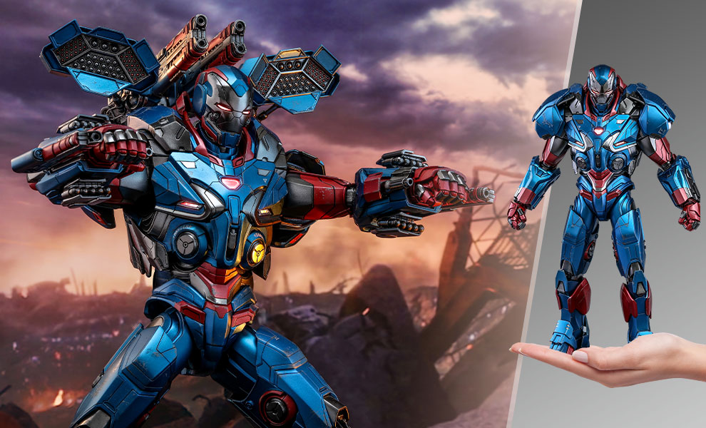 ABOUT THIS SIXTH SCALE FIGURESideshow and Hot Toys present the Iron Patriot Sixth Scale Figure from Avengers: Endgame!This highly-accurate diecast collectible figure is specially crafted based on the appearance of Don Cheadle as James Rhodes/Iron Patriot in Avengers: Endgame. This figure features two interchangeable heads including a newly developed head sculpt with remarkable likeness as well as a helmeted head with LED light-up function. The Iron Patriot features metallic blue and reddish-orange painted armor with streamlined armor design, LED light-up chest Arc Reactor and repulsors, articulated weapons featuring back-mounted cannons and shoulder-mounted missile launchers, and a specially designed Avengers: Endgame themed figure base.Enrich your Marvel collection with the new Iron Patriot Sixth Scale Collectible Figure!BrandMarvelManufacturerHot ToysTypeSixth Scale FigureArtistsTae Ho Kang (Head Sculpt)E-Lee (Head Paint)JC. Hong (Head Paint) (Head Art Direction)Lok Ho (Paint)WHAT'S IN THE BOX?The Iron Patriot Sixth Scale Figure features:Authentic and detailed likeness of Iron Patriot in Avengers: Endgame One (1) newly developed head sculpt with authentic likeness of Don Cheadle as James Rhodes in the movie Movie-accurate facial features with detailed wrinkles and skin textureOne (1) iinterchangeable helmeted head with LED light-up function (white light, battery operated) Approximately 32.5 cm tallOver 30 points of articulationContains diecast material Special features on armor include:Metallic blue, reddish orange and grayish silver colored painting on the sleek and streamline armor design6 LED light-up points throughout parts of the armor (white light, battery operated)16 LED light-up points throughout parts of the armor (white light, battery operated)One (1) pair of fully deployable air flaps on the back of the armorOne (1) detachable chest armor to reveal interior mechanical designOne (1) set of attachable cannon (attachable to forearm or back of figure)Two (2) sets of interchangeable forearm cannons (normal and missile firing)Two (2) sets of interchangeable forearm armor (normal and missile firing)Six (6) pairs of interchangeable hands including: - One (1) pair of fists- One (1) pair of hands with articulated fingers and light-up repulsors (white light, battery operated)- One (1) pair of repulsor firing hands (white light, battery operated) Enhanced articulations on waist armor to allow flexible movementEach piece of head sculpt is specially hand-paintedWeapons: One (1) pair of articulated back-mounted cannonsOne (1) pair of articulated shoulder-mounted missile launchersAccessories:A specially designed movie-themed figure base with movie logo and character name ADDITIONAL DETAILS & DIMENSIONSMaterialsDiecast zinc alloyProduct SizeHeight: 12.79 (324.87 mm) | *Dimensional Weight0.00 lbs (0 kg) [Intl. 0.00 lbs (0 kg)] ** Size and weight are approximate values. Learn moreSKU904924UPC4895228602558© 2019 Marvel. © 2019 Hot Toys Limited. All Rights Reserved.