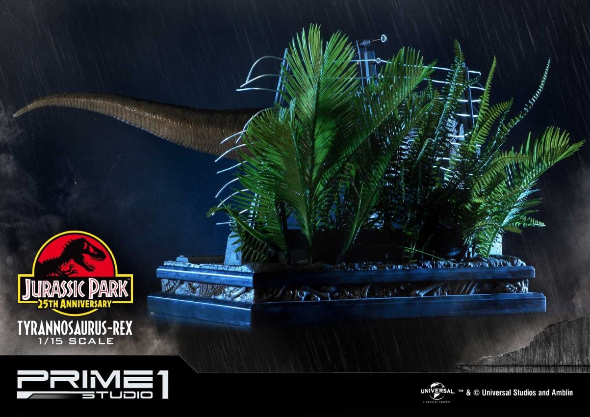 Descriptions“Somewhere on this island is the greatest predator that ever lived.” – Roland TemboPrime 1 Studio is proud to present 1/15 Scale LMCJP-01: Tyrannosaurus-Rex from Jurassic Park (Film 1993). Jurassic Park directed by Steven Spielberg, it is based on the 1990 novel of the same name by Michael Crichton. The film is set on the fictional island of Isla Nublar, located off Central America’s Pacific Coast near Costa Rica, where billionaire philanthropist John Hammond and a small team of genetic scientists have created a wildlife park of cloned dinosaurs. Tyrannosaurus Rex is the largest carnivore living on Isla Nublar and, as such, grew into a fearless, bold, and domineering beast who walks the line between heroine and villainess. T-Rex nicknamed is Roberta but most fans call her Rexy/Rexie. She is a female Tyrannosaurus, largely motivated by two goals: keep intruders off her territory and eat any pry she finds there. She is known for participating in several incidents and for saving the major human participants involved in these incidents from other dangerous creatures, although inadvertently. This makes her role something of an anti-hero in the films. Based on the iconic scene from Jurassic Park, we are thrilled to let all our fans know the artists behind this project. Julien Romeo is the main modelers for the Jurassic Park: Origins. With him mainly sculpts this project with the help of Steve Jubinville which both have worked for ILM. Fans can expect this product to be the most movie accurate as possible. This is a must-have for all Rexy fans from Jurassic Park franchises. Specifications:Size approximately 17 inches tall for Tyrannosaurus-Rex [(H)42.5cm (W)84.2cm (D)38.7cm]Size approximately 5 inches tall for Tyrannosaurus-Rex dinner Goat [(H)12.9cm (W)14.2cm (D)8.0cm]Notice:Prototype samples shown.Product details could be subjected to change without further notice.Jurassic Park is a trademark and copyright of Universal Studios and Amblin Entertainment, Inc. Licensed by Universal Studios. All Rights Reserved.
