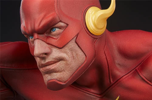 รูปแบบ The Flash Premium Format ?มีความสูง 17 นิ้วและลึก 20 นิ้วเมื่อ Scarlet Speedster วิ่งไปตามถนนเตะเศษหินขึ้นใต้รองเท้าบู๊ตสีเหลืองของเขา รูปปั้นที่ไม่หยุดนิ่งนี้จับ Barry Allen ในช่วงเวลาหนึ่งของการแช่แข็งเขาต่อหน้าต่อตาเราก่อนที่เขาจะรีบเร่งที่จะช่วยทั้งวัน