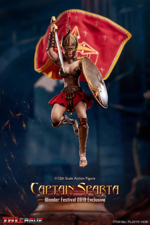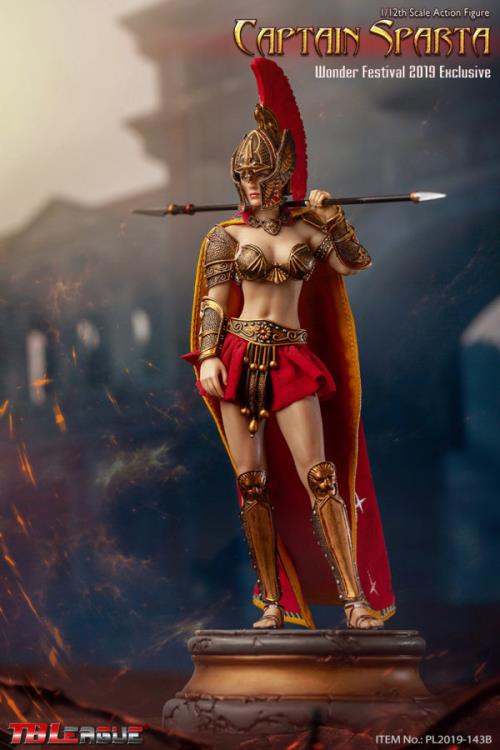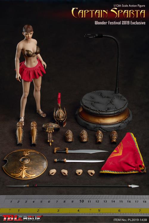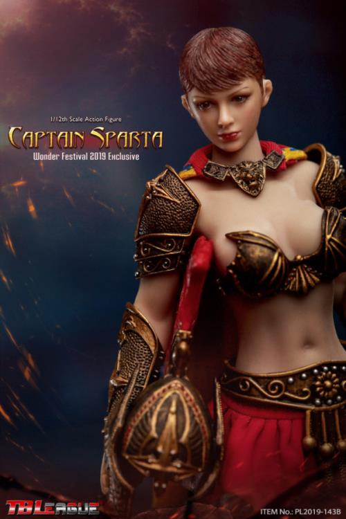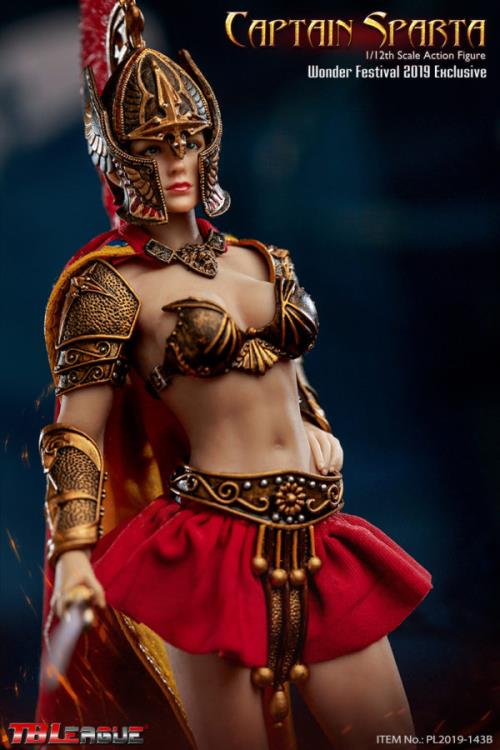 The Captain Sparta figure from TBLeague stands in the 1/12 scale and features a seamless body with metal skeleton. Captain Sparta includes a wide array of accessories and removeable armor, making her perfect for customizing.Product Features1/12 ScaleMade of plastic Seamless body with metal skeleton2019 Wonder Festival exclusiveRemoveable armorBox ContentsCaptain Sparta figure3 Pairs of handsChest guardShoulder guardsForearm armorCalf armorShort skirtBeltHelmetShieldHacking knifeBattle swordSpearCape with a necklace decorationBase & stand