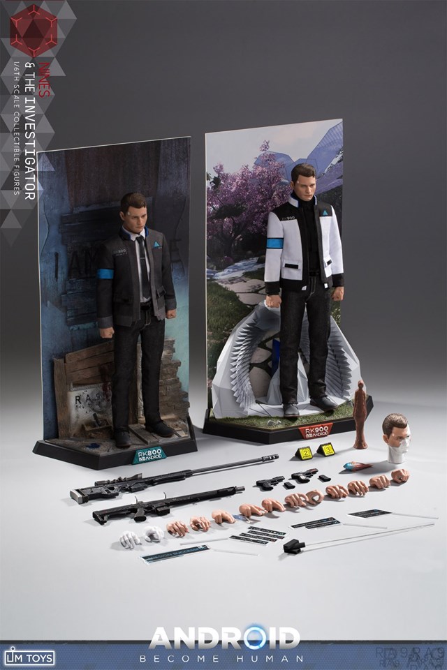 Clothing style:RK800 clothing style:A carefully cut stitching dark bionic uniforma white shirta tie (with a tie clip)a dark pair of jeansa black beltA pair of dark leather shoesRK900 clothing style:A black and white high collar bionic uniform with a carefully tailored stitchingA high collar black shirta dark pair of jeansa black beltA pair of dark leather shoesarms:A detachable sniper rifleAn assault rifle (with aiming accessories)A D.P.D police pistolA black military pistolAccessories:A RK800 head carving with an aperture using blue uv reflective paint;A RK800 fades the simulated skin head carving, with a red uv reflective paint aperture and a blue uv reflective coating.A RK900 head carving, including red uv paint reflective aperture and blue pupil coatingTwo special movable entitiestwo coinsa tropical fishA ra9 sculpture (can be separated into upper and lower sections with cards inside)Two yellow signs (with platform scene)Four pieces of game interactive accessories transparent interface and connector that can be assembled and replaced (can be assembled on the platform)17 replaceable palms include:Two pairs of fistsTwo pairs of gunsa pair of naturally stretched palmsOne-and-a-half handshakea pair of bionic person's palmsOne clip coin palmA blue blood palm (with game interactive accessories assembled on the side of the finger)a red bloody palmSpecially designed crime scene scenes with character brand namesSpecially designed Zen Garden theme platform with character brandCrime scene scene theme background board (can be assembled on the back side of the platform)Zen garden theme background board (can be assembled on the back side of the platform)