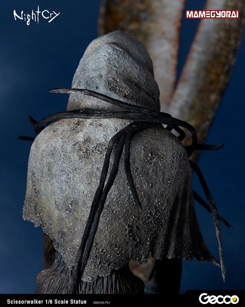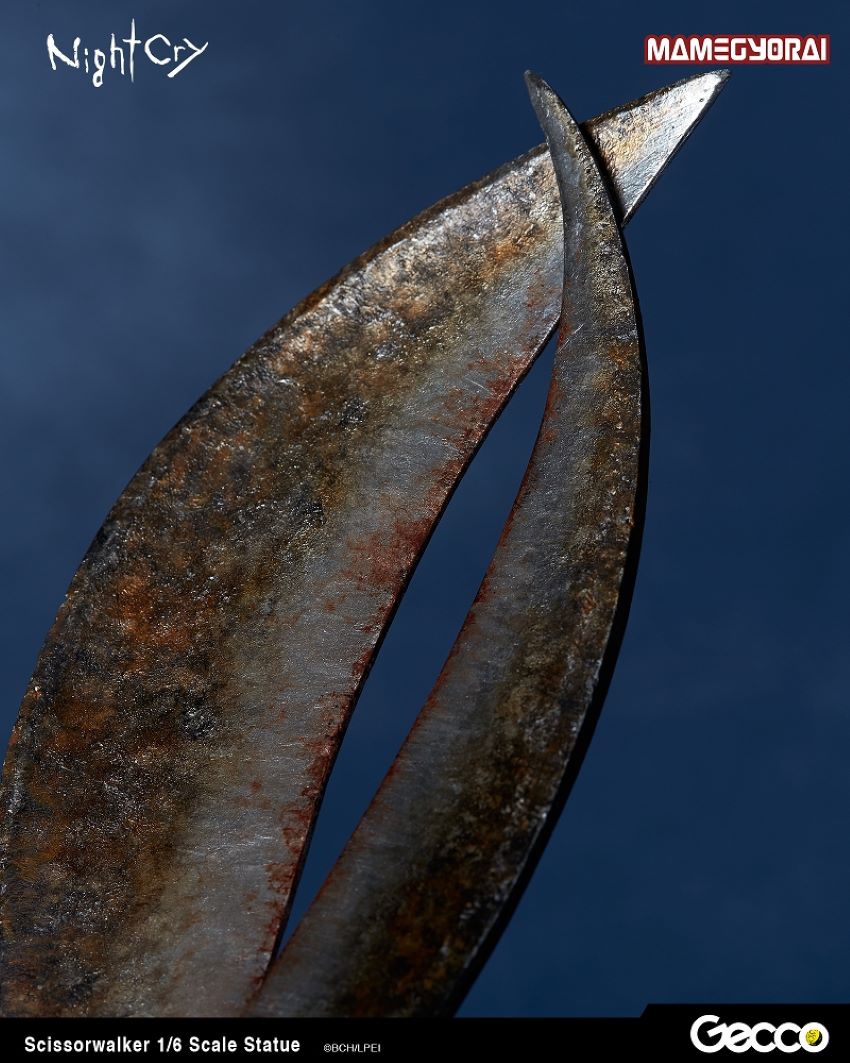 เกมผจญภัยสยองขวัญ "NightCry" นักฆ่า "Scissor Walker" ที่สามารถตกอยู่ในจุดต่ำสุดของความกลัวขึ้นมาจาก Gecco ในฐานะรูปปั้นขนาด 1/6 ขากรรไกรของวอล์คเกอร์และรูปลักษณ์ที่น่าดึงดูดซึ่งทำให้ผู้เล่นได้รับผลกระทบอย่างท่วมท้นแม้ในเกมจะมีสามมิติ กรรไกรขนาดใหญ่ที่ตัดลำตัวด้วยแรงระเบิดที่ทำให้อากาศภายในเรือโดยสารหรูหราและตัดมันด้วยเลือดใบมีดคมที่มีรูปร่างคมชัดและพื้นผิวใบมีดหนัก ใบมีดที่ส่องแสงหมองคล้ำและคราบเลือดเหนียวเหนอะหนะเน้นความโหดร้ายของอาวุธสังหารสังหาร ระหว่างการเล่นเกมมันเป็นเรื่องยากที่จะยืนยันแม้กระทั่งพื้นผิวที่แข็งเช่นเส้นผมและสิ่งสกปรกปะปนกับหมวกที่ขาดรุ่งริ่งความรู้สึกที่หนักหน่วงของสิ่งต่าง ๆ เช่นผิวหนังของต้นไม้ที่พันรอบคอแม่นยำและทำซ้ำได้ ดวงตาที่ไม่ต้องการจับตาดูเหยื่ออย่างไร้ความปราณีไล่ล่าเหยื่อนั้นแสดงออกมาในสีดำและสีที่น่าสงสัย ฐานที่ทาสีเท้าของวอล์คเกอร์กรรไกรให้บรรยากาศที่เป็นเอกลักษณ์และช่วยเพิ่มมุมมองของงาน มาพร้อมกับหัวดิบสวมหน้ากากของกลุ่มลึกลับเป็นโบนัสการจอง คุณสามารถหมุนมันที่เท้าของวอล์คเกอร์กรรไกรหรือตกแต่งเป็นหน่วยเดียวและคุณสามารถเพลิดเพลินกับมันในแต่ละวิธี