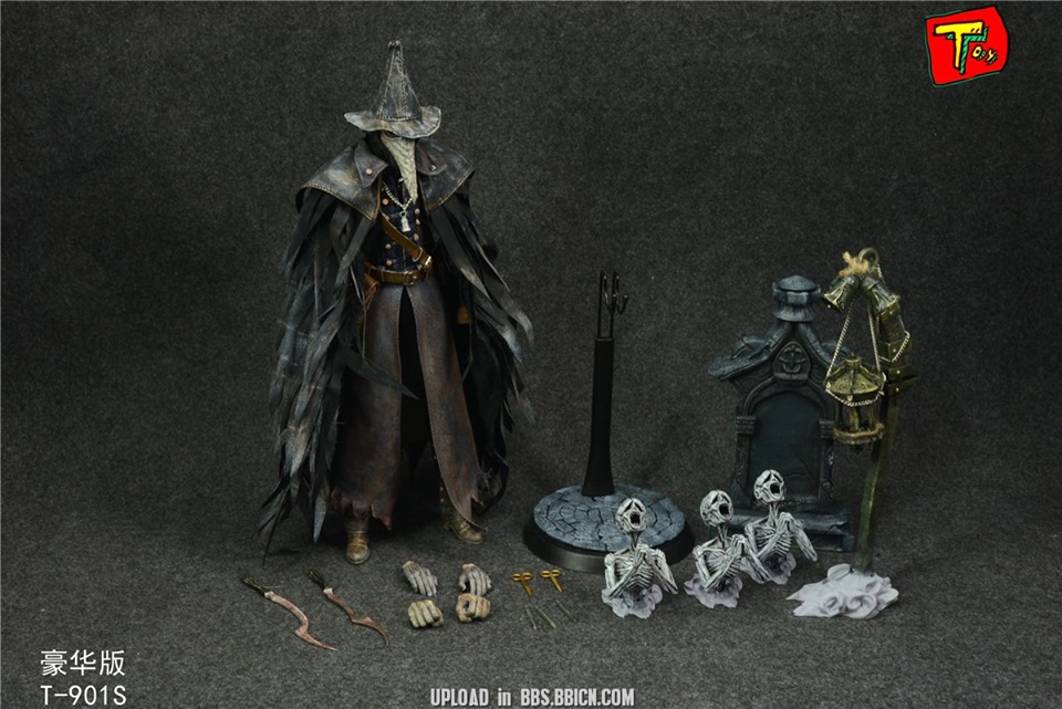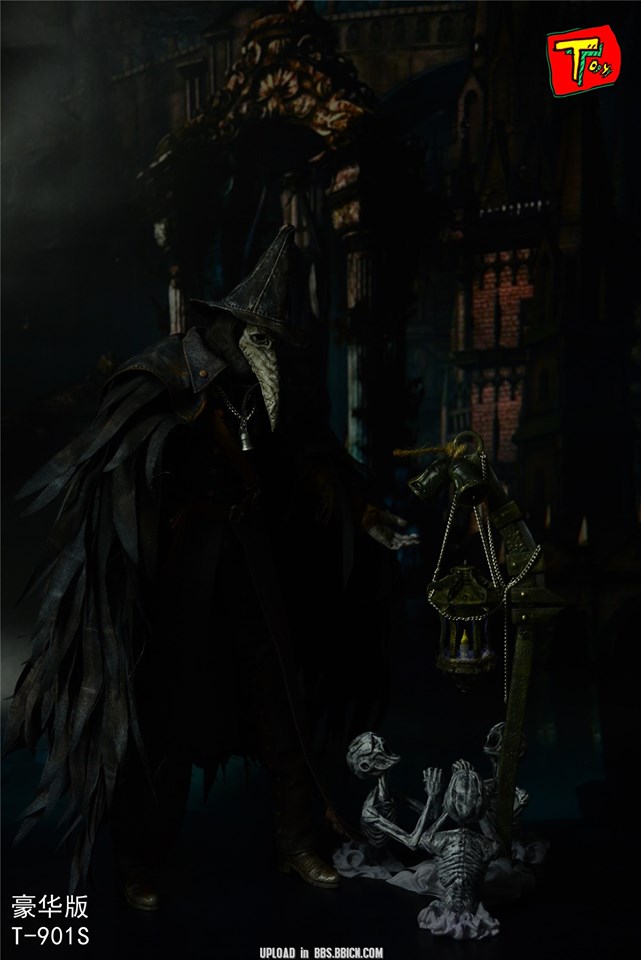 The Raven Hunter: นักล่าที่มีคู่ดาบวิปริตผิดปกติ สวมเสื้อคลุมดำขลับและหน้ากากของแพทย์ใช้ดาบที่แปลกประหลาด เธอดูเหมือนจะเป็นพันธมิตร ... "นักล่าไม่กี่คนที่สามารถต้านทานการมึนเมาของการล่าดูคุณเช่นเดียวกับส่วนที่เหลือทั้งหมด ... " "นักล่าจะต้องตาย ... ฝันร้ายต้องจบลง ... " "ฉันเท่านั้นที่จะหยุดความบ้าคลั่งนี้ได้!" ของเล่น 1/6 Bloodcurse The Raven Hunter Eileen เครื่องประดับ: Headsculpt ด้วย Beak Mask ร่างกาย มือสองคู่ Crowfeather Garb Crowfeather Manchettes กางเกง Crowfeather รองเท้า Blade of Mercy ศิลาฤกษ์ ไอลีนมีรูปทรงที่โดดเด่น โคมไฟ (ฉบับหลอด)