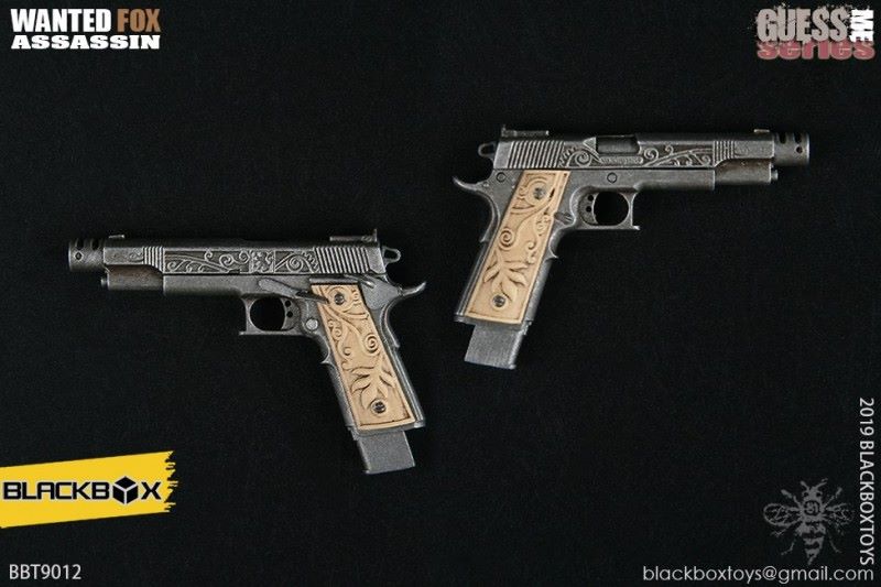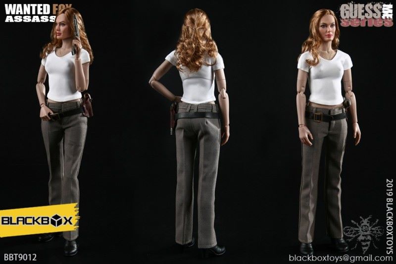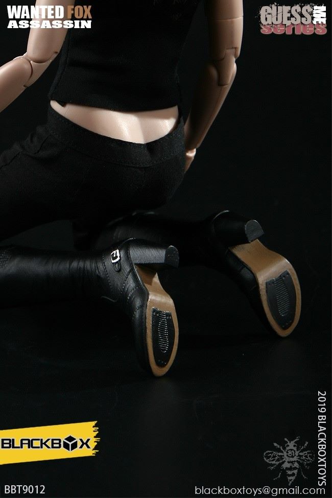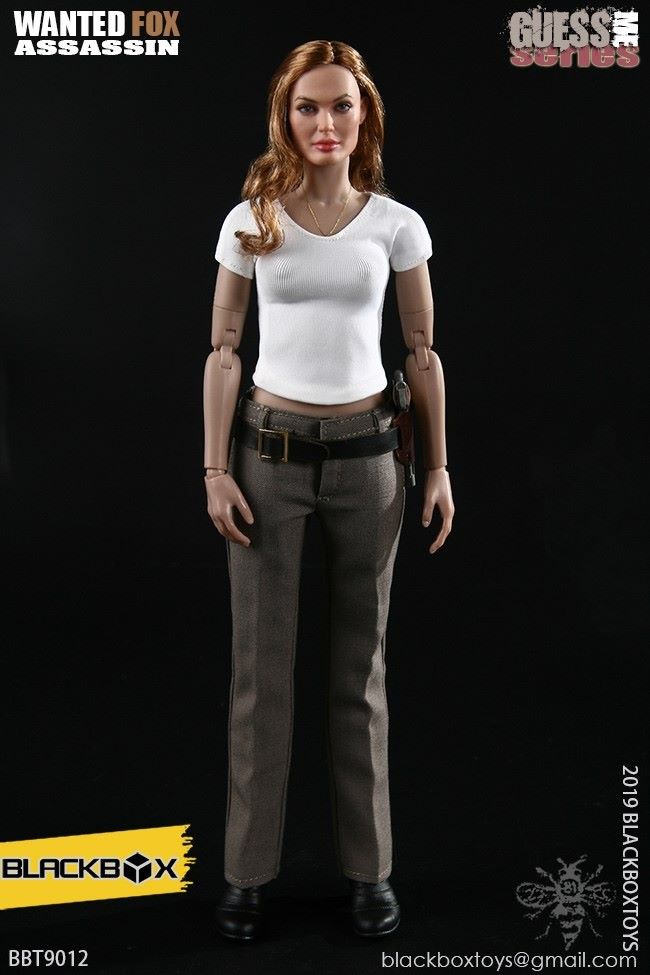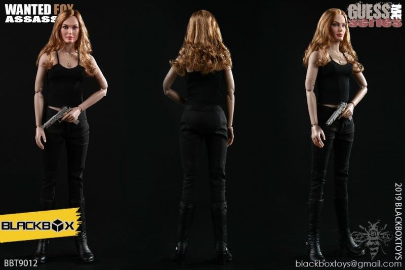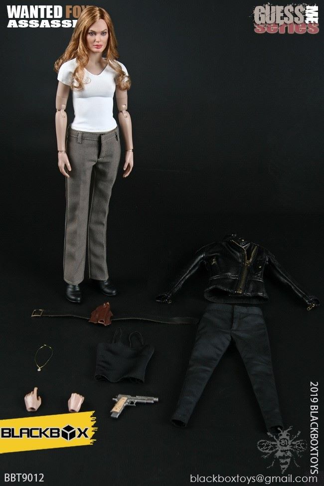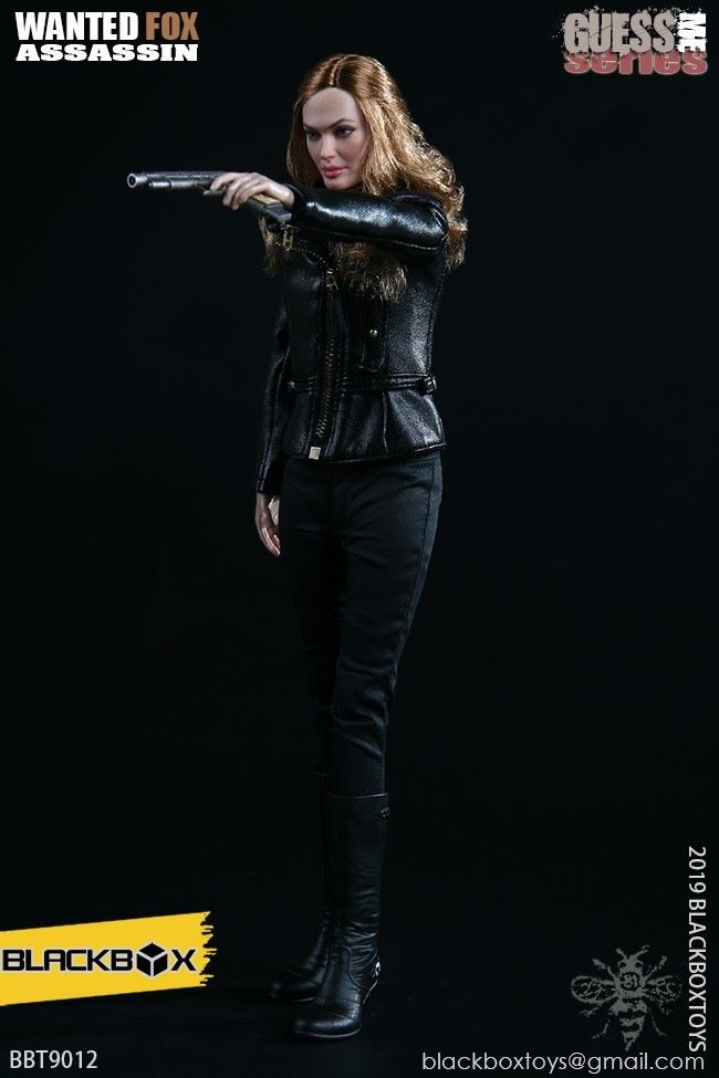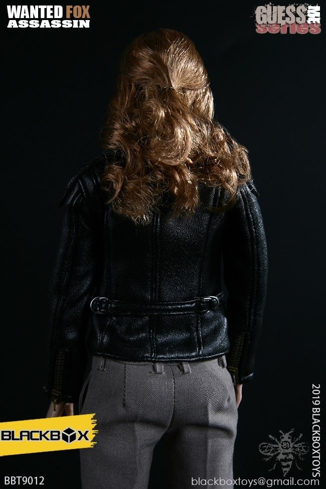BLACKBOX Black Box Toy (BBT9012) 1/6 Who is my series Female Hacker - FirefoxNAME PRODUCT : 1/6 BLACKBOX guessme SERIES WANTED-FOX ASSASSIN1/6 black box toy : Who is my series Female Hacker - Firefox PRODUCT ITEMNO.: BBT 90 12Accessories include: SET INCLUDES:Clothing COSTUME:Black leather jacket BLACK LEATHERJACKETBlack sleeveless vest BLACK TANK TOPSSLEEVELESS VESTBlack ladies pants BLACK SLIM PANTSGrey ladies pants GREY PANTSBlack belt BLACK LEATHER BELTBrown pancake holster BROWN LEATHER MOLDED PANCAKE BELT HOLSTERSimulation hair transplant head HEAD SCULPTURE FOX Body with palm/foot FEMALE-BODY W/ RELAXED HANDSPalm PALMS:Left grip gun palm GUN HOLDING LEFT HANDRight fist fist palm CLENCH FISTRIGHT HANDEquipped with ACCESSORIES:Assassin's Necklace FRATERNITY NECKLACEWomen's high heel boots TRIALMASTER HEELHIGH LEATHER BOOTSWeapons WEAPONS:Pistol M1911 PISTOL - FOXCUSTOM