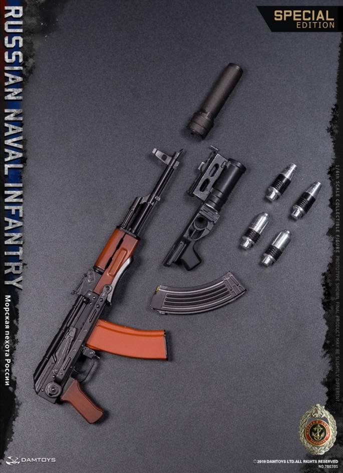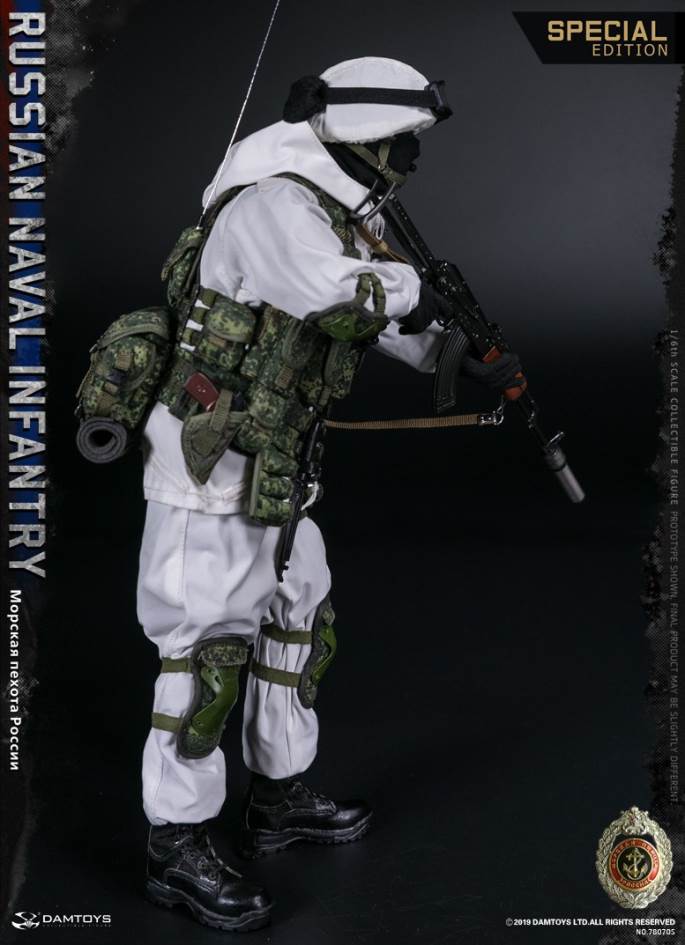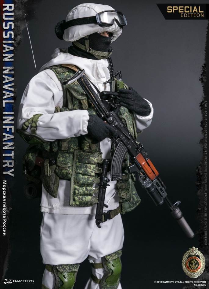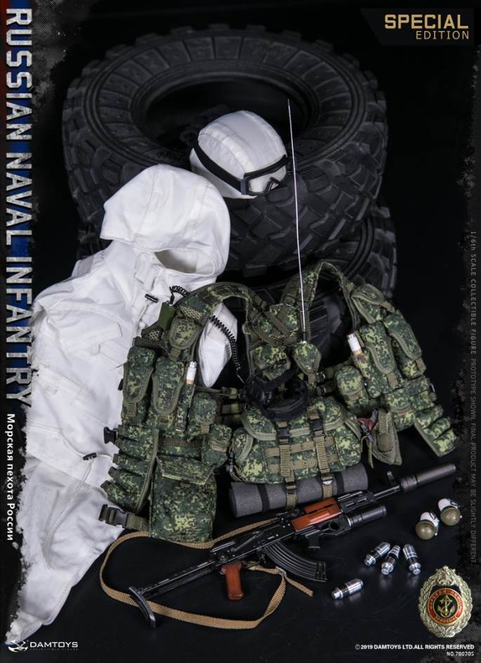 DAMTOYS 1/6 RUSSIAN NAVAL INFANTRY SPECIAL EDITIONDAM NO.78070S6970569625614PARTSLIST:HEAD SCULPTUREDAM ACTION BADY 3.0ACTION HANDS FOR GLOVES X2COLD GLOVESGOGGLESGOGGLES COVER (BLK) 6B28 HELMET and COVER (DIGITAL FLORA)MASK (BLK)SHIRTHELMET WINTER COVER (PART FOR SPECIAL EDITION)6SH119 WINTER SUIT (PART FOR SPECIAL EDITION)6SH119 WINTER PANTS (PART FOR SPECIAL EDITION)BDU SUIT(DIGITAL FLORA)BDU PANTS (DIGITAL FLORA)LEATHER BELTBOOTS (BLK)6B45 MOLLE ARMOR VEST(DIGITAL FLORA)6SH117 MOLLE TACTICAL VEST DIGITAL FLORA (PART FOR SPECIAL EDITION)SINGLE MAG POUCH X2 (DIGITAL FLORA)SINGLE MAG POUCH WITH ONE ROP X2(DIGITAL FLORA)GP POUCH X2 (DIGITAL FLORA)UNIVERSAL POUCH Ax2 (DIGITAL FLORA) UNIVERSAL POUCH Bx2 (DIGITAL FLORA) BUTTPACK ((DIGITAL FLORA)Р-168-0.5ум POUCH A (DIGITAL FLORA)Р-168-0.5ум POUCH B (DIGITAL FLORA)Р-168-0.5ум AND headsetAKM-S ASSAULT RIFLEAKM-S MAG 6+1AKM-S SLINGPBS-1 SILENCER (PART FOR SPECIAL EDITION)GP-25 GRENADE LAUNCHERVOG25 GRENADE X3VOG25P GRENADE X3ONE PAIR VOG25 /25P GRENADE POUCH x2 (PART FOR SPECIAL EDITION)AK74 BAYONETAK74 SCABBARDMAKAROV PM PISTOLMAKAROV PM PISTOL MAG x2HOLSTER FOR MAKAROVRGO GRENADERGN GRENADEKNEEPAD (OD)ELBOWPAD (OD)“D” HANGING BUCKLEOURDOOR SLEEPING PAD (REPLACEMENT PARTS)DROP OF LEG GAS MASK POUCH(DIGITAL FLORA)ID PATCHES x2FLAG PATCHROP FLARES (RED)ROP FLARES (GREEN)MILITARY BINOCULARS AND COVER