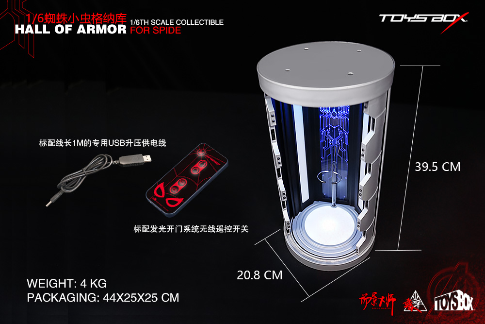 1/6 Hall Of Armor For SpideBrand: TOYS-BOXModel: TB088Packing size: 44x25x5cmGross weight: 4.5kgStatement on November 30, 2019, shipped in the first quarter of 2020