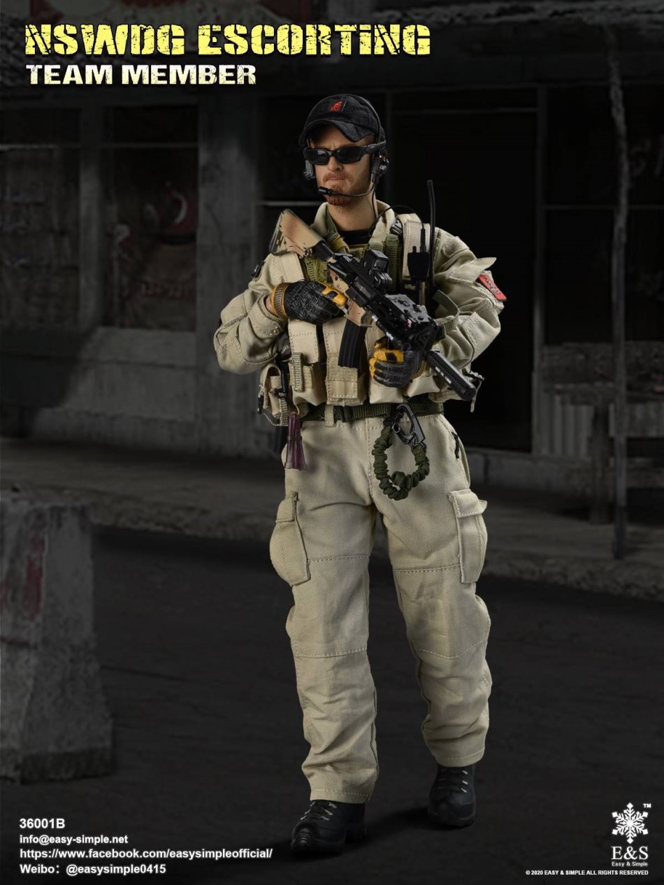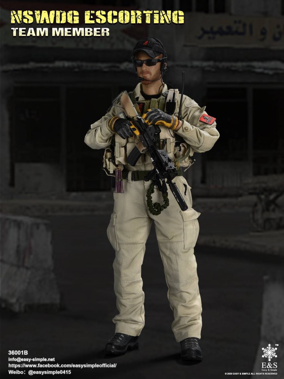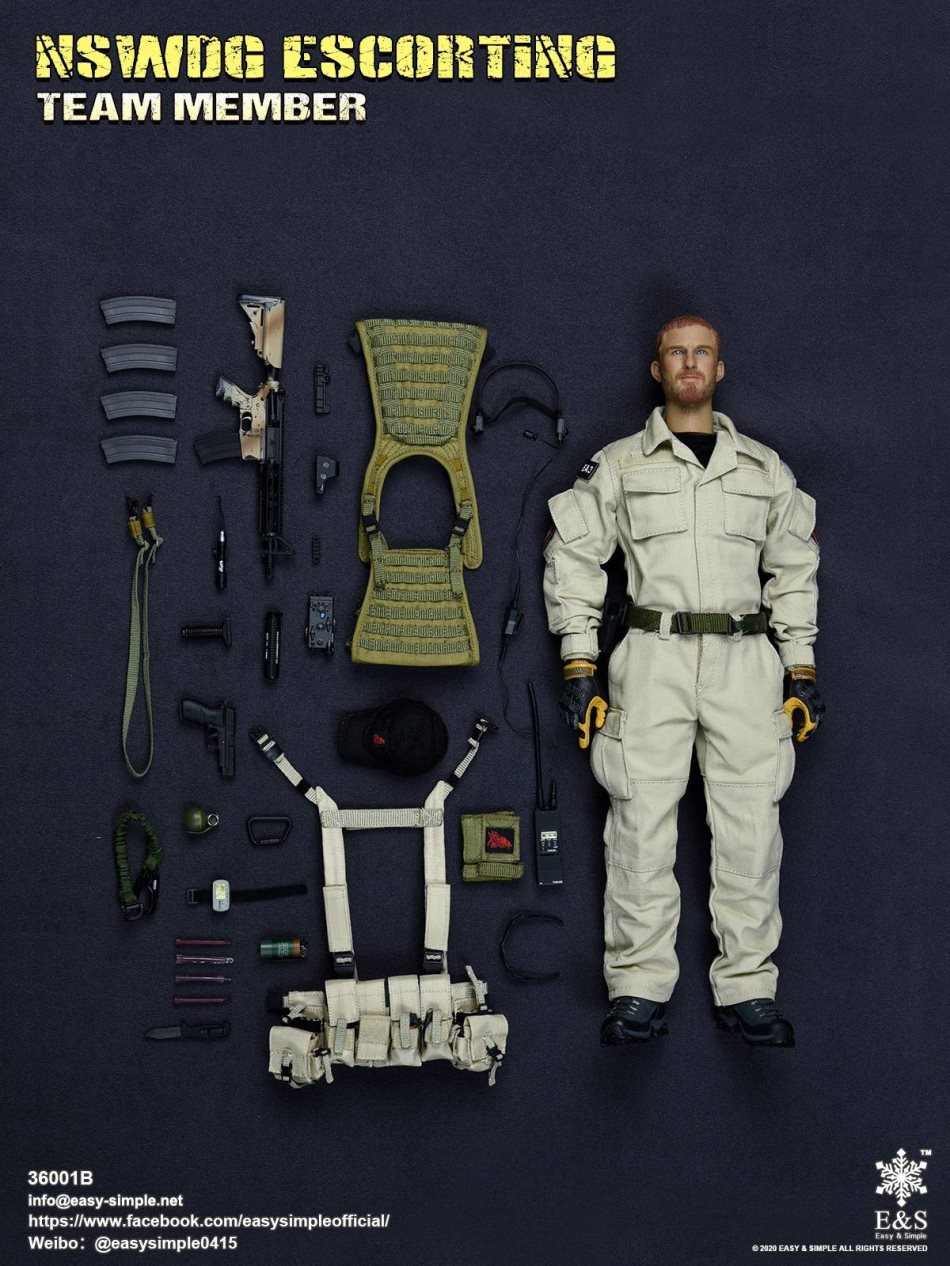 SKU: 36001BITEM: NSWDG ESCORTING TEAM MEMBERBreakdown ListReal like Head SculptES-Buddy 2.0 BodyShirtCustom BDU JacketBDU PantsBaseball Cap0612A Rigger’s BeltMBSS Plate Carrier1961A Chest RigNSWDG MK18 Assault Rifle552Holographic Weapon SightPEQ-2M600 Tactical LightSuppressorTactical ForegripAssault Sling30rd MagazinesP-220 PistolPistol MagazineTactical HolsterKailash BootsHeavy Duty 4.0 GlovesDominator Tactical Headset& PTTPRC-148 RadioD-ringForetrex 101 GPSM-67 GrenadeMk13mod0 GrenadesIR Light StickersSafety SlingSunglassesPatches