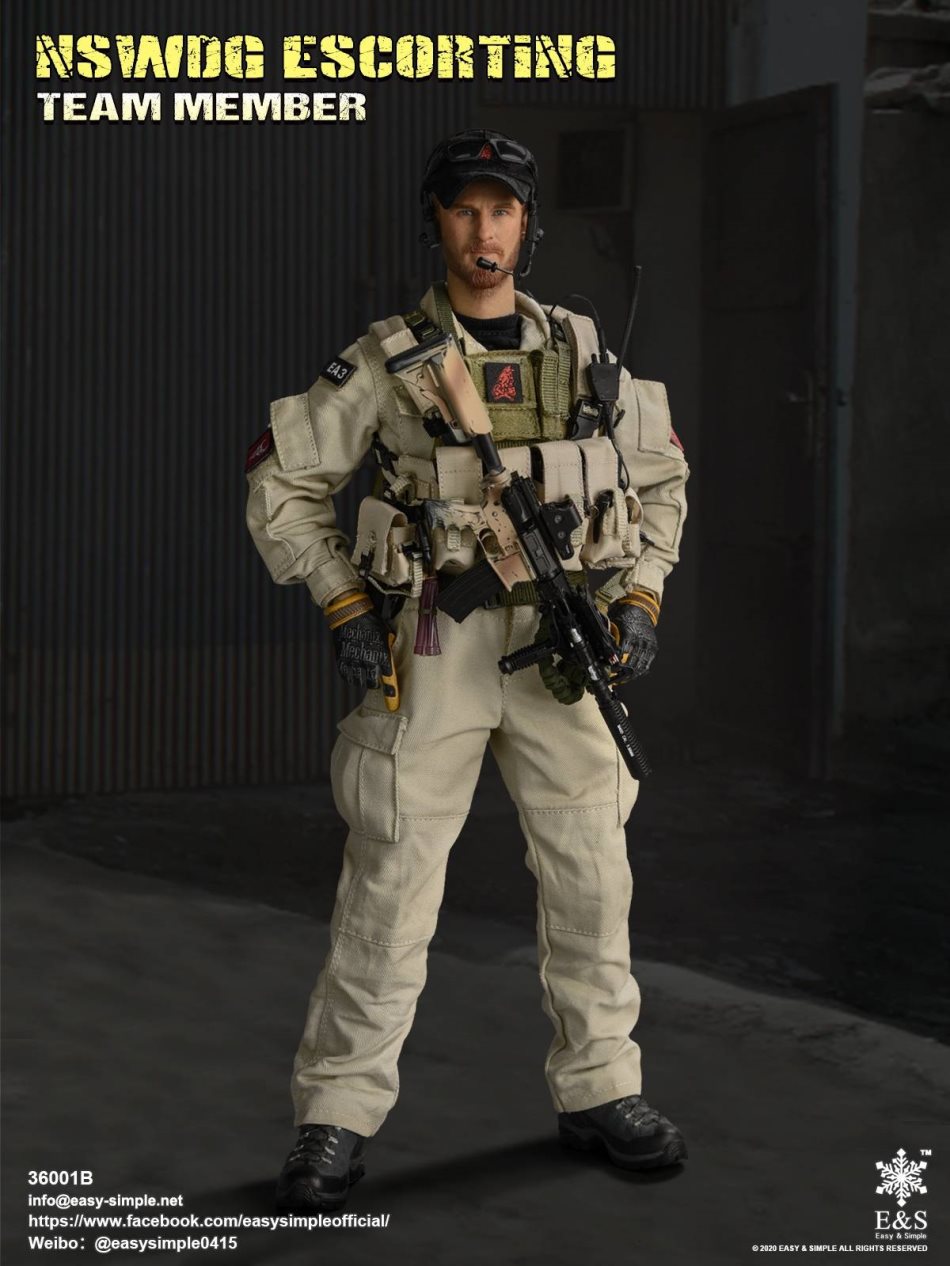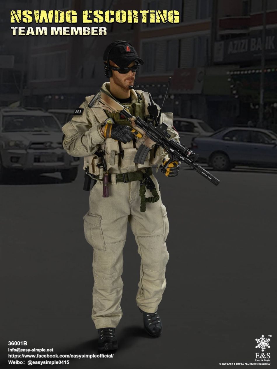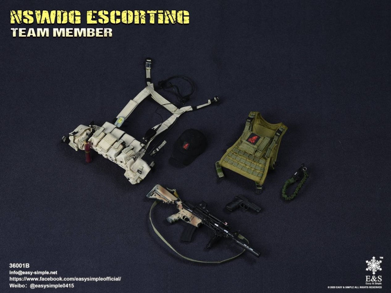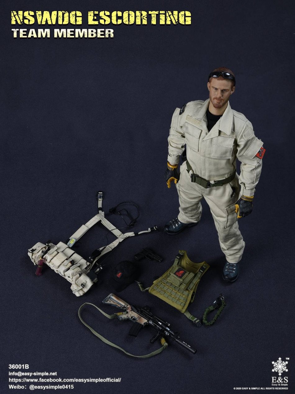 SKU: 36001BITEM: NSWDG ESCORTING TEAM MEMBERBreakdown ListReal like Head SculptES-Buddy 2.0 BodyShirtCustom BDU JacketBDU PantsBaseball Cap0612A Rigger’s BeltMBSS Plate Carrier1961A Chest RigNSWDG MK18 Assault Rifle552Holographic Weapon SightPEQ-2M600 Tactical LightSuppressorTactical ForegripAssault Sling30rd MagazinesP-220 PistolPistol MagazineTactical HolsterKailash BootsHeavy Duty 4.0 GlovesDominator Tactical Headset& PTTPRC-148 RadioD-ringForetrex 101 GPSM-67 GrenadeMk13mod0 GrenadesIR Light StickersSafety SlingSunglassesPatches