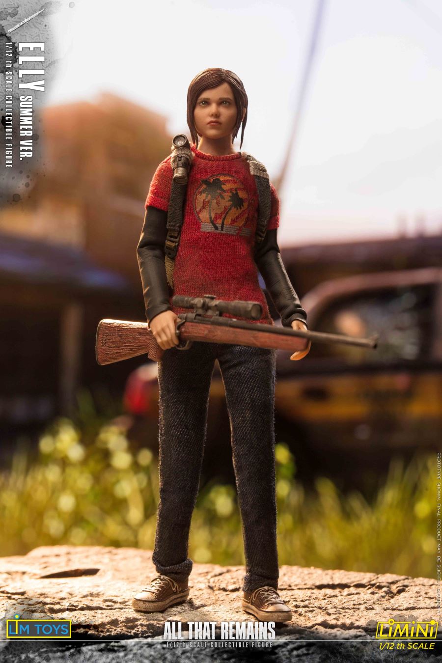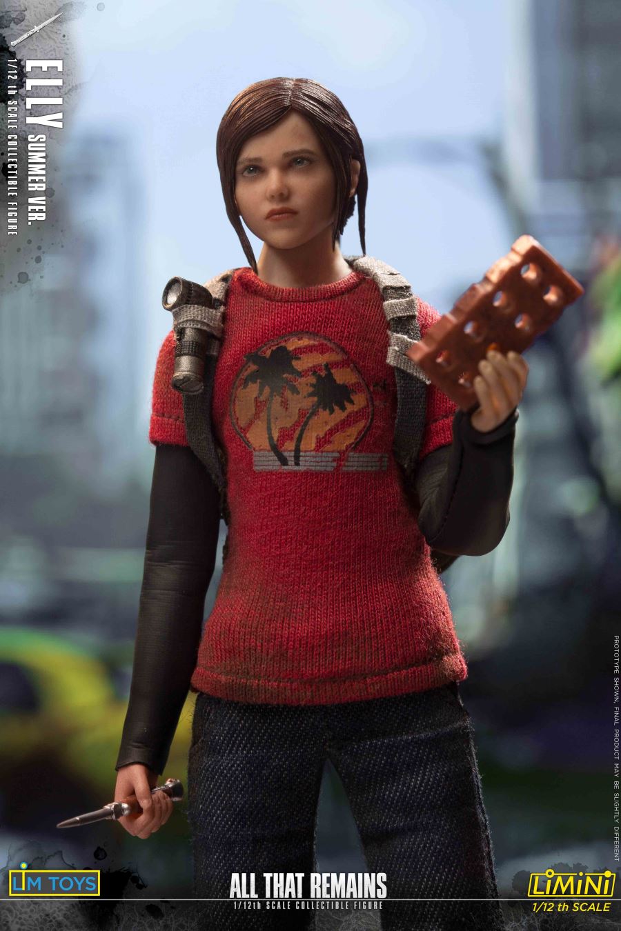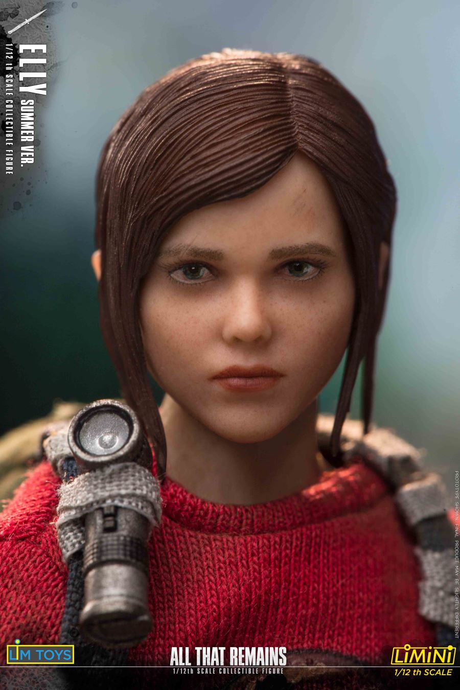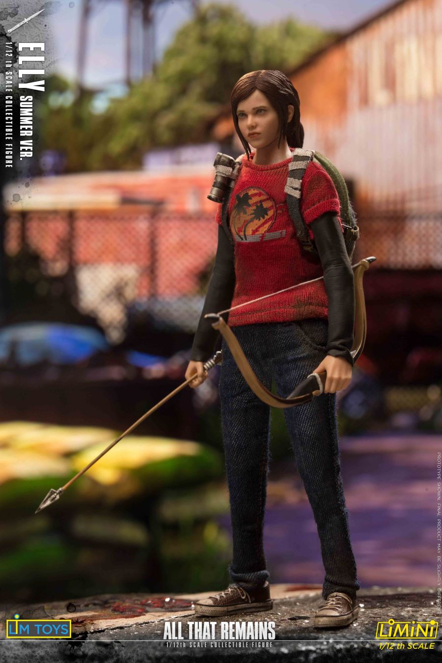 Product list:Figure:1 x Head sculpt1 x Original 1/12 teen female body7 x hands- 2 Closed fist hands- 2 Relaxed hands- 2 Grabbing hands- 1 Trigger handsClothes:1 x Red Hawaiian t-shirt w/ black sleeves1 x Dark blue jeans1 x Pair of sneakers1 x BackpackWeapons:1 x Mini type pistol1 x Hunting rifle1 x Bow1 x Pocket knifeAccessories:1 x Brick4 x Arrows1 x Flashlight1 x Display base