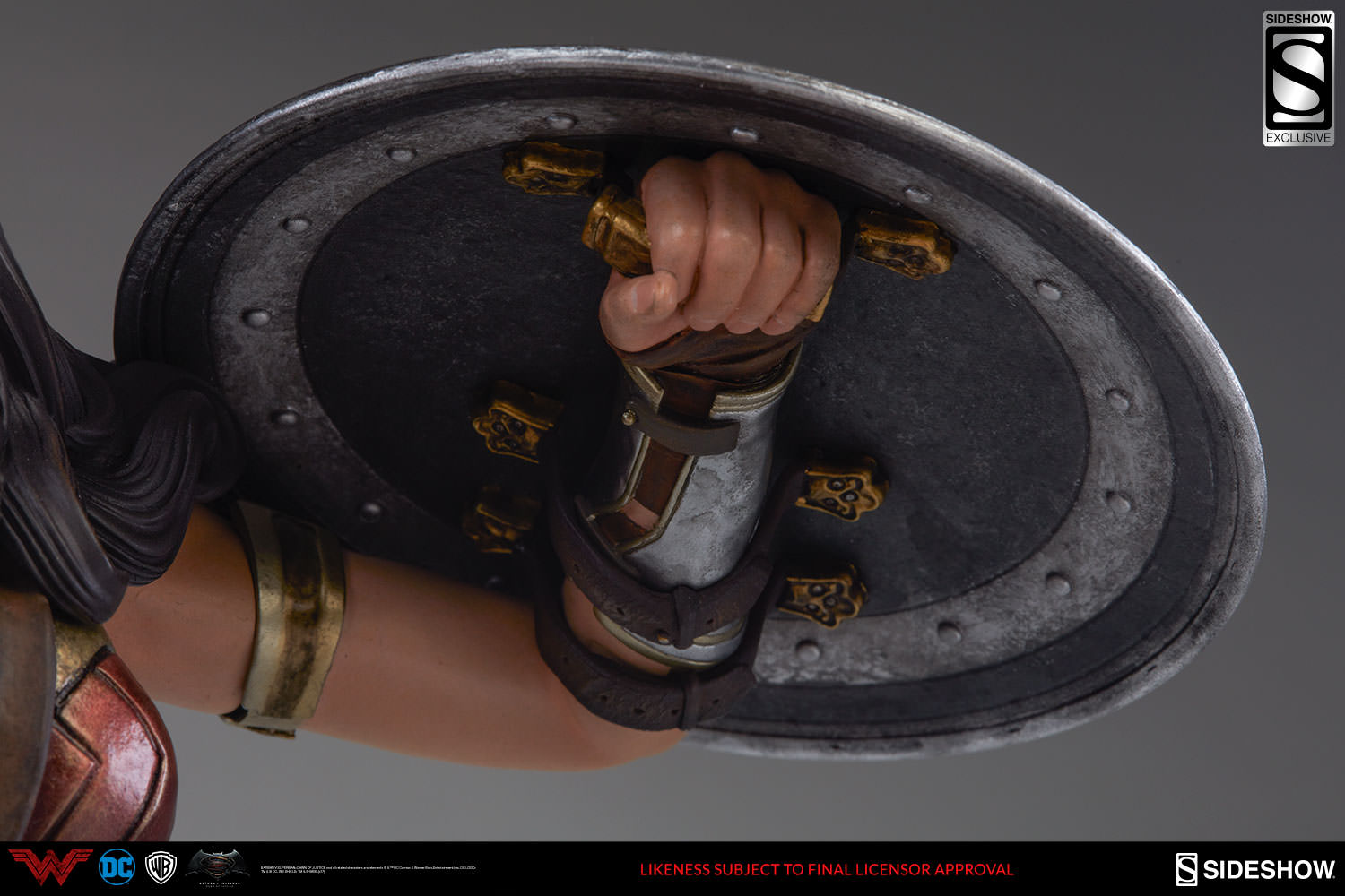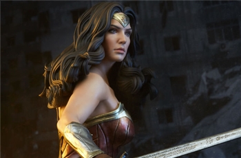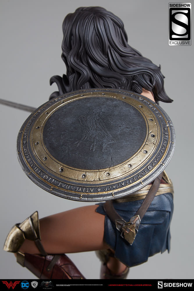 ABOUT THIS PREMIUM FORMAT™ FIGURE“I’ve killed things from other worlds before…” The champion of Themyscira, daughter of Zeus, Amazon, warrior, and princess! A demigod with mighty weapons, fantastic powers, and unimaginable strength - she is Wonder Woman! We are proud to announce a new depiction of Wonder Woman as portrayed by Gal Gadot in Batman v Superman: Dawn of Justice! Expertly crafted by our in-house team and rendered with supreme movie-accuracy, she is a proud addition to our lineup of DC Comics Premium Format™ Figures. Standing 20” tall, this awe-inspiring new figure depicts everyone’s favorite Amazonian Princess in a suitably dynamic pose; stepping into action, sword drawn, and prepared to face any foe! Our Wonder Woman Premium Format™ Figure has an all-new portrait of actress Gal Gadot with intricately sculpted hair and tiara.Every inch of her armor has been re-created for the ultimate in movie accuracy.She is dressed in a ribbed leather corset in red and gold which features stylized versions of her signature golden eagle and double “W” insignia. Her layered armored skirt gives a nod to her Greek warrior lineage while also giving her the freedom of motion to fight. A leather harness is slung over her shoulder and fastened to her waist, carrying her fabled gold braided Lasso of Truth.Steel and leather bracelets protect her arms, and layered red and gold armor cover her lower legs – complete with her much talked about heeled sandals!Wonder Woman’s broadsword has also been recreated with great attention to detail, from the mystic runes inscribed on the blade to the little intricate details of the handle, guard, and pommel. An eye-catching focal point for any collection and – when paired alongside our Batman or Armored Batman Premium Format™ Figures – it makes for an outstanding tribute to a new era in the Warner Brothers DC Comics Cinematic Universe. The Sideshow Exclusive variant version of this Premium Format™ Figure has a replaceable left hand holding an incredibly detailed and weathered circular shield.LicenseDC ComicsTypePremium Format™ FigureManufacturerSideshow CollectiblesArtistsIan MacDonald (Design)Kris Anka (Design)Rachel Roubicek (Design)Adam Ross (Sculpt)Justice Joseph (Sculpt)Adam Smith (Mold & Cast)Chadwick Anderson (Mold & Cast)Chie Izuma (Paint)Kat Sapene (Paint) The Sideshow Design and Development TeamADDITIONAL DETAILS & DIMENSIONSExpected to ShipNov 2017 - Jan 2018Item shown is a prototype. When shipped, the final production piece may differ in appearance.Product Size20 H (508mm) x 14 W (355.6mm) x 16 L (406.4mm)*Product Weight15.00 lbs (6.8 kg)*Dimensional WeightTBDInt'l Dim. WeightTBD* Size and weight are approximate values.SKU3004001UPC747720230101PRICE$499.99BATMAN V SUPERMAN: DAWN OF JUSTICE and all related characters and elements © & ™ DC Comics and Warner Bros. Entertainment Inc. (s16)