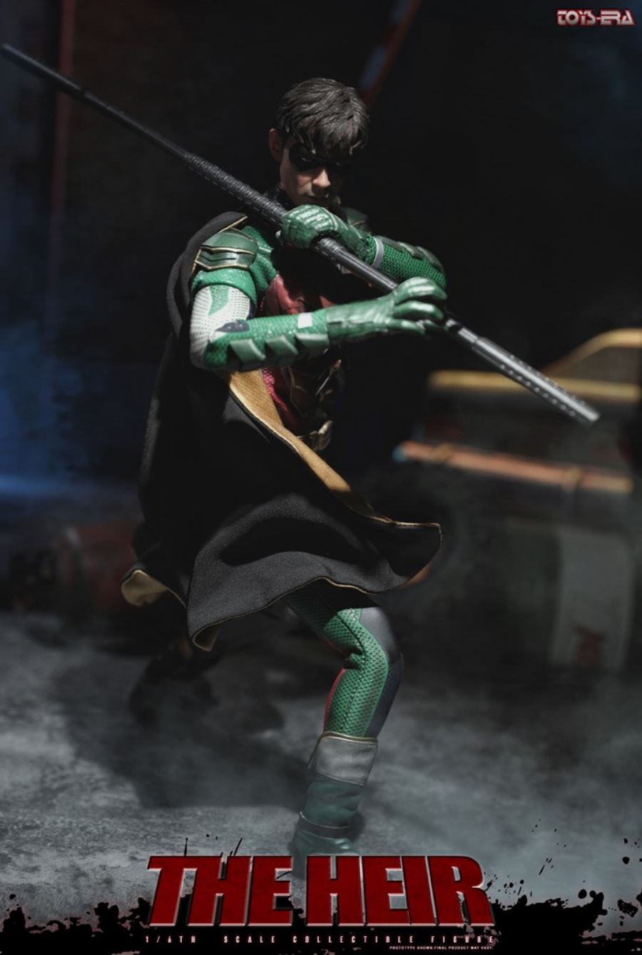 TOYS ERA 1/6 TE034 THE HEIR successorSuggested retail price: 1098 yuan Release date: Q3 2020 Q3 2020head carving and body accessories:★ 1 head carving x1Highly detailed Head sculpt★ Body x11/6 Scale Muscular figure body★ Hands x6 PiecesClothing Accessories:Costume:★ 1 pieceJump suit with breast plate★Cape x1 pieces Cape★ Boots x1 pair ofBootsOther accessories:★ StickBo Staff★ RShape throwing Star R-shaped darts★ Floor x1Figure Stand