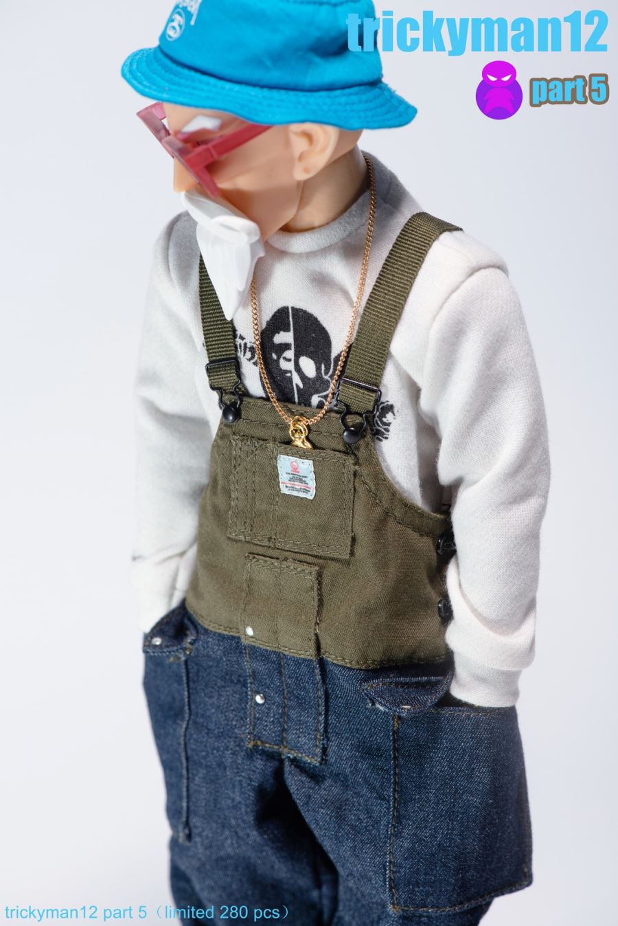 Trickyman12 New release: 1/6 Show my love series - Part 5Parts List: Head carving and 12-inch full movable ferrite (2 opponents type) . Hat . Sweater . Jacket . Suspenders bib . Socks. Sneakers . Glasses. Chain Watch. Backpack. Bracket