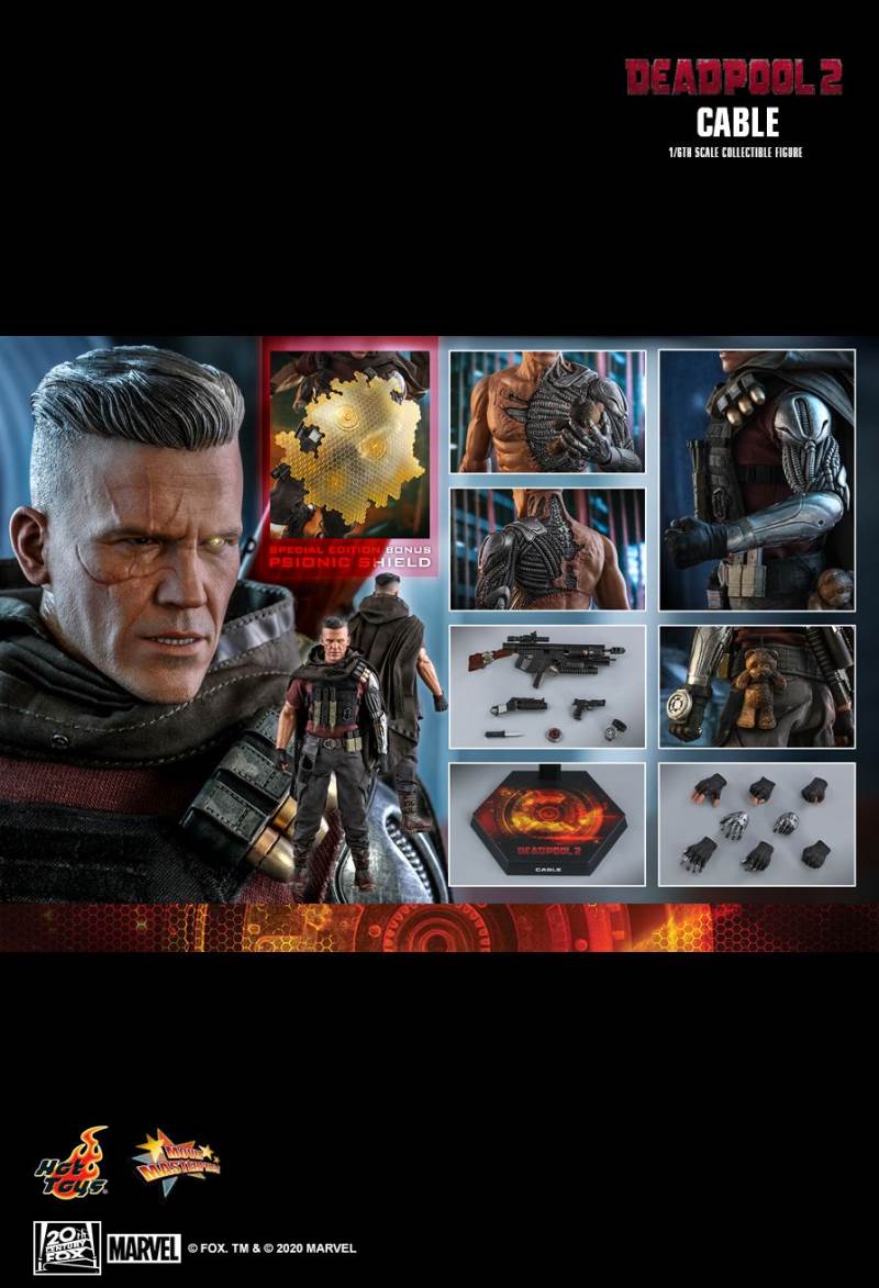 รูปที่มีความแม่นยำสูงได้รับการประดิษฐ์ขึ้นเป็นพิเศษตามรูปลักษณ์ของ Josh Brolin ในฐานะสายเคเบิลใน Deadpool 2 มีรูปแกะสลักหัวที่พัฒนาขึ้นใหม่พร้อมกับรอยแผลเป็นจากการต่อสู้และฟังก์ชั่นไฟ LED บนตาซ้าย ประติมากรรมผมสีเทาเงินที่แม่นยำ ร่างกายที่ออกแบบใหม่อย่างสมบูรณ์และแขนไบโอนิคที่มีรายละเอียดสูงทาสีอย่างระมัดระวังในหลายเฉดสีของโลหะ ชุดทหารที่ปรับแต่งอย่างชำนาญพร้อมเอฟเฟกต์สภาพอากาศที่รุนแรง จำนวนของมือที่สวมถุงมือที่สวมแทนกันได้และถุงมือกล; อาวุธและอุปกรณ์เสริมมากมายรวมถึงปืนกลหนักของสายเคเบิลเครื่องยิงลูกระเบิด, ปืนพก, กริช, ระเบิด, อุปกรณ์การเดินทางข้ามเวลา, กระสุนจำนวนมากที่ถอดออกได้และกระสุนปืน, ตุ๊กตาหมีที่มีสัญลักษณ์สำคัญ ; และฐานของสะสม