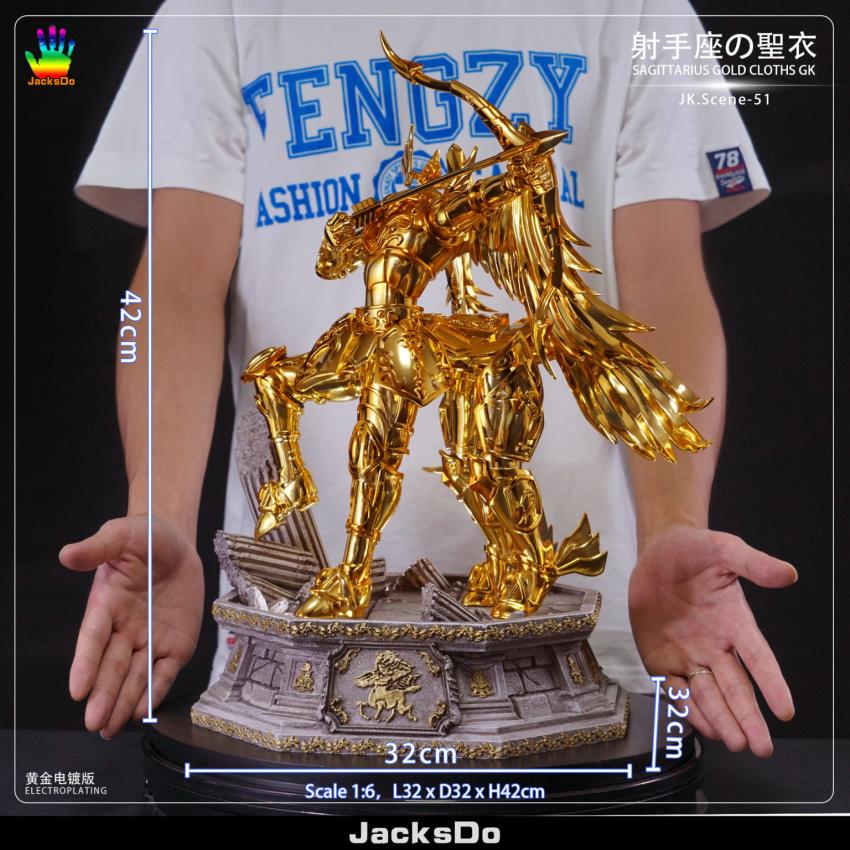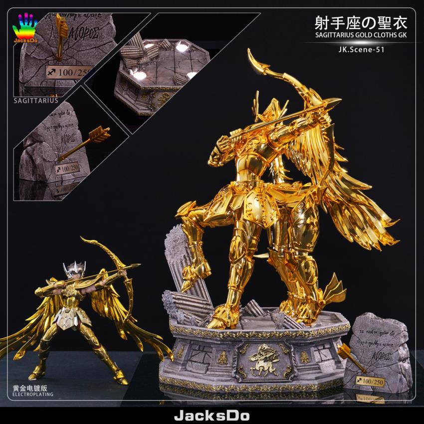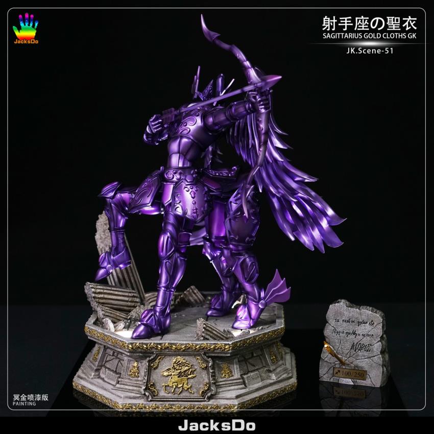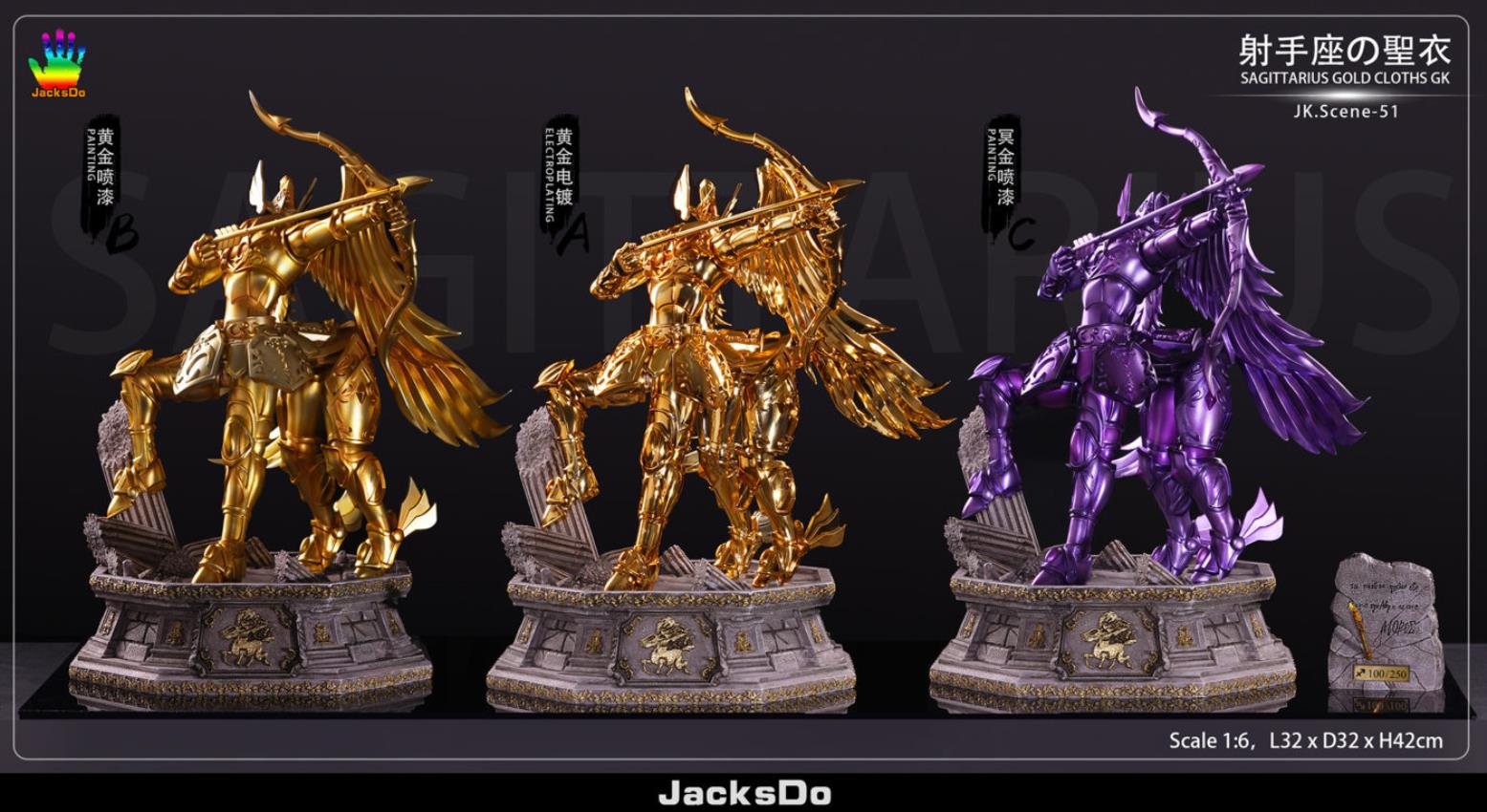 Brand/Team: Jacksdo Studio Product/Work: Sagittarius, SagittariusHeight, Width, Length: 42cm, 32cm, 32cm (1/6)Weight/weight: 4kg without package Est. Release/Estimated shipping time: Q4 2020Units/Number of units: 200 units ( A&B); 50 units (C)Note/Remarks:(1) A = Gold color; Electroplating / Gold electroplating version(2) B = Gold color; Painting / Gold spray paint version(3) C = Purple color; Painting / Mingjin Painted version(4) base c/w light effect/ base can be lit