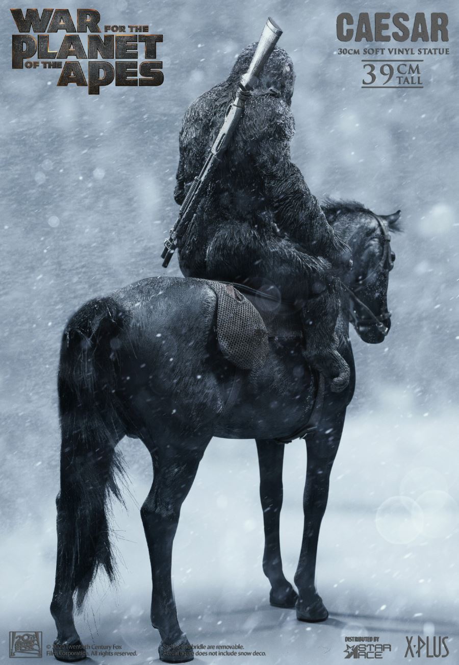 ร่างของ Ace Ace แห่งซีซาร์อยู่บนหลังม้าพร้อมที่จะเข้าสู่สนามรบ เขามาในสองเวอร์ชั่นคือ Dawn of the Planet of the Apes ที่มีปืนยาวติดอยู่ที่หลังของเขาและ War of the Planet of Apes ได้ Caesar สวมชุดสีต่อสู้และถือหอก ม้าแต่ละตัวมีอานม้าและบังเหียนที่ถอดออกได้ตามที่เห็นในภาพยนตร์ที่เกี่ยวข้อง