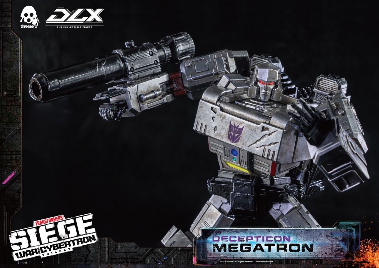 Hasbro x Threezero PresentsTransformers: War For Cybertron TrilogyDLX MegatronDLX Collectible Figure Series (7th August 2020 to 2nd October 2020)cid:image001.jpg@01D66B2E.0A07CF80-Officially authorized by Hasbro and TakaraTomy;-Total height of about 10 inches (25.4 cm);-Nearly 50 movable joints; -Zinc alloy die-cast main frame;-Eye and chest LED lighting function*;-Materials used: ABS, PVC, POM, zinc alloyAccessories:-a D50-R35 fusion cannon;-an HPR telescopic laser launcher;-five pairs of interchangeable hands: fist, relax, action, gun and sword ;-A DLX dedicated action bracket.*Requires AG13 x4 battery (not including battery)TRANSFORMERS and all related characters are trademarks of Hasbro and are used with permission. (C) 2020 Hasbro. All Rights Reserved. Licensed by Hasbro.※The picture is for reference only, and the product is the final product Prevail.!! This product contains small parts that may be suffocating, and is only suitable for people over 15 years old!!Image Links (Final product may vary from prototype images):(Please add notice of * IN DEVELOPMENT / NOT FINAL. MAY DIFFER FROM THE FINAL VERSION in texts when showing these white background images.)Packing information:Materials-ABS, PVC, POM, ZINC ALLOY,Magnet – nilBattery – AG13 x 4 Batteries (Batteries Not Included)Packaging materials – paper: outer case, mount PET: inner casePackaging size (width, height, depth) –(W300 x H370 x D125)mm (1.7 kg)