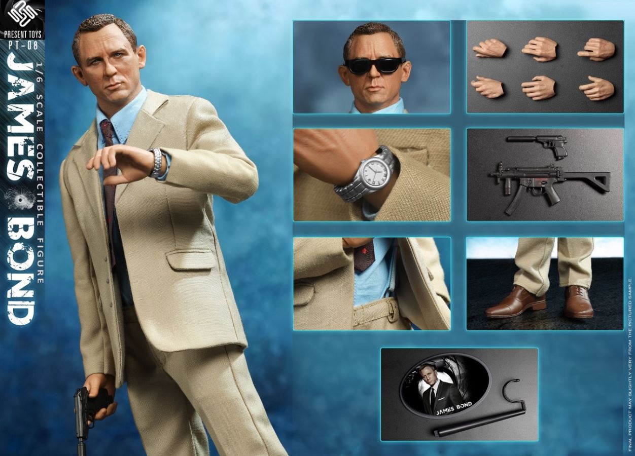 PRESENT TOYS New Product: 1:6 collectible toy – AGENT 007PRESENT TOYS is proud to release a new product: 1:6 collectible toy – AGENT 007.Product Specs:Name: AGENT 007Product Number: PT-sp08Scale: 1/6Product List:Head sculpture *1Articulated body*1Real hand*6Exclusive platform*1Costume:Suit coat*1Shirt*1Necktie*1Suit pants*1Straps*1Shoes*1Weapons:PPK*1Submachine gun Mp5*1Silencing gun head*1Release Date: 1st quarter 2021