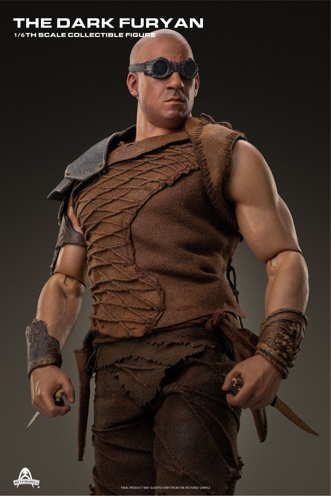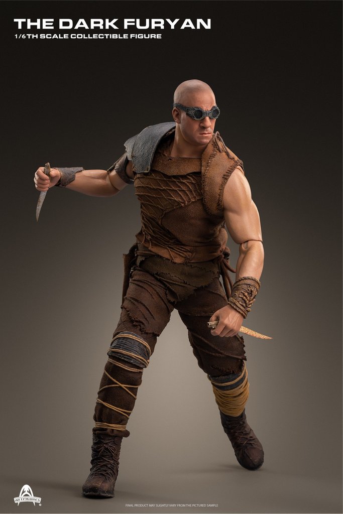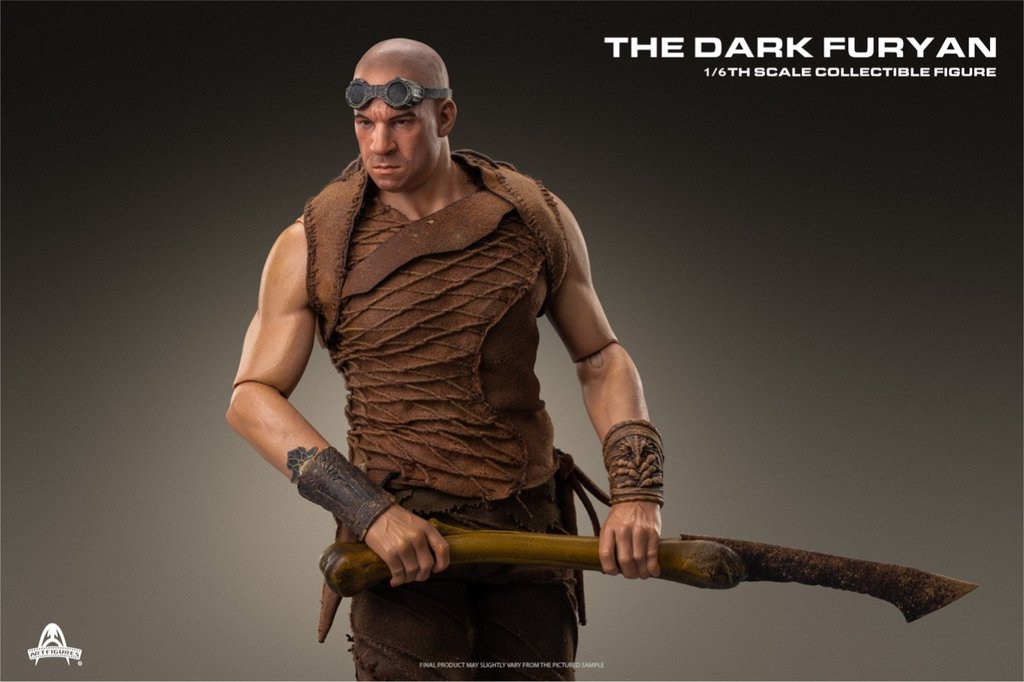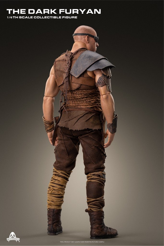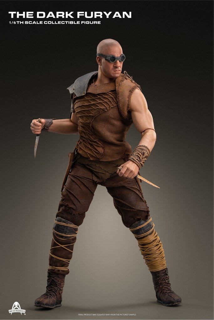 PRODUCT NAME: THE DARK FURYAN 2.0PRODUCT CODE: AF-025PRODUCT PROPORTION: 1/6 SCALEPRODUCT STATUS: FOR ORDERINGThe 1/6th scale The Dark Furyan Collectible Figure specially features:1. Authentic and detailed likeness of the character in the desert2. Newly developed head sculpt with movie-accurate facial expression with detailed skin texture3. Newly designed figure with over 30 points of articulations which naturally portray muscular body in the movie4. Approximately 33cm tall5. Eight (8) pieces of interchangeable hands including:One (1) pair of fistsOne (1) pair of machetes holding handsOne (1) pair of knives holding handsOne (1) pair of relaxed handsCostume:1. One (1) specially tailored suit with bronze and gold colored feature-patterned armor plates.2. One (1) brown-colored leather-like back shield holder and body strap3. One (1) waistband with belt4. One (1) pair of brown colored leather-like pants5. One (1) pair of brown colored leather-like boots6. One (1) pair of kneepads7. One (1) pair of bracers8. One (1) upper arm armor9. One (1) shoulder armor10. One (1) pair of goggles*All materials are fabrics with special processing technology, not artificial leatherWeapons:1. One (1) machete with beast-bone-like handle2. One (1) pair of belt knives with beast-teeth-like handle and sheaths3. One (1) throwing knifeRelease date: Approximately November 2020**Prototype shown, final product may be slightly different**Product details could be subjected to change without further notice2020 Art Figures Limited. All Rights Reserved.