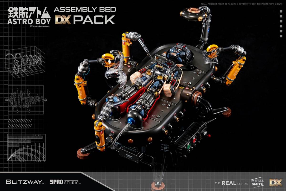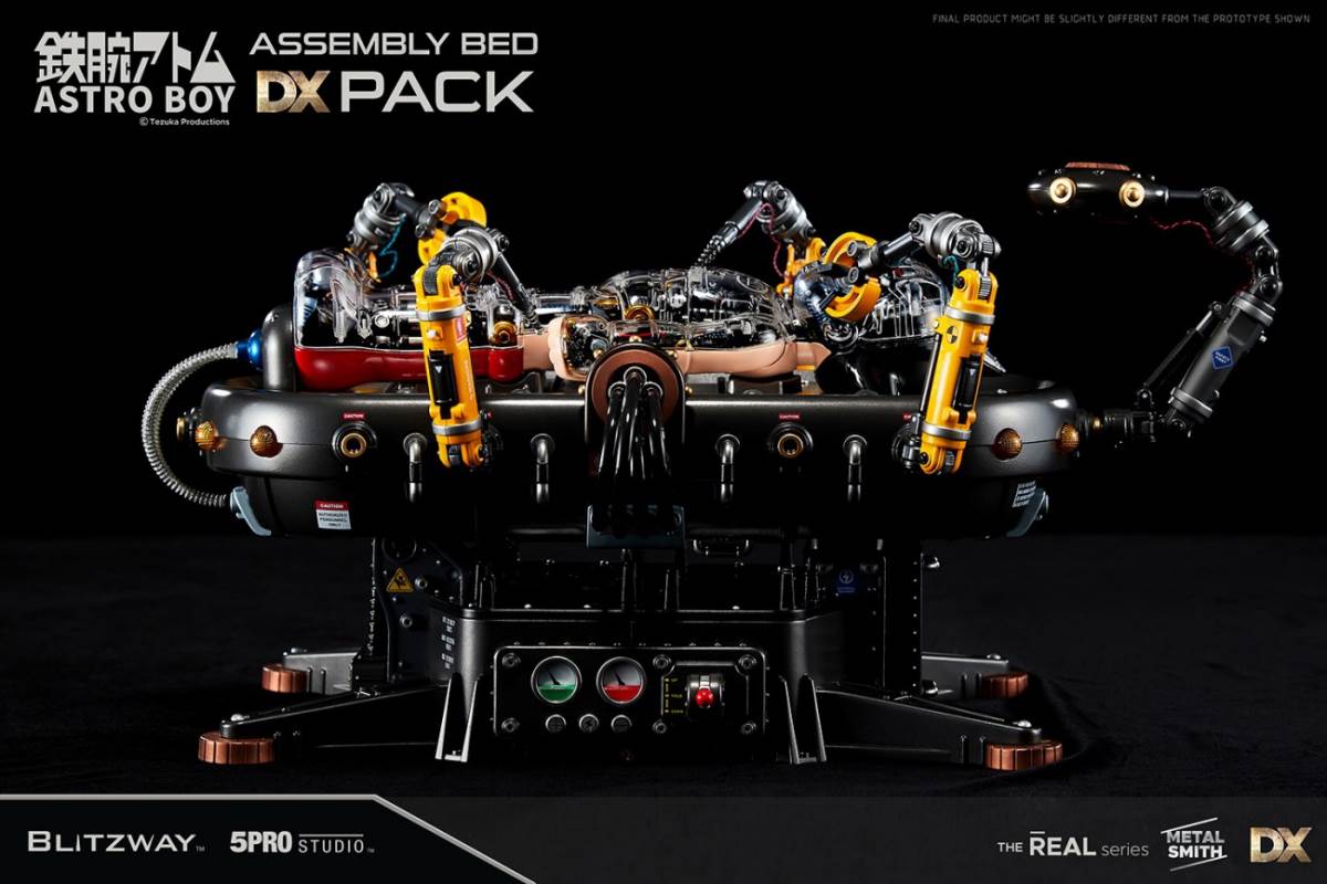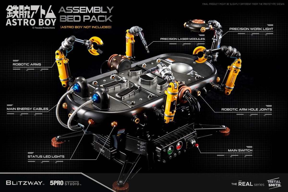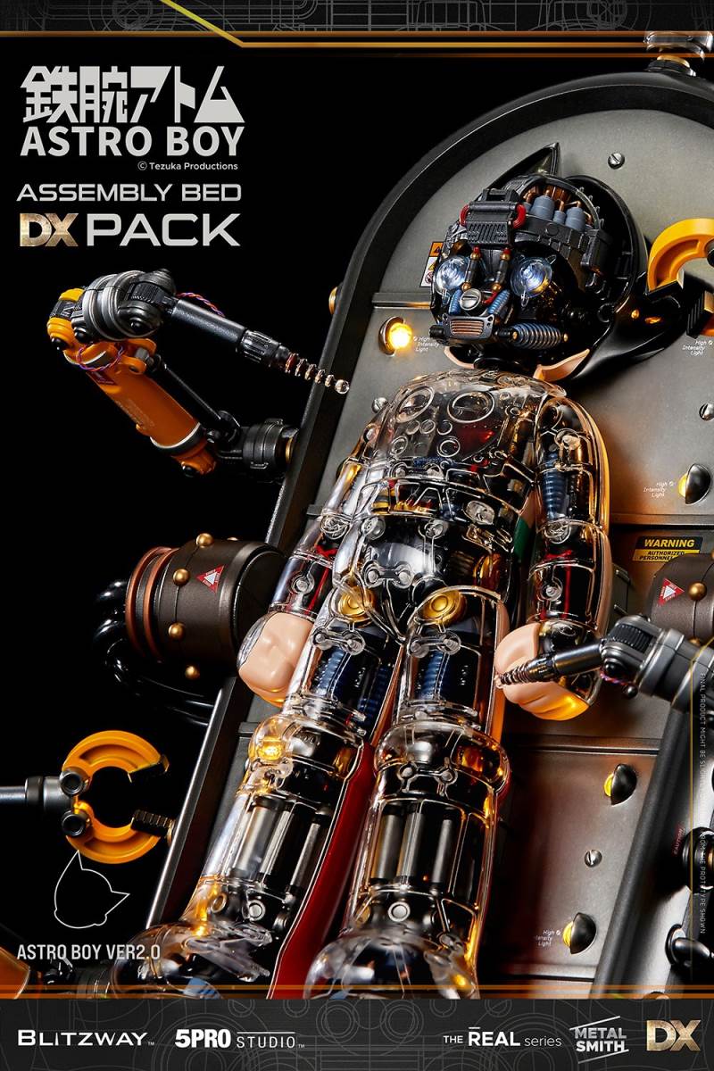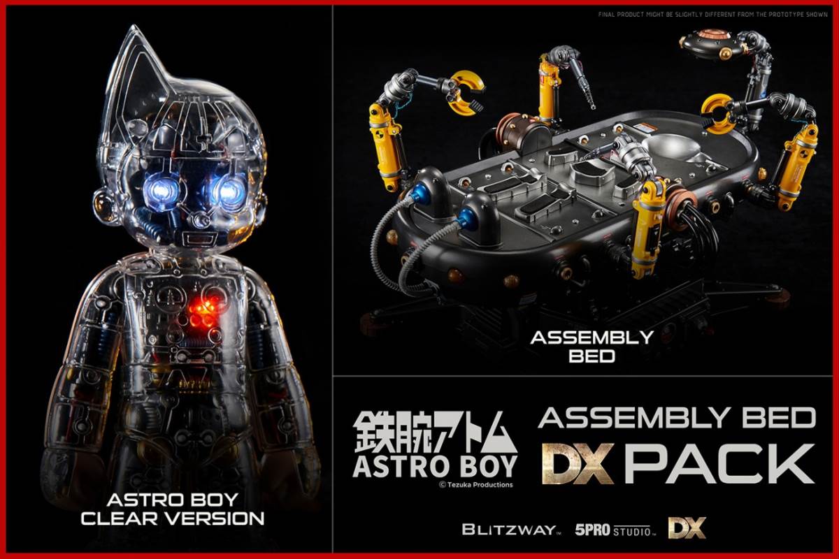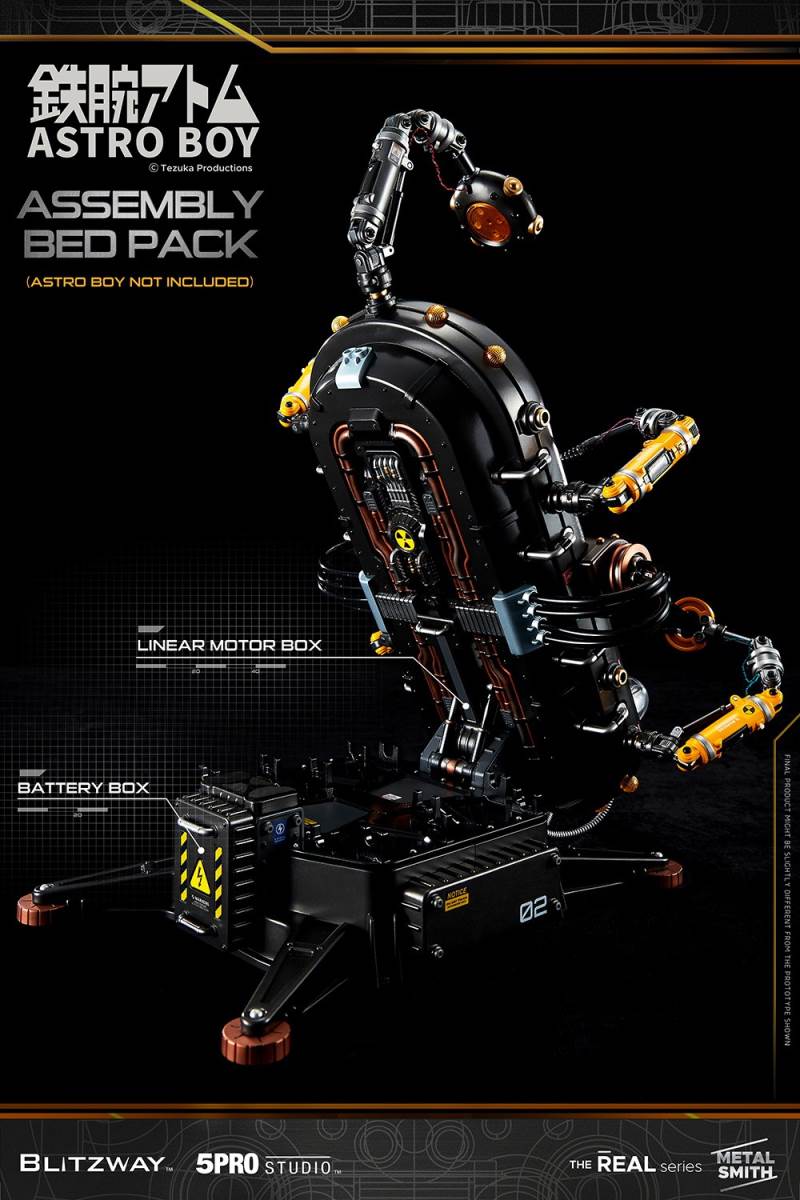 Product InformationLicense : Astro BoyLicensor : Tezuka ProductionsProduct No. : BW-NS-50201Product Type : Superb Anime Statue (Non scale)Product Size : H 300mm W 110mmProduct Weight : Approx. 4kg (including Package)Dimension (Shipping Box) : Approx. W 340mm x L 155mm x H 585mm(Carton) : Approx. W 690mm x L 595mm x H 330mm (4pcs/1carton)(Dimension and weight could be changed later.)Release : 2Q, 2021Price : 329 USDUPC : 8809321479401Limited Edition : TBDDescriptionThe buzzing sound of electronic equipment fills the lab. The rapid moving robotic arms are elaborately assemblingbody parts of a robot.Along the line, the precision laser module neatly welds the individual body parts into a whole.On a cold metal bed, Astro Boy’s heart starts beating warmly.Here’s the second version of Blitzway Astro Boy, which was once praised for its cute appearance and intricatemechanical details.The new Astro Boy has a transparent cover all over his body so that the captivating curved silhouette and inner detailcan be appreciated.Also, the previous metal cover for used to cover half of Astro Boy can be combined with the other transparent half.The glaring lights and the assembly bed that inherited the DX base, which enabled the storage space for all the looseparts, also come with their own surprising features.Two robotic arms and two precision laser modules display a realistic scene as if they are in the middle of the assemblyline.The linear motor module inside the assembly bed can make Astro Boy slowly stand up.Through the main power cables, you can display Astro Boy the state of charging.The inspiring moment of the birth of Astro Boy, we hope that the feeling is conveyed through this product presented byFeatures[BW-NS 50201] Astro Boy Clear ver. Pack - Superb Anime Statue (Non scale)Highly detailed likeness of Astro Boy from the original comics.Upper and lower moving neck, rotating wrist.Front removable and full body or half body replaceable exterior parts.Rear exterior parts are alloy metal parts.Front of exterior parts are clear PC parts.5 LEDs light-up functions on the Astro Boy.Accessories1 Clear face part1 Clear half face part1 Clear chest part1 Clear half chest part1 Pair of clear arm cover parts3 Pairs of hands (fist hands, open hands, machine hands)1 Clear pants part1 Clear half pants part1 Pair of clear leg cover parts1 Pair of clear shoes parts1 Display stand1 Separation lever1 Astro Boy instruction manual★ Production details might be subject to change without any prior notice.★ Prototype shown, final product may be slightly different.★ 3 of mercury cell batteries (LR41) required in the Astro Boy.Spec.1. Face, Hand : PVC, Transparent PC2. Body : ABS, Metal, POM, Transparent PC3. Base : ABS4. Equipment : LED5. Package : Color Box + StyrofoamCreatorsProducer : Won Choi, SungWoong BaePlanner : SungWoong BaeExecutive Director : K KwonMarketing : Won ChoiSenior Director : Typhoon KimProduction Management : K KwonDirector: RainmanPlanning Supervisor: Kon Kuk KimArt Supervisor: Kwangse OhDesign & 3D works : Kon Kuk Kim, Yoon jangPaint : Kwangse Oh, Habin Wang, reFe YoonAssistant manager : Eric Lee, XiaoFu Liang, Lang XuPhotographer : Shingiru StudioEditor of Photography : Changkyu Kim, Zhou HaiPackage Design : Yoon Jang, Zhou HaiThe Blitzway Design & Development TeamManufactured by : BLITZWAY CO., LTD.