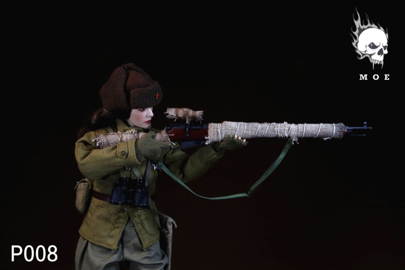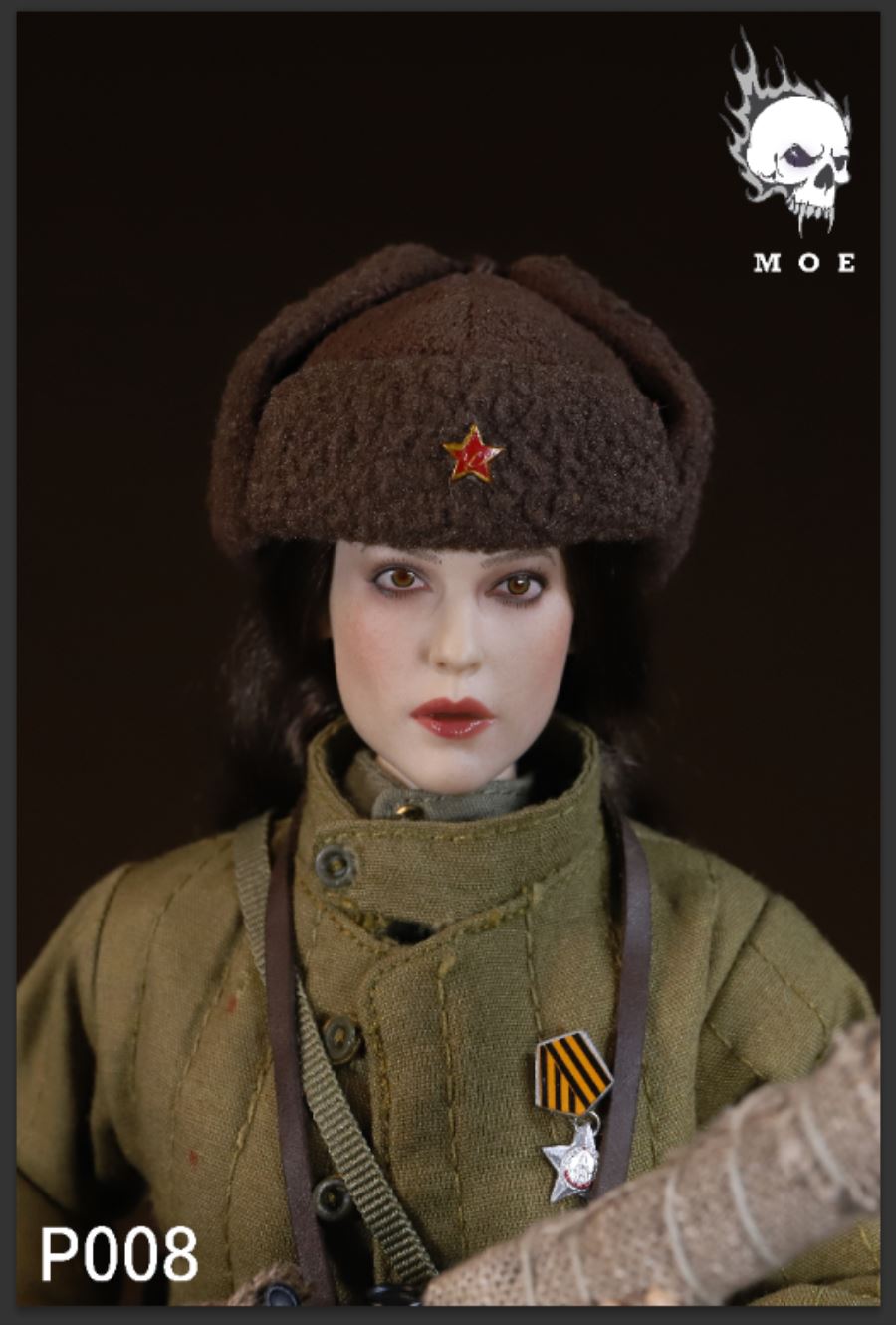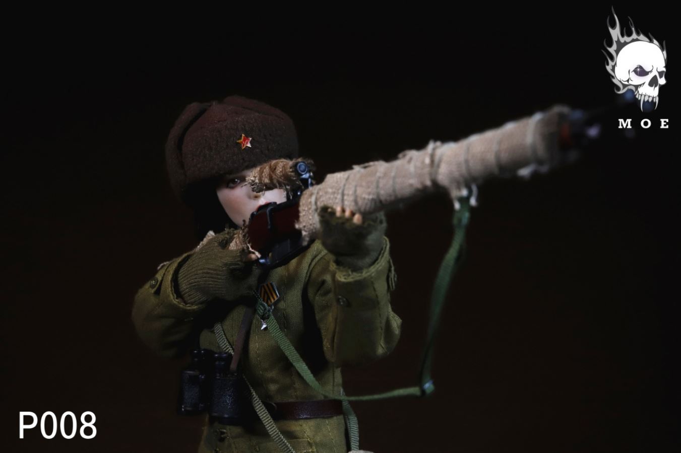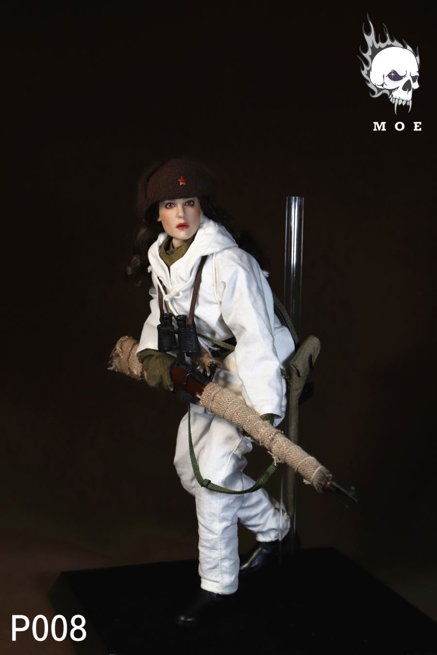 MOETOYS Female sniper with snow camouflage in the Soviet Union P008 Cut-off date: November 20, 2020 Shipment date:First quarter of 2021MOETOYS Female sniper with snow camouflage in the Soviet Union P008Cut-off date: November 20, 2020 Shipment date: The first quarter of 2021P008 Product List P008 Product LiHair Planting Head Carving 1 head carving*1Female body 1 Female model*1Hand type 7 bare hands*7Boat cap 1 Forage Cap *1 Cotton hat 1 Cotton hat*1Uniform top 1 Soviet Uniform coat *1Uniform pants 1 Soviet Uniform trousers *1Cotton jacket 1 Cotton jacket*1 Snow camouflage top*1Snow camouflage pants 1 Snow camouflage pants*1Half gloves*1Snow camouflage gloves*1 Snow camouflage gloves*1Leather belt 1 leather belt *1Leather boots 1 Real leather boots*1kettle+bag 1 kettle+bag * 1Periscope + bag 1 Periscope + bagtelescope 1 Telescope*1medal 1 medal*1black stand 1 Black figure stand*1Mosin-Nagant sniper rifle+Camouflage cloth*1 (Metal + wood)