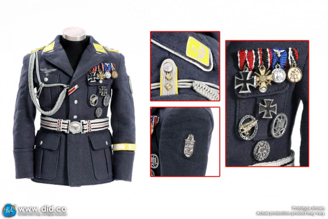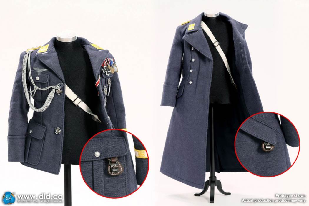 ผลิตภัณฑ์ใหม่ที่ DID นำเสนอในครั้งนี้คือกัปตันของ Luftwaffe of World War II รูปปั้นศีรษะที่มีดวงตาที่แน่วแน่สงบนิ่งด้วยการแสดงออกที่เย้ยหยันทำให้ตัวละครมีความหนักแน่นและฉลาด ในแง่ของเสื้อผ้ารุ่นนี้มาพร้อมกับชุดราตรีและกางเกงขายาวหมวกปีกใหญ่สีน้ำเงินเครื่องแบบและกางเกงสีเทา - น้ำเงินของกองทัพอากาศเยอรมันเสื้อคลุมสีเทา - ฟ้าเสื้อเชิ้ตสีฟ้าอ่อนและเสื้อเชิ้ตสีขาว เสื้อผ้าแต่ละสไตล์มีลักษณะเฉพาะของตัวเองวัสดุผ้านุ่มและวัสดุที่ไม่เหมือนใครนอกจากนี้ยังมาพร้อมกับรองเท้าบูทหนังสีดำคู่หนึ่งและรองเท้าบูทหนังสีดำพร้อมใบเรือ เสื้อผ้ามีความหลากหลายมากและผู้เล่นสามารถสลับเครื่องแต่งกายต่างๆได้ สถานการณ์ต่างๆ