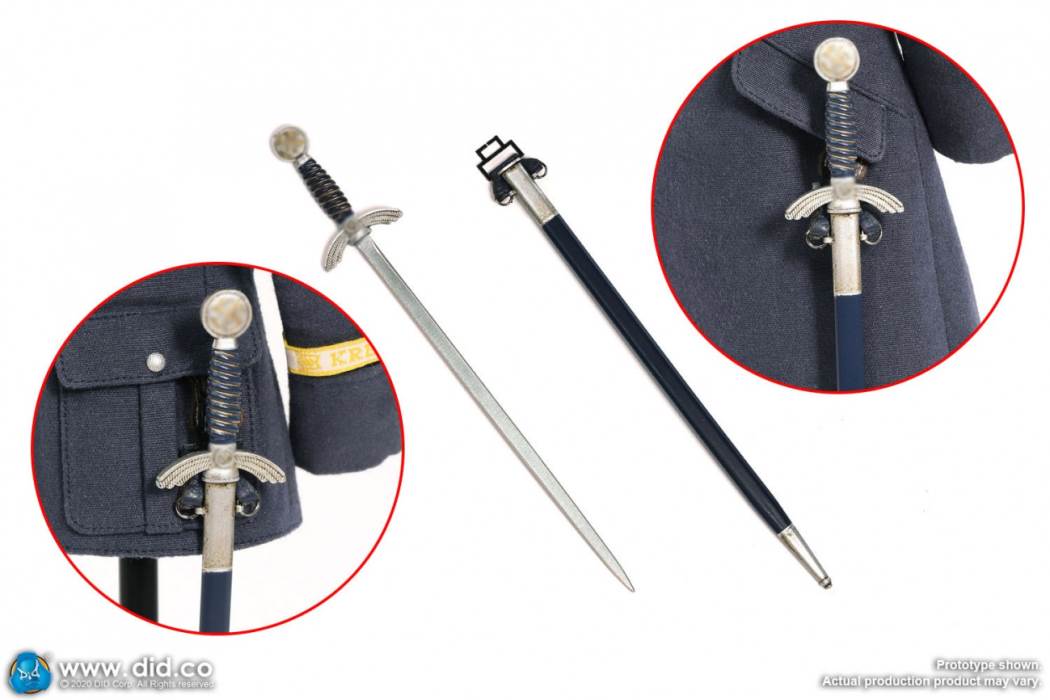 อาวุธดังกล่าวมาพร้อมกับกัปตันทหารอากาศและปลอกดาบดาบปลายแหลมที่ร้ายแรงและปืนพก P38 และซองหนังสีน้ำตาล การรวมกันของทั้งสองจะยิ่งแสดงให้เห็นถึงความสง่างามและอำนาจของกัปตันกองทัพอากาศอำนาจอื่นไม่สามารถแทนที่ได้โดยผู้อื่น