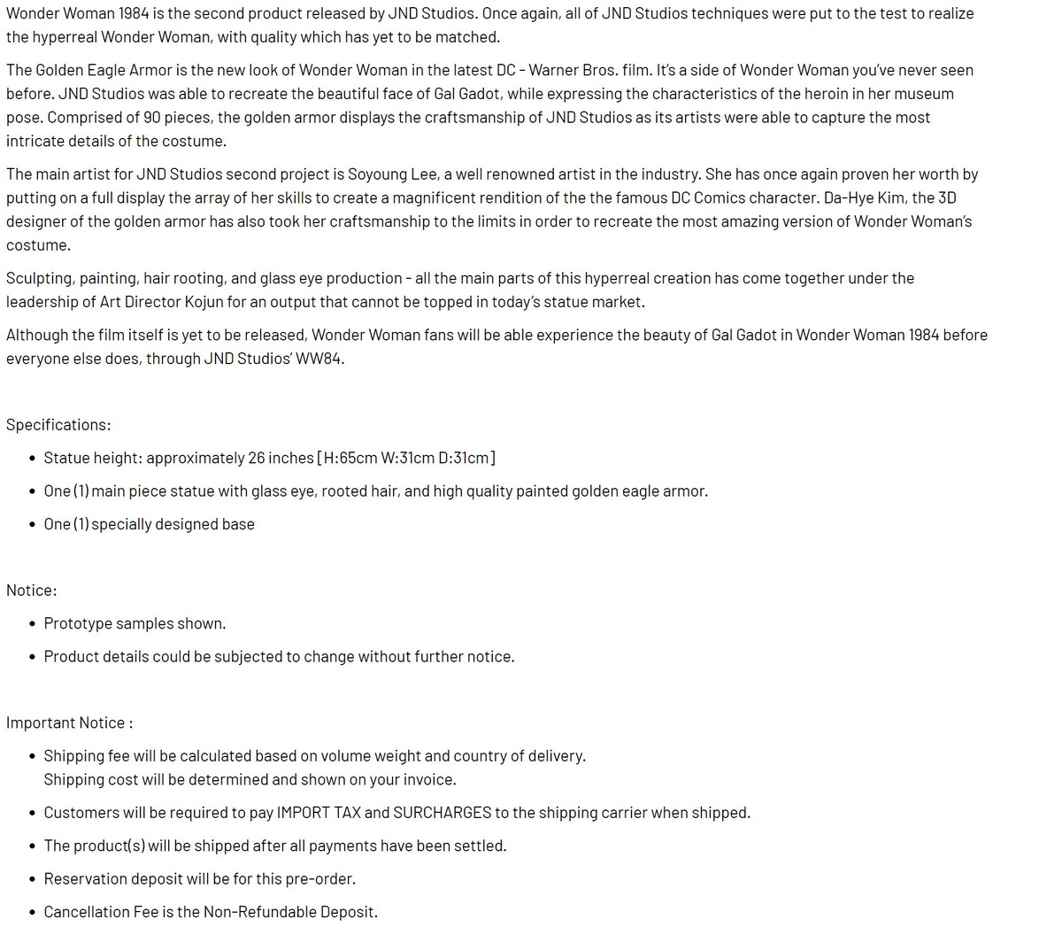 Wonder Woman 1984 - Golden Eagle Battlegear Wonder Woman 1/3 Scale Statue (JND Studios)