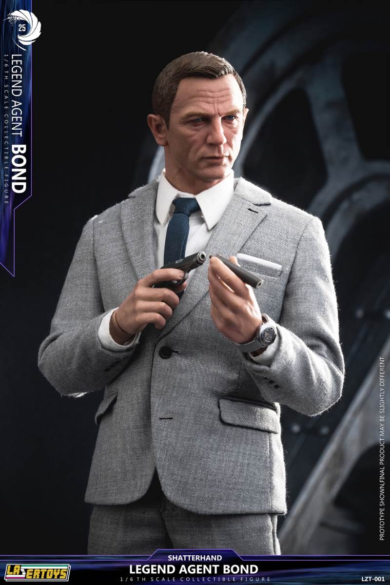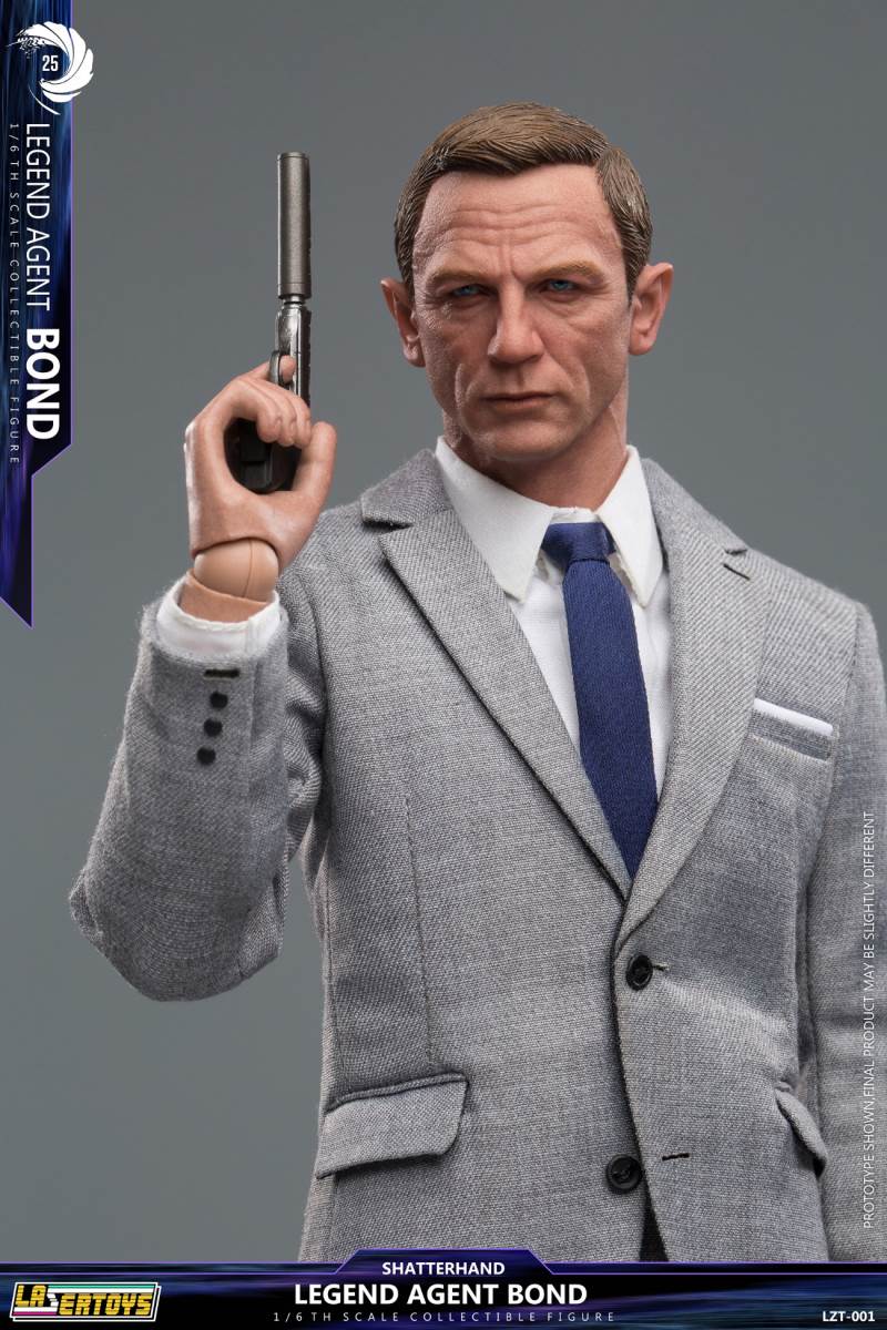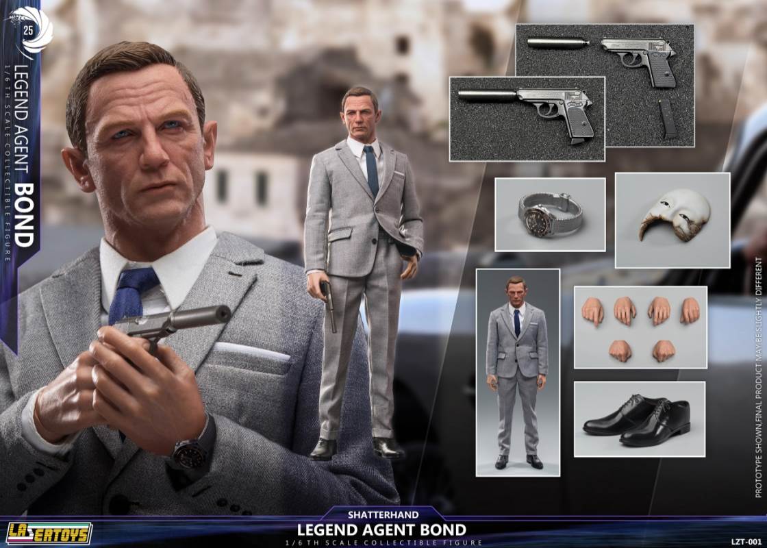 LAZERTOYS's first 1/6 scale collection doll product: Legend Agent Bond is officially released-------------------------------------------------------------------------------LAZER TOYSModel: LZT-001Ratio: 1/6 Product name: Legend Agent BondProduct List:Doll:1 x simulation head sculpture1 x 1/6 ratio highly movable male body6 x hands-1 pair of relaxing hands-1 pair of fist-shaped hands-1 gun shooter-1 holding handClothing :1 x suit jacket1 x suit pants1 x shirt1 x tie1 x pocket square1 x leather shoesWeapons :1 x Fine PPK automatic pistol1 x adapted silencerAccessories:1 x Exquisite Omega Omega Seamaster 300 Watch1 x Battle Damage Mask