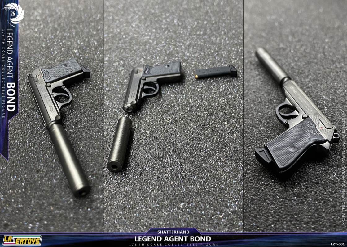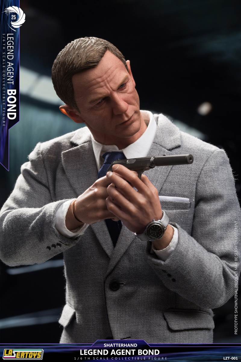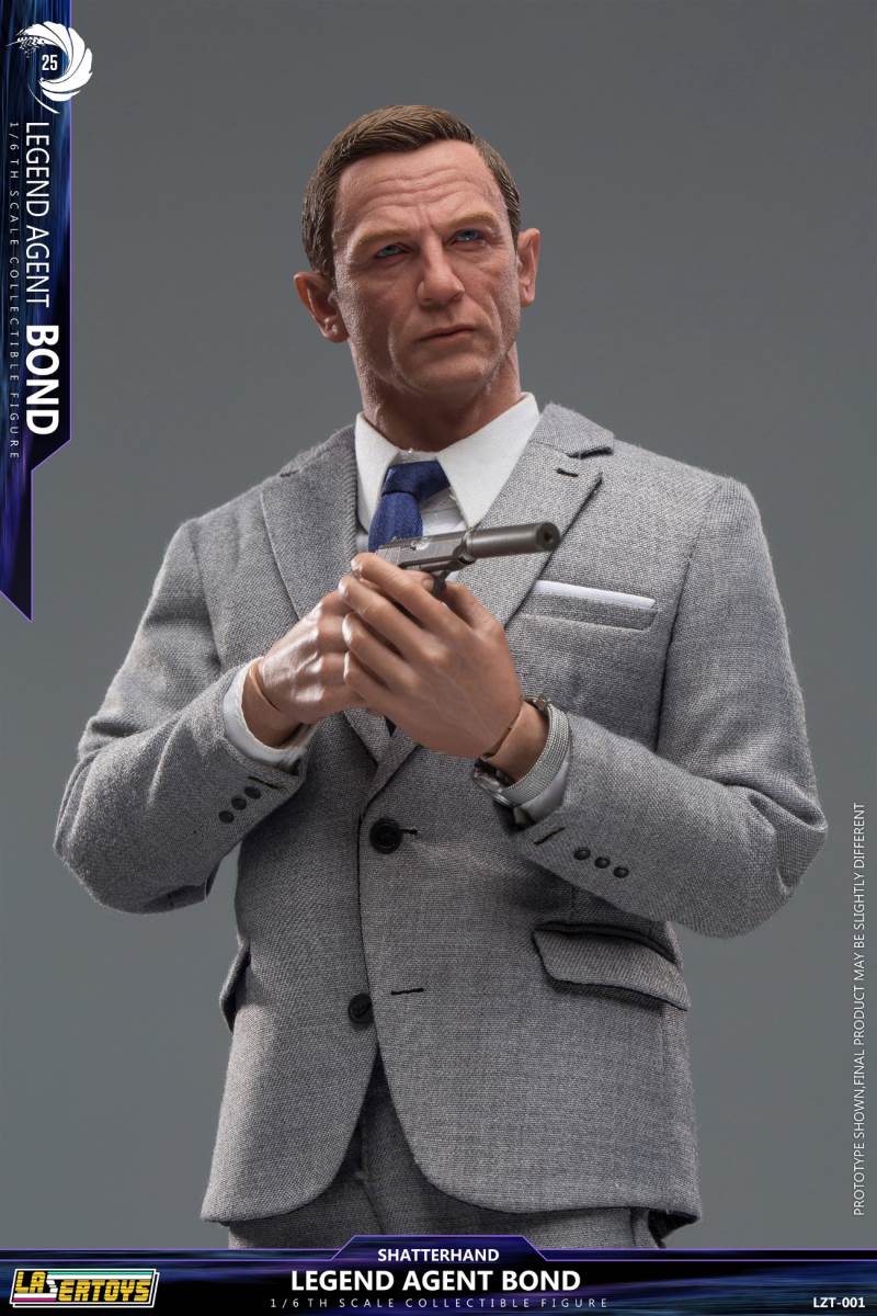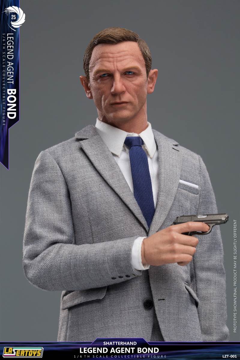LAZERTOYS's first 1/6 scale collection doll product: Legend Agent Bond is officially released-------------------------------------------------------------------------------LAZER TOYSModel: LZT-001Ratio: 1/6 Product name: Legend Agent BondProduct List:Doll:1 x simulation head sculpture1 x 1/6 ratio highly movable male body6 x hands-1 pair of relaxing hands-1 pair of fist-shaped hands-1 gun shooter-1 holding handClothing :1 x suit jacket1 x suit pants1 x shirt1 x tie1 x pocket square1 x leather shoesWeapons :1 x Fine PPK automatic pistol1 x adapted silencerAccessories:1 x Exquisite Omega Omega Seamaster 300 Watch1 x Battle Damage Mask