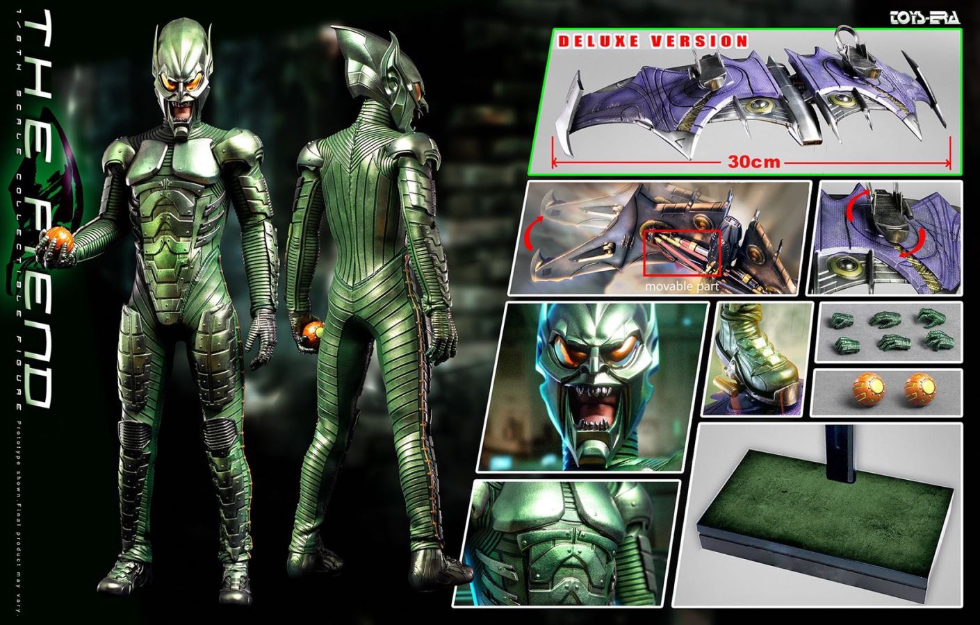 A (Deluxe Version)head sculpt and body accessories:★ 1 Highly detailed Helmet Head sculpt★ 1/6 Scale figure body★ Hands x 6 pieceCostume:★ Flexible metallic colour Armor suitOther accessories:★Grenade X2★Figure Stand★HoverboardB (Normal Version)Edition Head sculpt and body accessories:★ 1 Highly detailed Helmet Head sculpt★ 1/6 Scale figure body★ Hands x 6 pieceCostume:★ Flexible metallic colour Armor suitOther accessories:★ Grenade X2★ Figure Stand