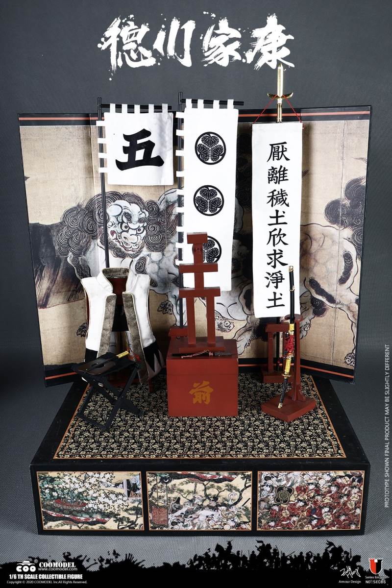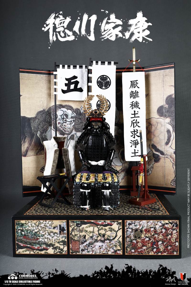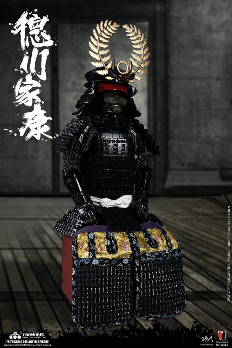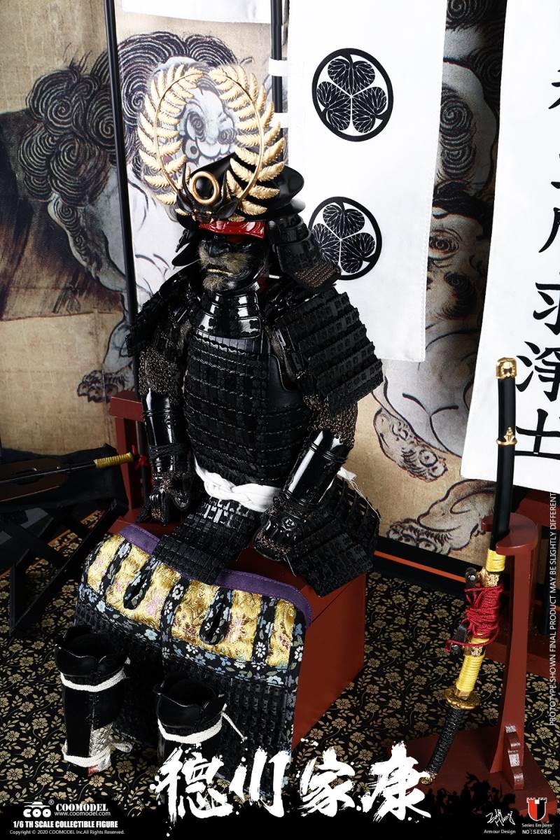 COOMODEL SE086 1/6 SERIES OF EMPIRES (DIECAST ALLOY) - SHOGUN TOKUGAWA IEYASU (EXCLUSIVE VERSION)BARCODE:6971242121249- The whole suit of armor is built of manually-attched clips, 100% alloy-made- Edges of swords are made of stainless steel- Pictures are based on prototypes, may have little differences from actual products, hope which could be acceptableThe 1/6th scale Tokugawa Ieyasu Collectible Figure specially features:- One (1) realistic head sculpture of Tokugawa Ieyasu- One (1) super action body- Six (6) Pieces of Interchangeable PalmsCostumes:- One (1) white shirt- One (1) red robe- One (1) black band- One (1) pair of brown trousers- One (1) white war vestArmors:- One (1) black helmet with fern leaves decoration- One (1) black tiger mask- One (1) black neck armor- One (1) red chest-back armor- One (1) pair of black shoulder armors- One (1) pair of brown full-arm armors- One (1) white armor tie- One (1) black waist armor- One (1) pair of black and yellow thigh armors- One (1) pair of red shank armors- One (1) pair of war shoesWeapons:- One (1) katana (long sword) with black scabbard- One (1) wakizashi (short sword) with black scabbard- One (1) war fan- One (1) spearAccessories:- One (1) black figure stand- One (1) armor stand- One (1) armor box- One (1) costume stand- One (1) campstool- One (1) Buddism flag- One (1) hollyhock flag- One (1) kanji five flag- Three (3) flag stands- One (1) katana stand- One (1) display stage- One (1) display screen