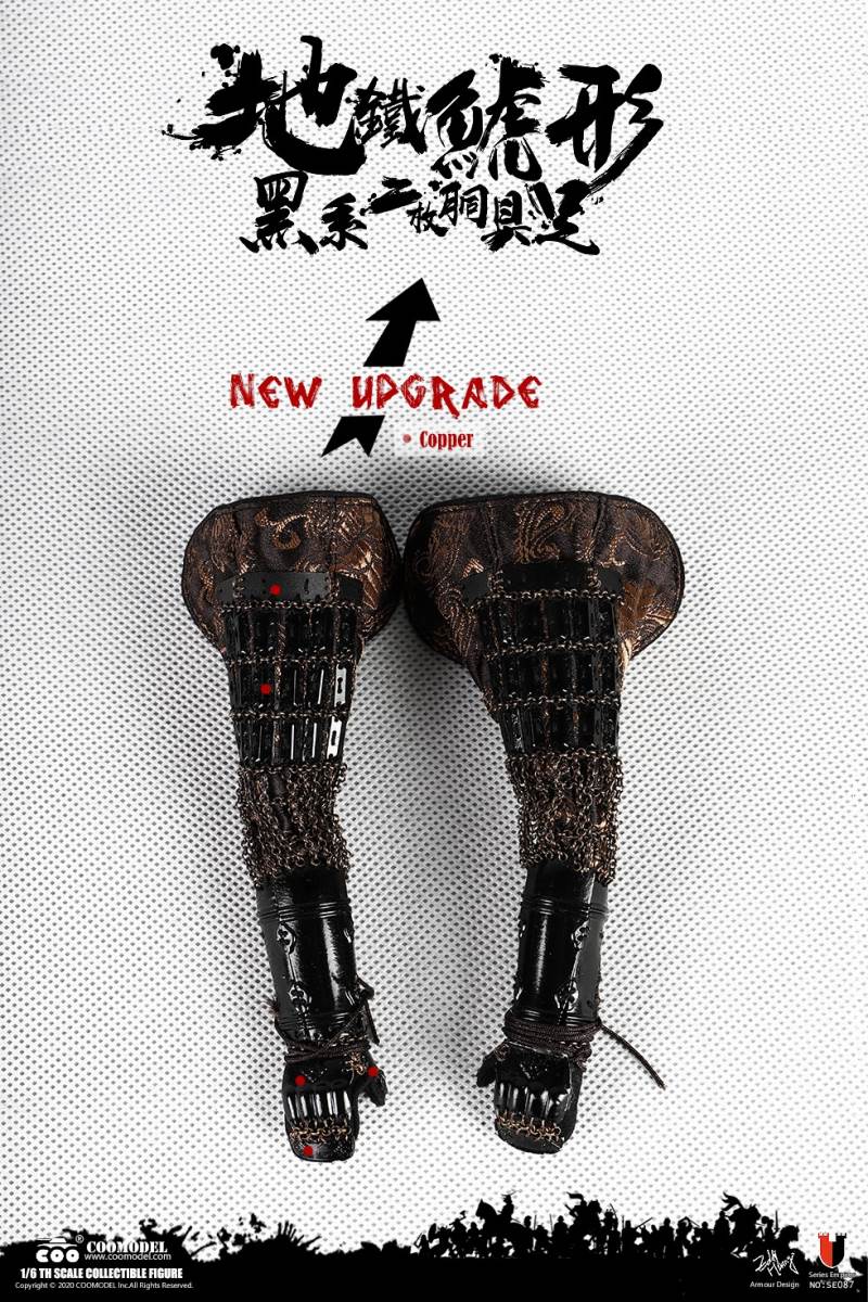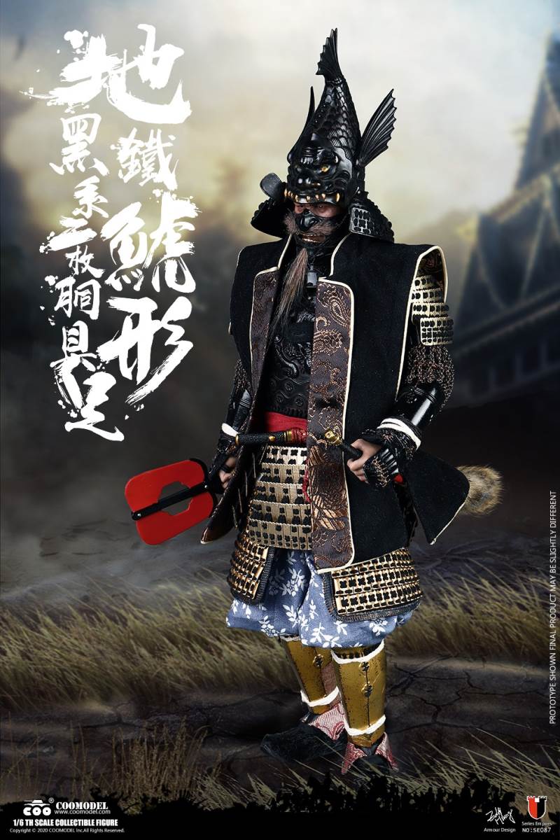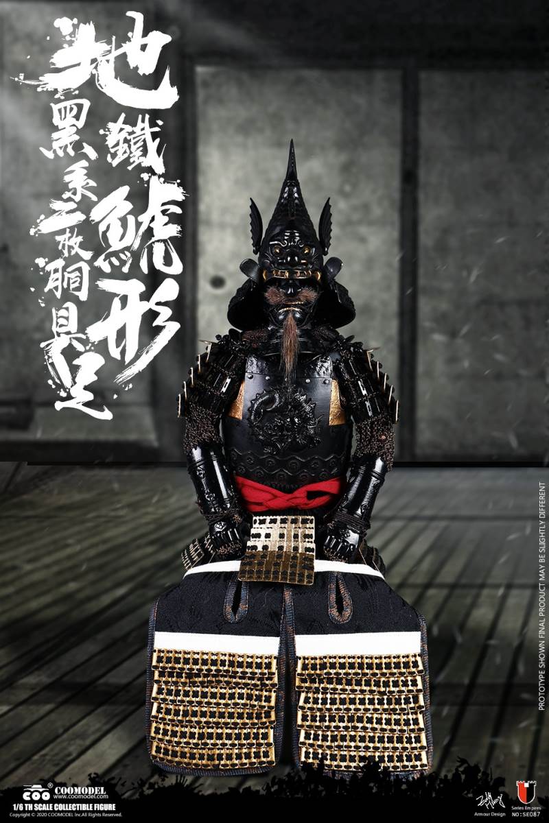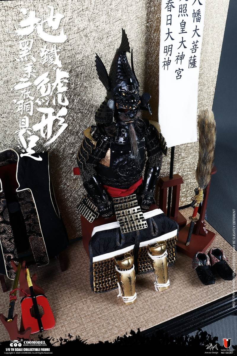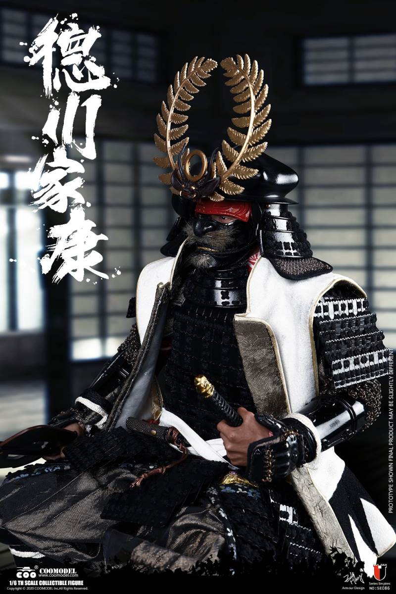 COOMODEL SE086 1/6 SERIES OF EMPIRES (DIECAST ALLOY) - SHOGUN TOKUGAWA IEYASU (EXCLUSIVE VERSION)BARCODE:6971242121249- The whole suit of armor is built of manually-attched clips, 100% alloy-made- Edges of swords are made of stainless steel- Pictures are based on prototypes, may have little differences from actual products, hope which could be acceptableThe 1/6th scale Tokugawa Ieyasu Collectible Figure specially features:- One (1) realistic head sculpture of Tokugawa Ieyasu- One (1) super action body- Six (6) Pieces of Interchangeable PalmsCostumes:- One (1) white shirt- One (1) red robe- One (1) black band- One (1) pair of brown trousers- One (1) white war vestArmors:- One (1) black helmet with fern leaves decoration- One (1) black tiger mask- One (1) black neck armor- One (1) red chest-back armor- One (1) pair of black shoulder armors- One (1) pair of brown full-arm armors- One (1) white armor tie- One (1) black waist armor- One (1) pair of black and yellow thigh armors- One (1) pair of red shank armors- One (1) pair of war shoesWeapons:- One (1) katana (long sword) with black scabbard- One (1) wakizashi (short sword) with black scabbard- One (1) war fan- One (1) spearAccessories:- One (1) black figure stand- One (1) armor stand- One (1) armor box- One (1) costume stand- One (1) campstool- One (1) Buddism flag- One (1) hollyhock flag- One (1) kanji five flag- Three (3) flag stands- One (1) katana stand- One (1) display stage- One (1) display screen