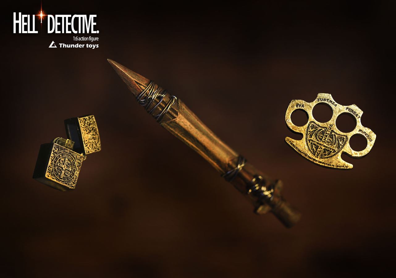 Thundertoys 1/6 Guidance Action Figure(#TD2020A/B)#TD2020A:Head * 1Body * 1Shirt * 1Tie * 1Pants * 1Wind coat * 1Leather shoes * 1Socks * 1Hand shape * 3Cigarette * 3Cigarette case * 1Screaming Beetle *1The bible * 1Brass knuckles (metal) *1Spear of Destiny (metal) *1Lighter (removable metal) *1Watch * 1Dragon Lance (metal) *1