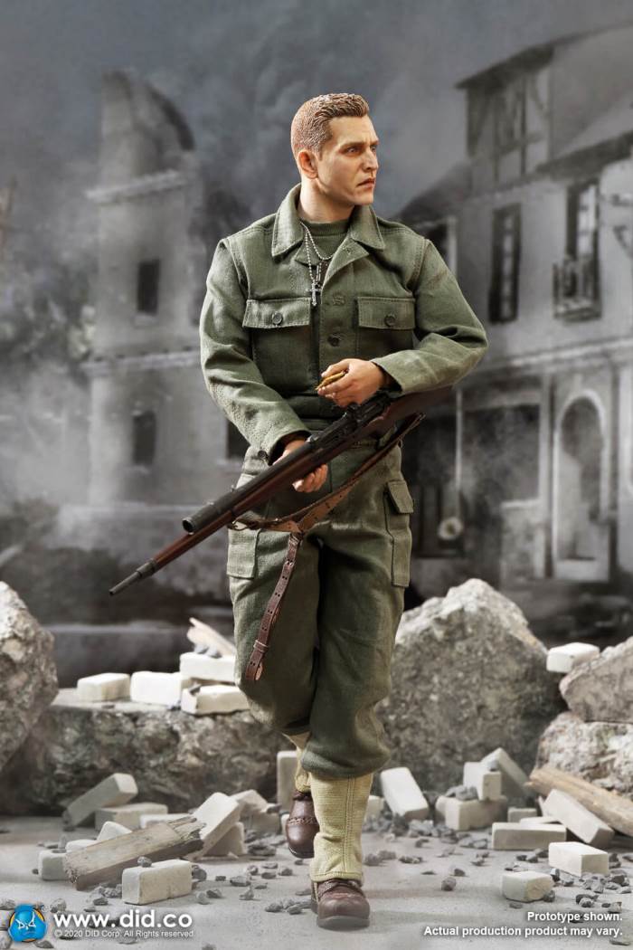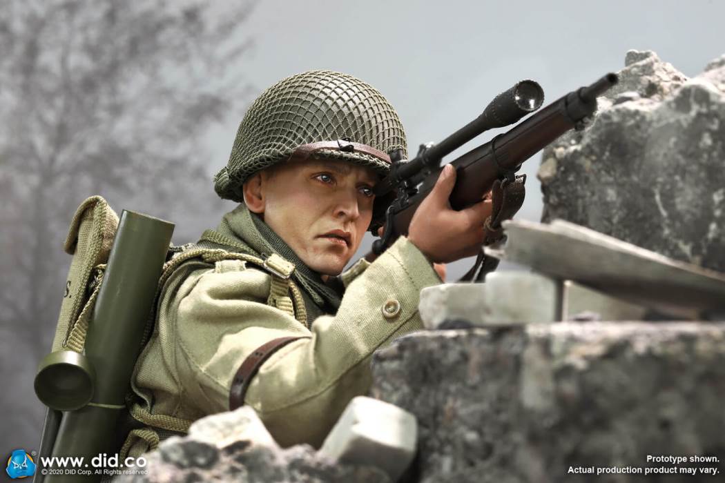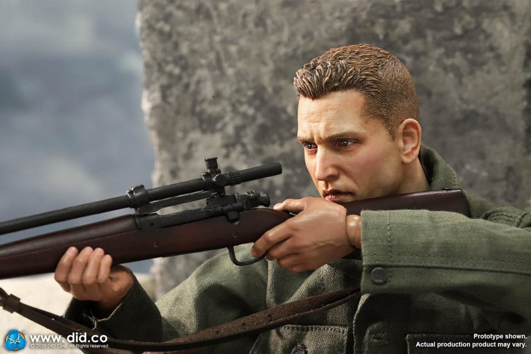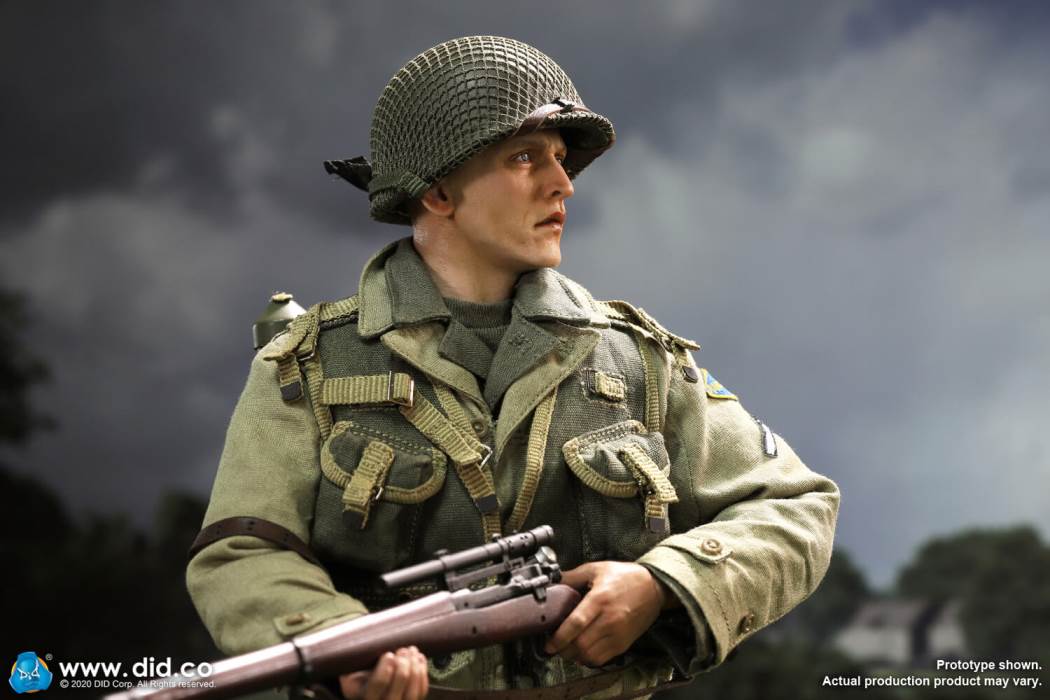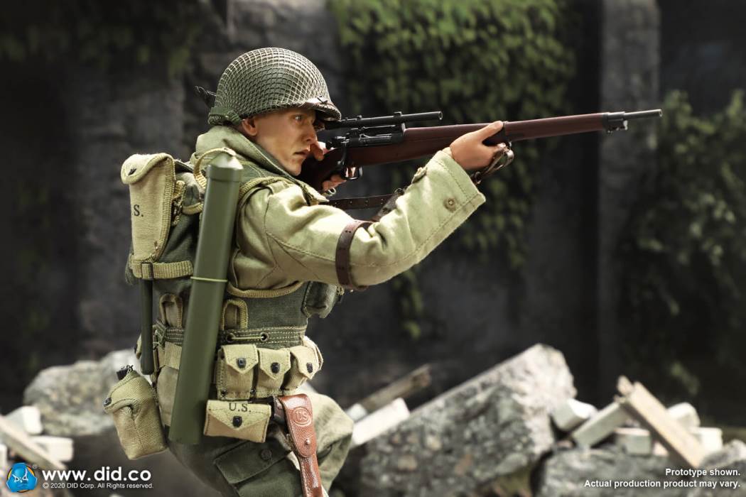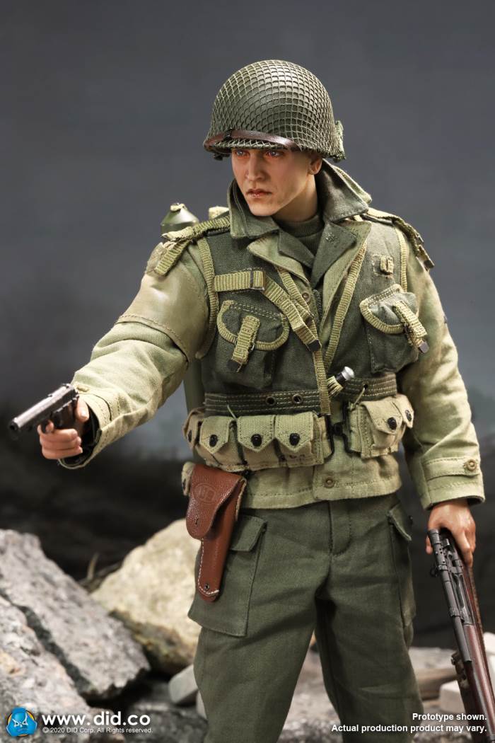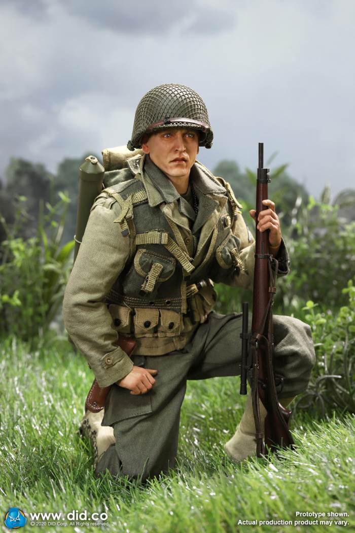 A80144 WWII US 2nd Ranger Battalion Series 4 Private JacksonFull Part ListBase:1 Super realistic headsculpt2 Body3 Open palms4 Relax palms5 Palms for holding gun (special for left-handed sniper)Outfits6 M1 Helmet with inner liner7 Ranger assault vest8 M41 Field jacket9 HBT uniform10 HBT pants11 Green T-shirt12 Gas detection brassard13 Belt14 Leggings15 BootsAccessories16 Sniper Rifle scope X 2 with carrier17 M1910 Canteen with chain and cover18 Canteen cup19 M1942 First aid pouch20 M1943 Entrenching tool with carrier21 M1911 real leather holster22 6-pocket bandoleer23 10-Pocket Cartridge Pouch24 US Army Cross Pendant25 Dog Tag X 226 DID buttonhookWeapon27 M1903A4 Sniper Rifle with magazine X 128 M1911 pistol with magazine clip29 Dagger with SheathInsignia30 Ranger qualification badge31 Private first class rank badge x 2