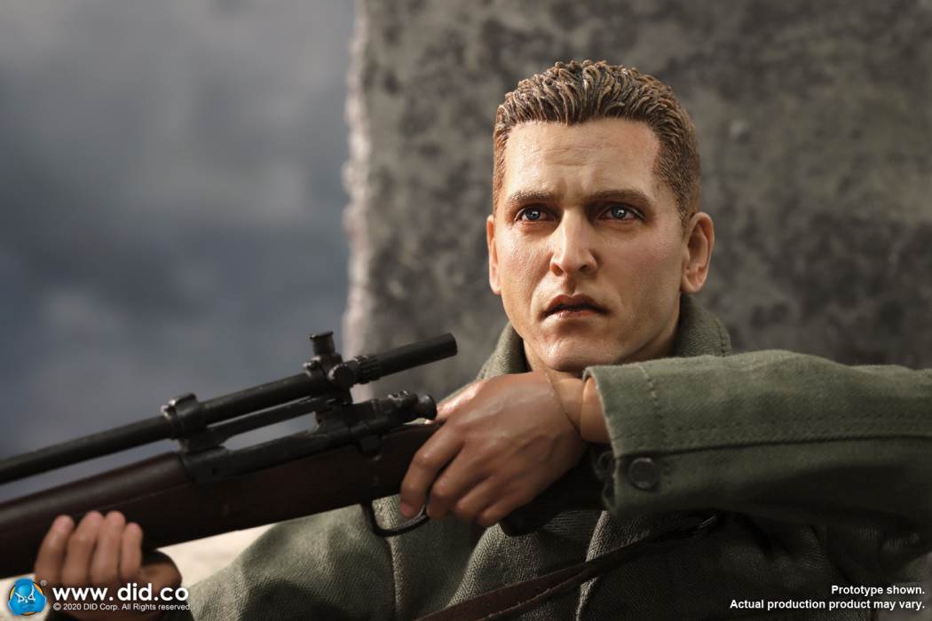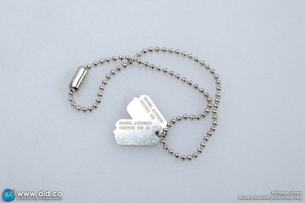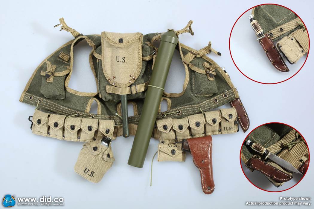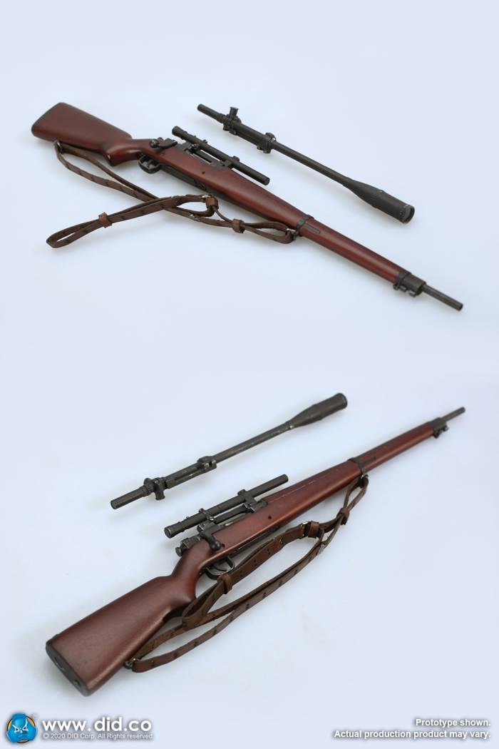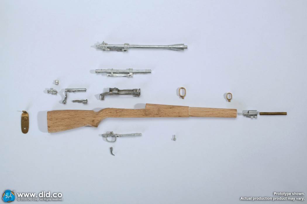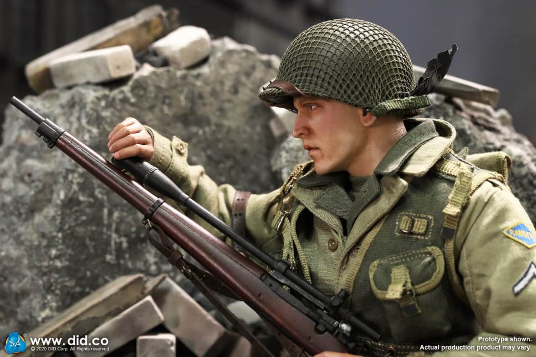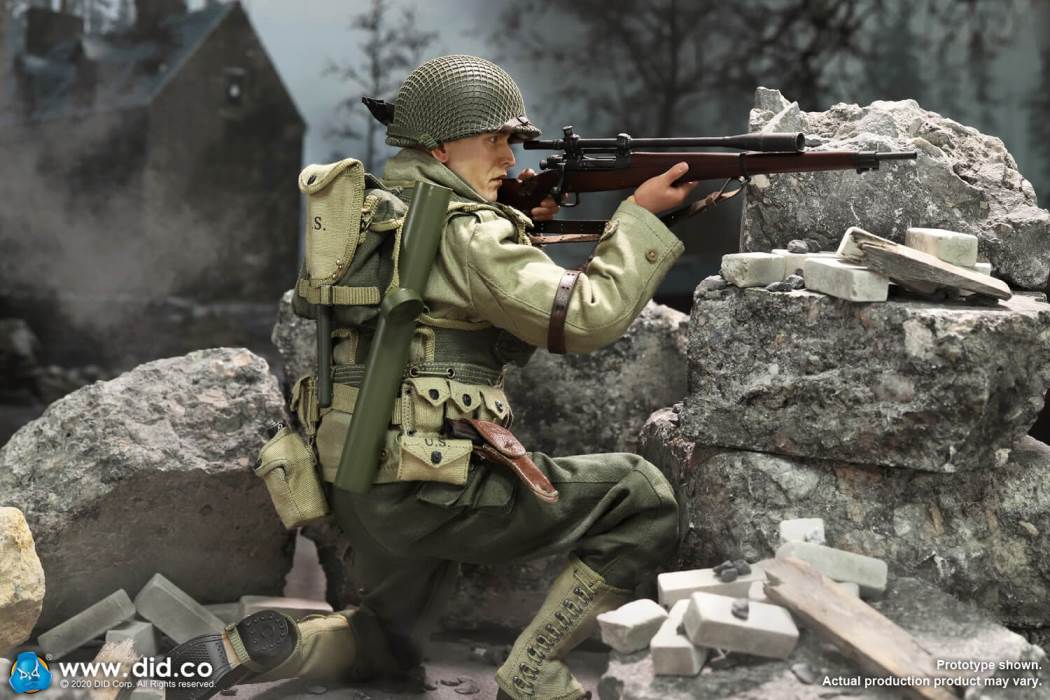 A80144 WWII US 2nd Ranger Battalion Series 4 Private JacksonFull Part ListBase:1 Super realistic headsculpt2 Body3 Open palms4 Relax palms5 Palms for holding gun (special for left-handed sniper)Outfits6 M1 Helmet with inner liner7 Ranger assault vest8 M41 Field jacket9 HBT uniform10 HBT pants11 Green T-shirt12 Gas detection brassard13 Belt14 Leggings15 BootsAccessories16 Sniper Rifle scope X 2 with carrier17 M1910 Canteen with chain and cover18 Canteen cup19 M1942 First aid pouch20 M1943 Entrenching tool with carrier21 M1911 real leather holster22 6-pocket bandoleer23 10-Pocket Cartridge Pouch24 US Army Cross Pendant25 Dog Tag X 226 DID buttonhookWeapon27 M1903A4 Sniper Rifle with magazine X 128 M1911 pistol with magazine clip29 Dagger with SheathInsignia30 Ranger qualification badge31 Private first class rank badge x 2