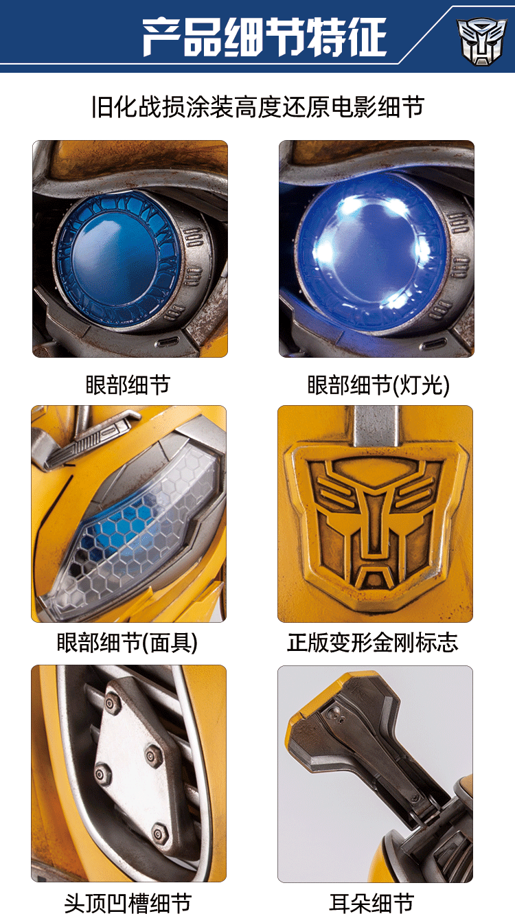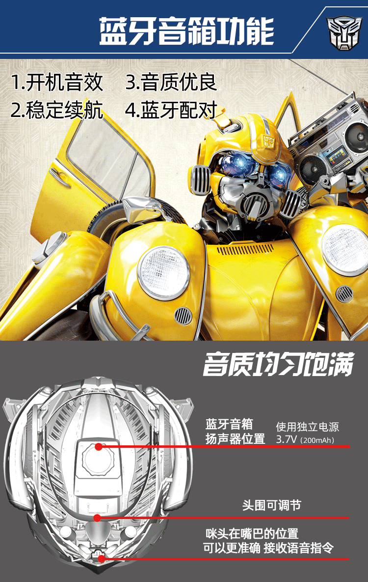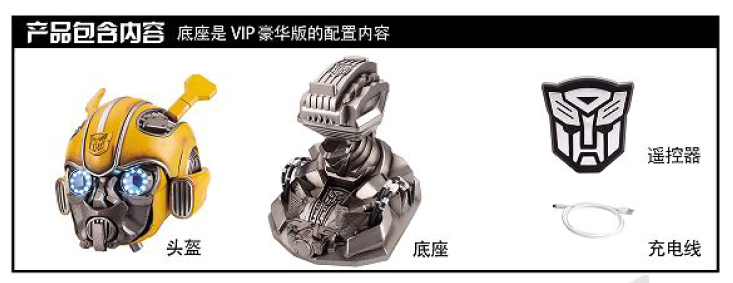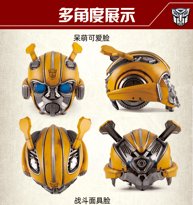 Killerbody Hornet wearable helmet (with speakers) Deluxe EditionProduct Name: Transformers Bumblebee helmet with a wearable speakerChinese Voice Control + 2.4G remote control mask controls the switching fightingDeluxe Edition (with base)NO: KB20069-13size:standard status size: 300 * 320 * 320mm, combat size: 320 * 320 * 320mm,a base size of about: 250 * 300 * 300mm, the overall size about (helmet even base): 250 * 300 * 360mmhead circumference size: 570mm-610mm (adjustable)helmet material: ABS, PC, PVC, metals, electronic componentsof the base material: ABS, silicone tube, heavy metal withthe product features:1 - wearable2- Chinese voice control3-2.4G remote control (Bo sent perspective remote mask flag)4- cool fighting switching mask5- mechanical deformation simulation sound6- eye LED lamp7- Bluetooth speaker (sound band power)8- wake on touch9- low voltage alarm10- old manual painting of battle damage, highly reducing details11- Exclusive large-mount configuration the mechanical wasp (manual painting of old)official price: 1880 yuan /pre-deposit: 600 yuan/pieceBox dimensions 35 * 34 * 38cmQTY 4Carton size 38 * 75 * 86cmpredetermined cut a single time 20 December 2020,the shipping time at the end of 2021 1