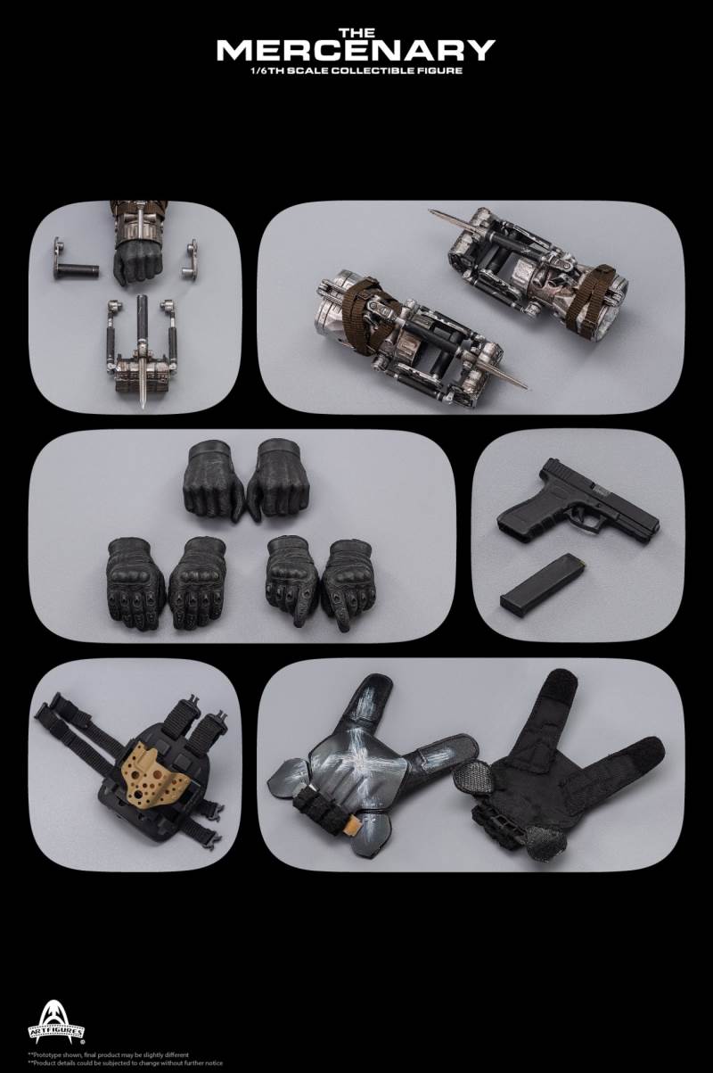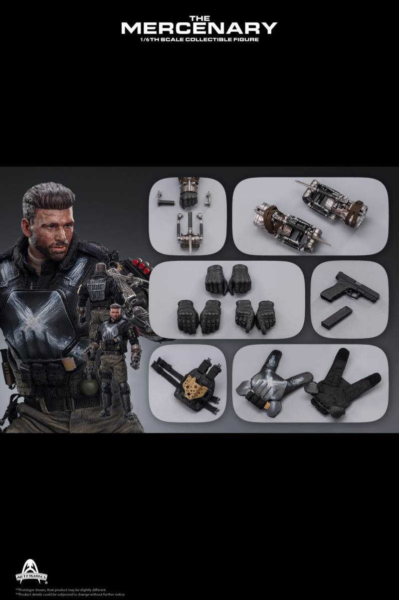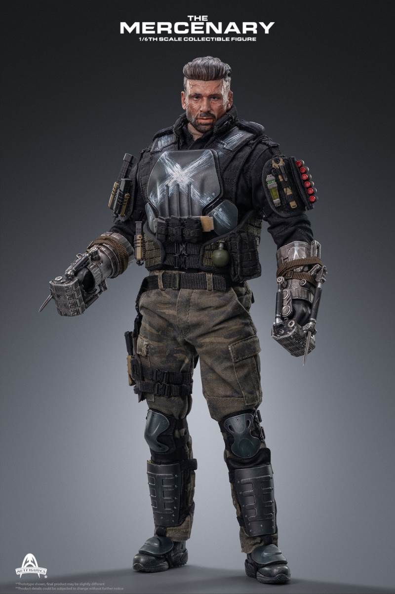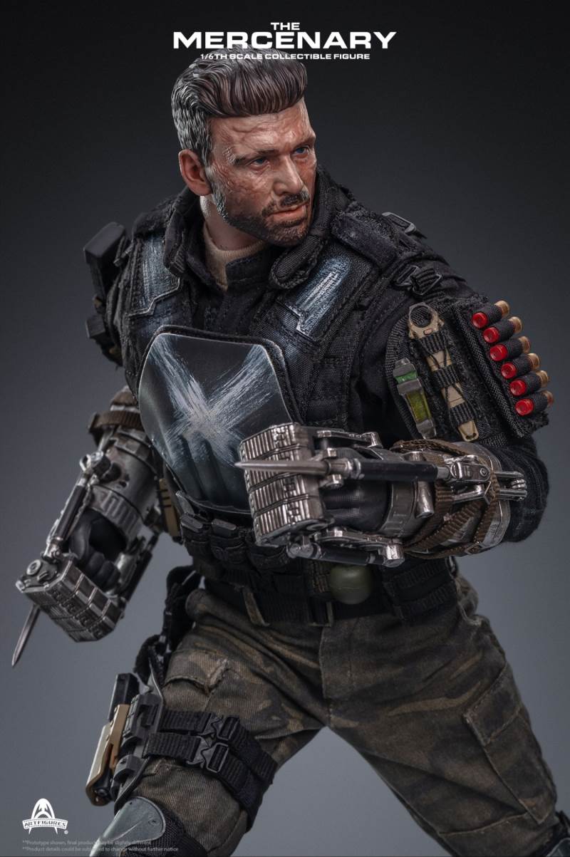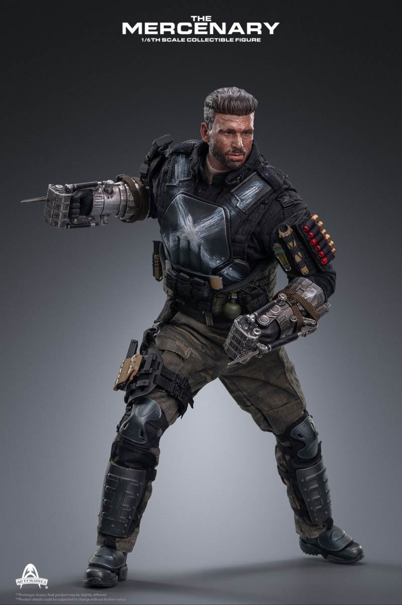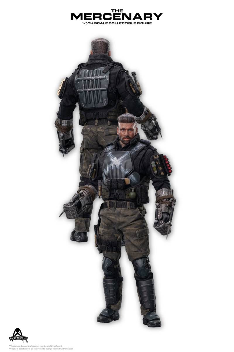 Product name: mercenaryProduct code: AF-026Product ratio: 1/6 ratioProduct status: for orderingFeatures of the 1/6th Mercenary Collectible Figure :1. Real and detailed modeling of the character in the movie2. Carefully create a new head sculpture with precise facial expressions and delicate skin texture3. The newly designed body has more than 30 joints, naturally depicting a muscular body in the movie 4. Approximately 33cm tall5. 6 interchangeable hands, including:A pair of hands holding forearm enhancement deviceA pair of gun glovesA pair of relaxed hands gloves handsClothing style :1. Apricot T-shirt2. Black combat uniform3. Reload bulletproof vest4. Full body protective armor and bulletproof vest5. Tabby camouflage combat pants6. Left and right knee pads7. Left and right calf armor8. Left and right foot armor9. Tall Tactical Shoes10. General sundries bag11. Modular protector12. Triple magazine bagarms:1. A pair of mechanical forearm reinforcement devices2. Folding combat knife3. G17 pistol4. Leg hang pistol holster5. Pistol Magazine*36. A shotgun magazine7. A grenade8. Shotgun*69. Tactical night vision lighting stick10. Stabbing Dagger11. Magazine*3Time to market: about 2021 Nian Wuyue**The picture shown is only the prototype of the product, there may be a little difference from the final product ** Product details are subject to change without notice2020 Art Characters Ltd. all rights reserved.