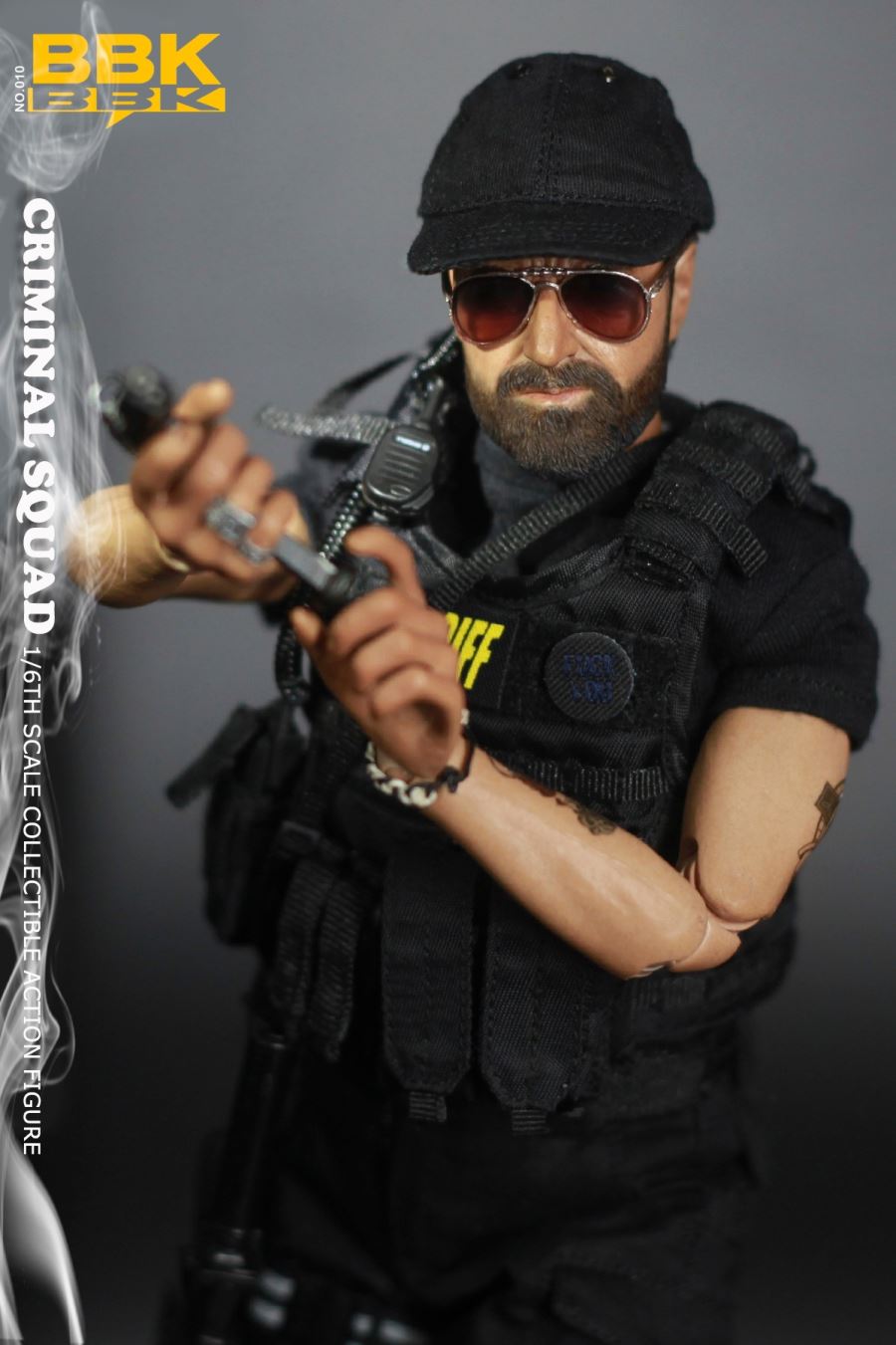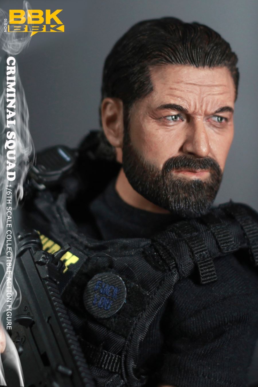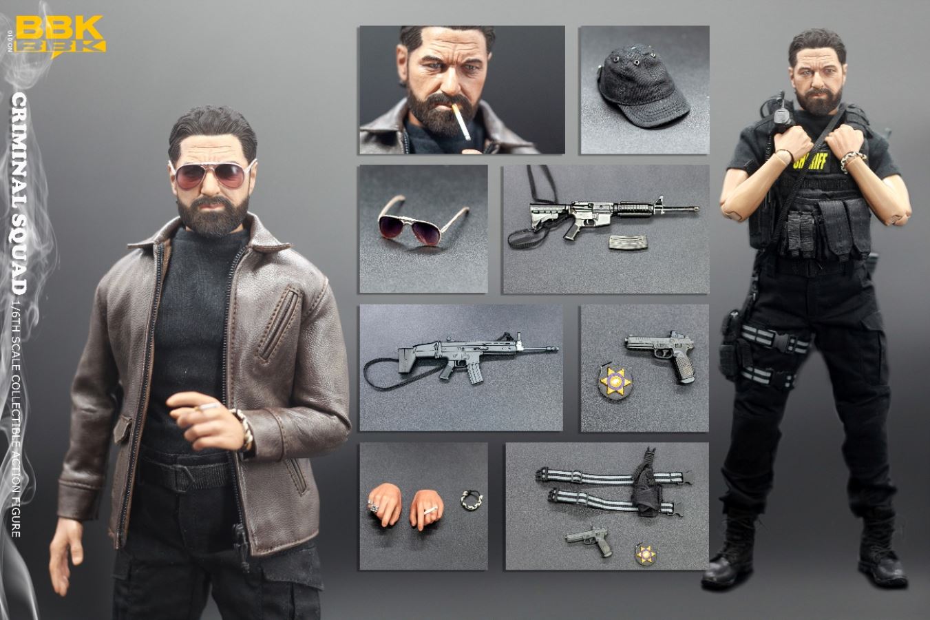 BBK New: 1/6 Hard Boiled Nick Hard Boiled (# BBK010 )1. 5.0 Body2. Hand type *1 pair3. Ring *24. Sunglasses5. Phone6. Walkie-talkie7. Cigarette8. Pistol9. Pistol sight10. SCAR rifle11. M4 rifle12. Head carving13.Hand strap14. County Police Badge15. Morale badge16. Badge17. Two-unit pistol magazine bag18. Rifle two magazine bag19. Walkie talkie bag20. Survival Belt21. Combat boots22. Leg hang pistol holster23. Tactical pants24. Leather clothing25. Black T -shirt26. Tactical vest27. Peaked cap