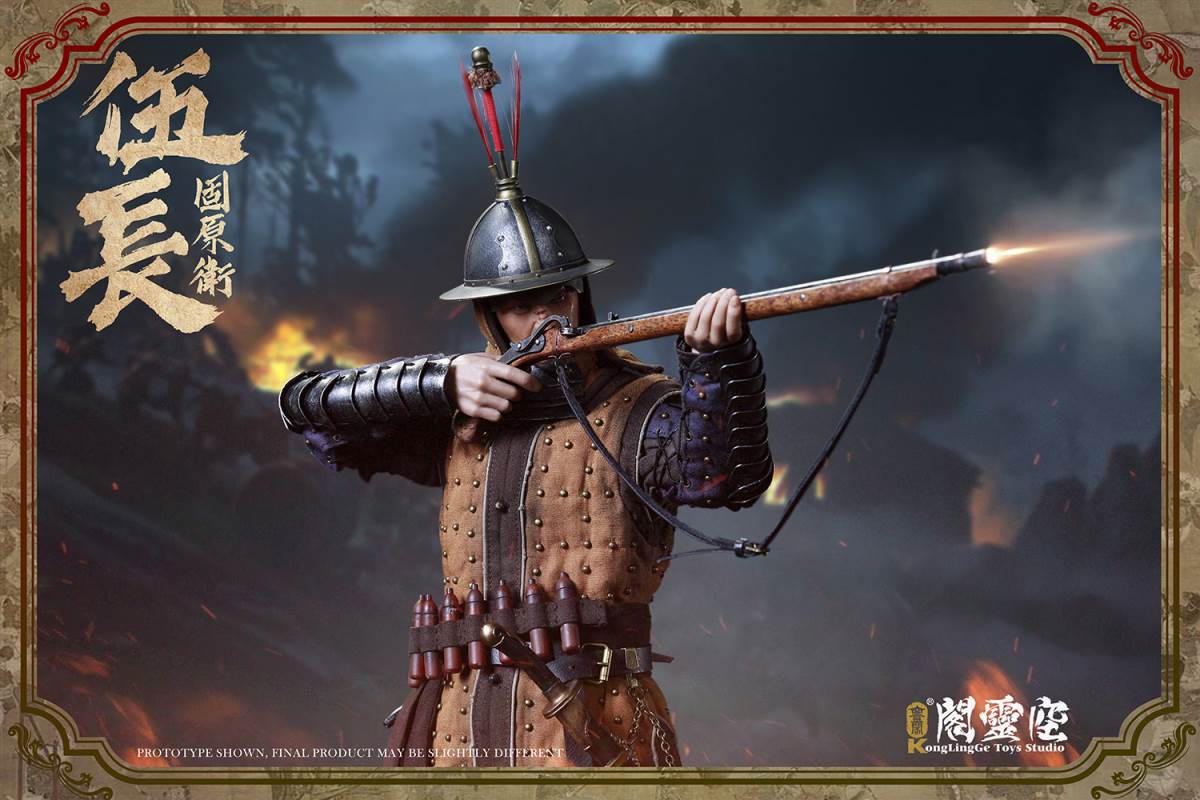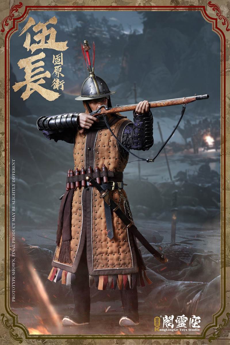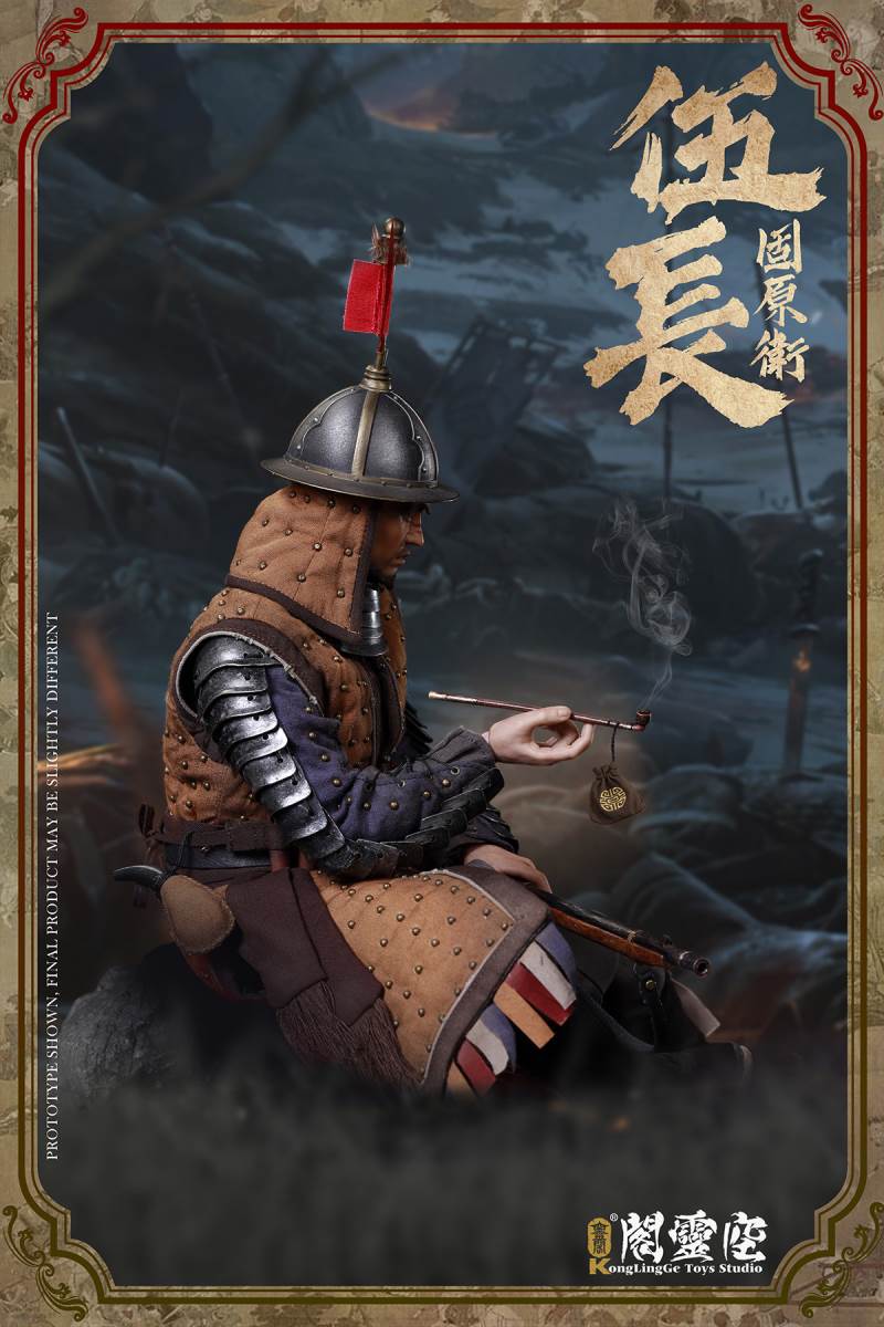 New product of Kongling Pavilion: 1/6 Guyuanwei Wo Chang (#KLG-R023)1. Head sculpture x12. Body x13. Hand type (pair) x34. Helmet (plastic piece) x15. Underwear + pants x16. Cotton armor x17. Metal arm armor (set) x18. Waist belt x19. Cloth waist belt x110. Ammunition bag x111. Bird beak pot x112. Waist knife + scabbard (set) x113. Protection Neck x114. Fire gun (metal + solid wood) x115. Metal hanging buckle x216. Cloth boots (pair) x117. Tobacco pipe X118. Tobacco pouch x1Remarks: The product is slightly old.Cut-off time: January 8,2021 Estimated delivery time:KLG NEW RELEASE: 1/6 Guyuan Garrison “Team Leader of 5 ”(#KLG) -R023)1. Head x12. Body x13.Hands (pairs) x34. Helmet x15. Underwears+pants x16.Cotton armors x17.Arm armor x18.Waist belt x19.Cloth belt x110. Ammo packs x111.Ammo pot x112.Knife+Scabbard x113.Neck protection x114.Musket x115.Metal hanging buckle x216.Cloth boots(pairs) x117.Tobacco pipe x118.Tobacco pouch x1Cut-off Date:8thJanuary 2021Shipping plan:2nd quarter of 2021.