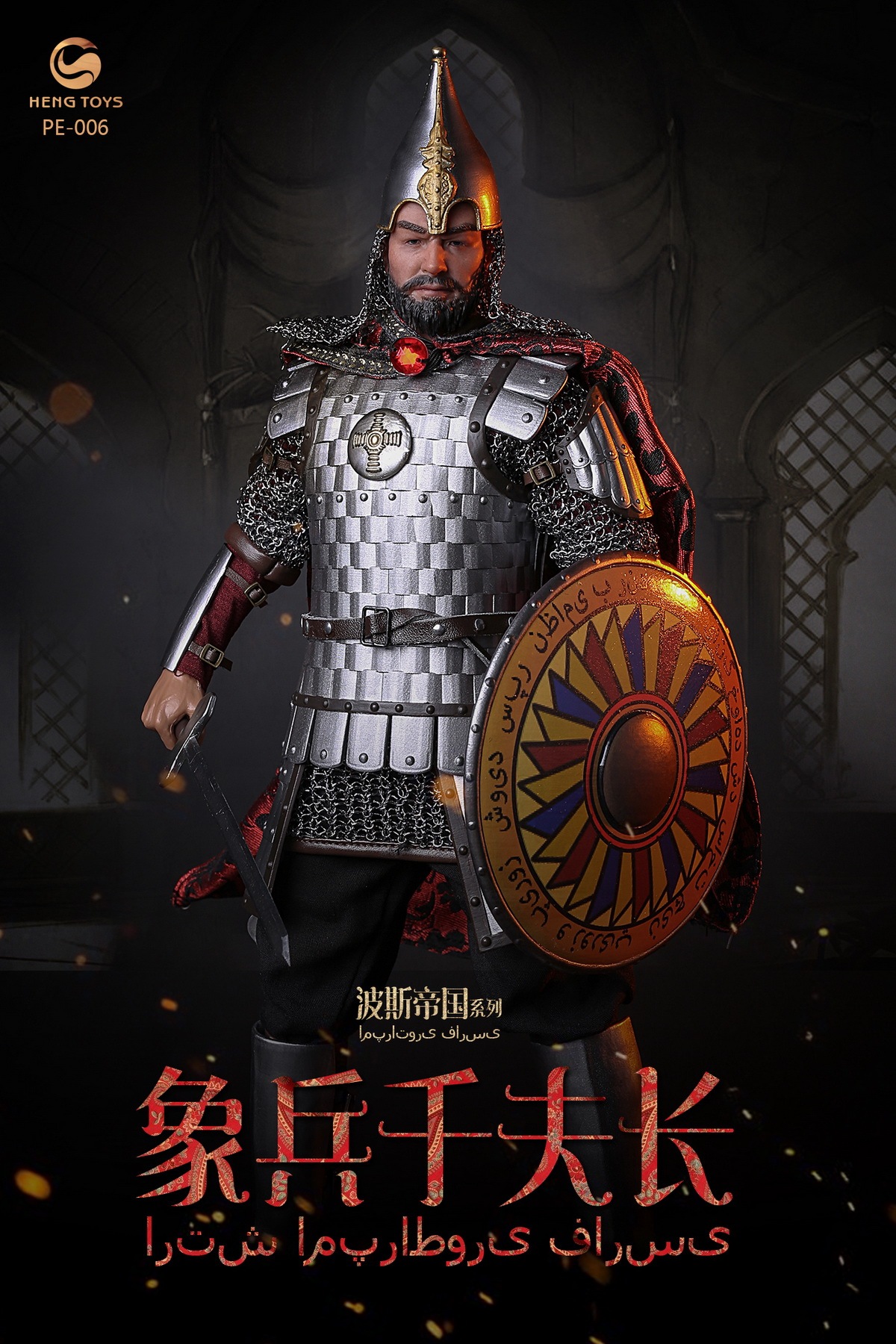 HENGTOYS 1/6 Persian Empire Series-Elephant Soldiers and ChiefsPE-006 Configuration List-Head Sculpture x 1-Body x 1-Hand Shape x 7-Top x 1-Neck Guard Chain Armor x 1-Clothes Lock Sub-armor x 1-Pants x 1-.Belt x 1-Cloak x 1-Helmet x 1-Breastplate x 2-Shoulder armor x 2-Hand armor x 2-Battle boots x 2-Foot armor x 2-Long badge 1-Meteor hammer x 1-Shield x 1-Folding stand x 1HENGTOYS 1/6 Persian empire seris-----Elephant soldier commanderPE-006 configuration listing-head x 1-ferrite x 1-The shape of the hand x 7-coat x 1-Neck guard and chain mail x 1-Clothing chain mail x 1-The trousers x 1-The belt x 1-cape x 1-helmet x 1-Chest armor back x 2-scapula x 2-Hand a x 2-Combat boots x 2-Toe nails x 2-A sword x 1-Meteor hammer x 1-The shield x 1-Folding bracket x 1Order cut-off time: January 10th,2021 Estimated delivery time: 1st quarter of 2021