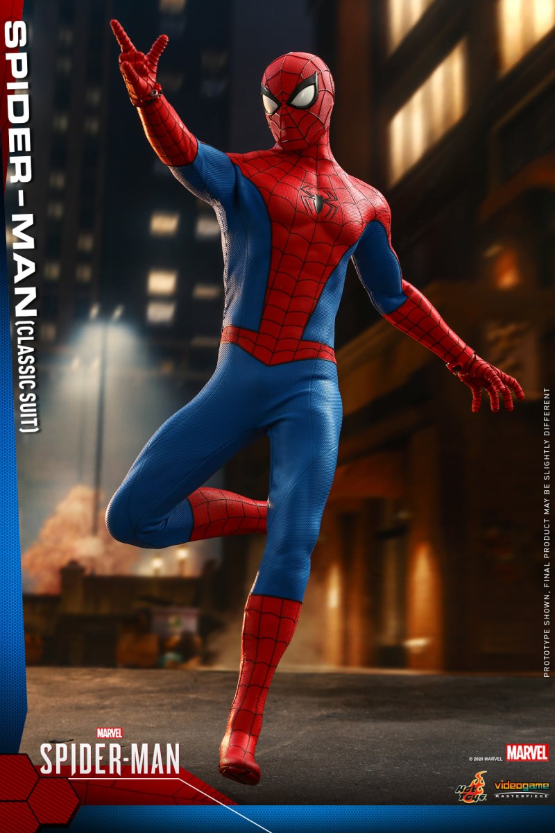 ฟิกเกอร์นี้สร้างขึ้นอย่างชำนาญโดยอิงจาก Classic Suit ในวิดีโอเกม Marvel’s Spider-Man โดยมีรูปปั้นหัวสวมหน้ากากที่สร้างขึ้นใหม่พร้อมชิ้นส่วนตาที่เปลี่ยนได้หลายคู่เพื่อสร้างการแสดงออกของ Spider-Man ร่างกายพิเศษที่มีข้อต่อที่เพิ่มขึ้นช่วยให้สามารถวางท่าทางได้มากขึ้น ชุดสูท Spidey Classic ที่ปรับแต่งอย่างเชี่ยวชาญตามโทนสีฟ้าและสีแดงพร้อมสัญลักษณ์แมงมุมสีดำที่หน้าอก มือที่ใช้แทนกันได้สำหรับท่าทางที่เป็นสัญลักษณ์ อุปกรณ์เสริมที่มีรายละเอียดมากมายรวมถึงหนังสือพิมพ์สมาร์ทโฟนอุปกรณ์เสริมเว็บเอฟเฟกต์หางแมงป่องและเหล็กไนที่ทาสีด้วยสีเขียวเมทัลลิกเป็นอุปกรณ์เสริมภาพสามมิติฉากหลังธีมเมืองที่ออกแบบมาเป็นพิเศษและรูปทรงไดนามิกสำหรับการตั้งค่าการแสดงผลแบบเต็ม